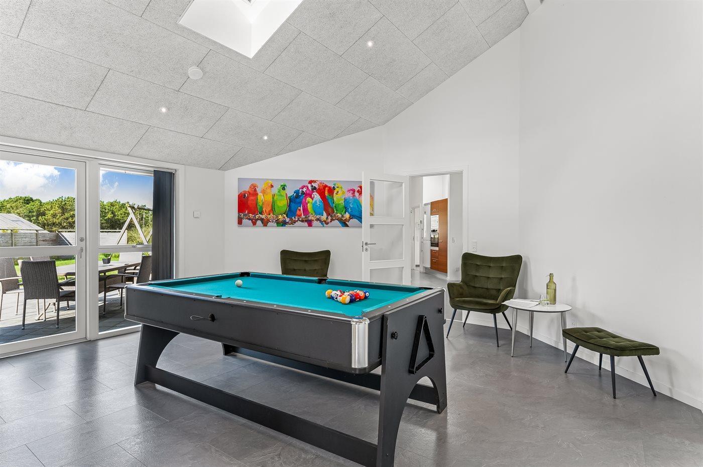Efter en lang dag med udflugter i Blåvand og omegn er det skønt at kunne slappe af med et varmt bad i spaen og for derefter at slutte af i saunaen. Hvis der skal være lidt mere gang i den, kan man samles i husets aktivitetsrum, hvor man kan dyste i billard. Er der børn med på ferien, vil de måske synes, det er hyggeligt at kravle op på hemsen for at spille mobilspil eller læse tegneserier.