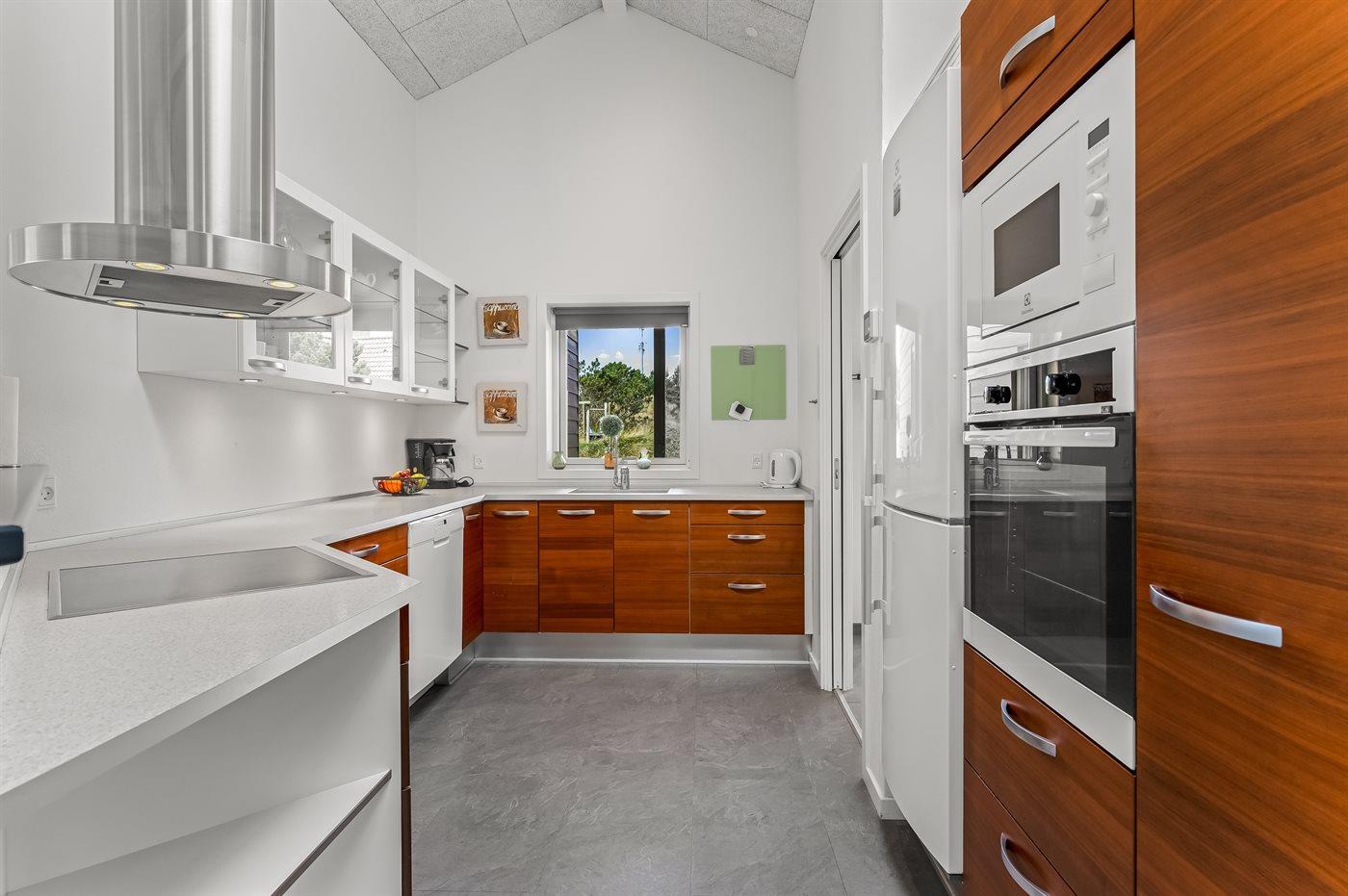 Køkkenet er udstyret med 1 køleskab. Der er 4 induktionskogeplader, varmluftovn, mikrobølgeovn samt opvaskemaskine.