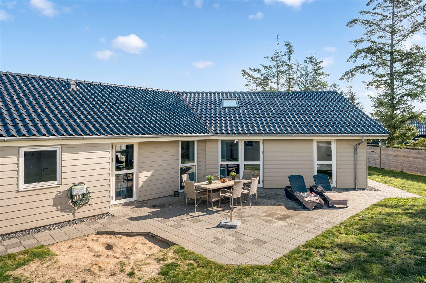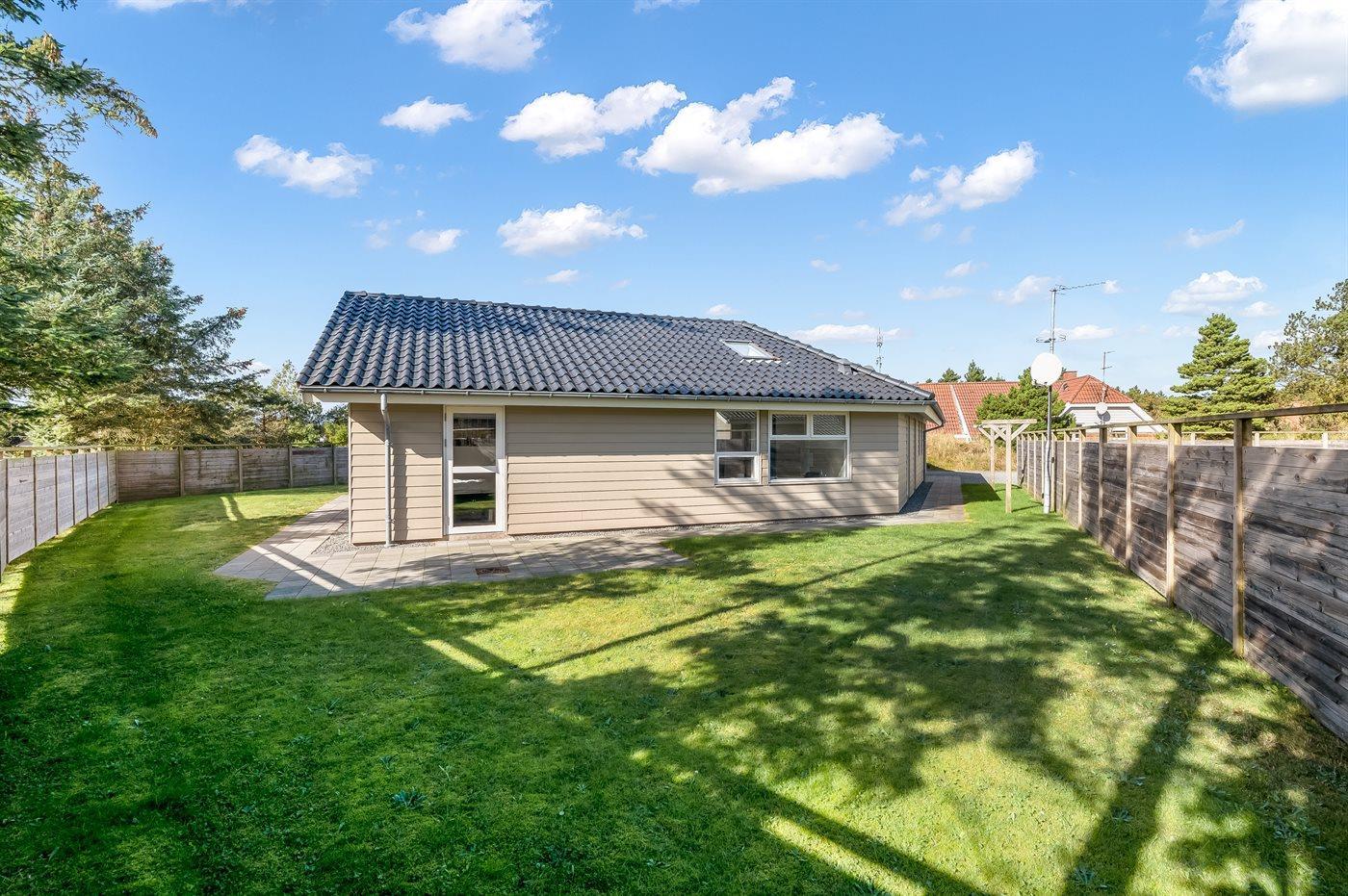 Ferieboligen er beliggende på en 750 m² stor naturgrund. Der er 450 m til havet. Nærmeste forretning er beliggende i en afstand af 350 m. Til ferieboligen hører åbent terrasseareal. Desuden er der overdækket terrasse. Grill til rådighed. Der er carport til rådighed. Parkering ved ferieboligen.