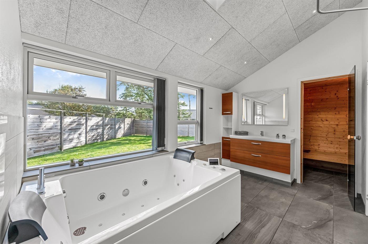 Der er 2 badeværelser med bruseniche og 2 toiletter. Der er gulvvarme på 2 badeværelser. I saunaen er der mulighed for afslapning.