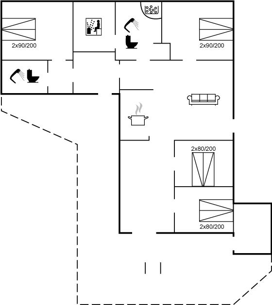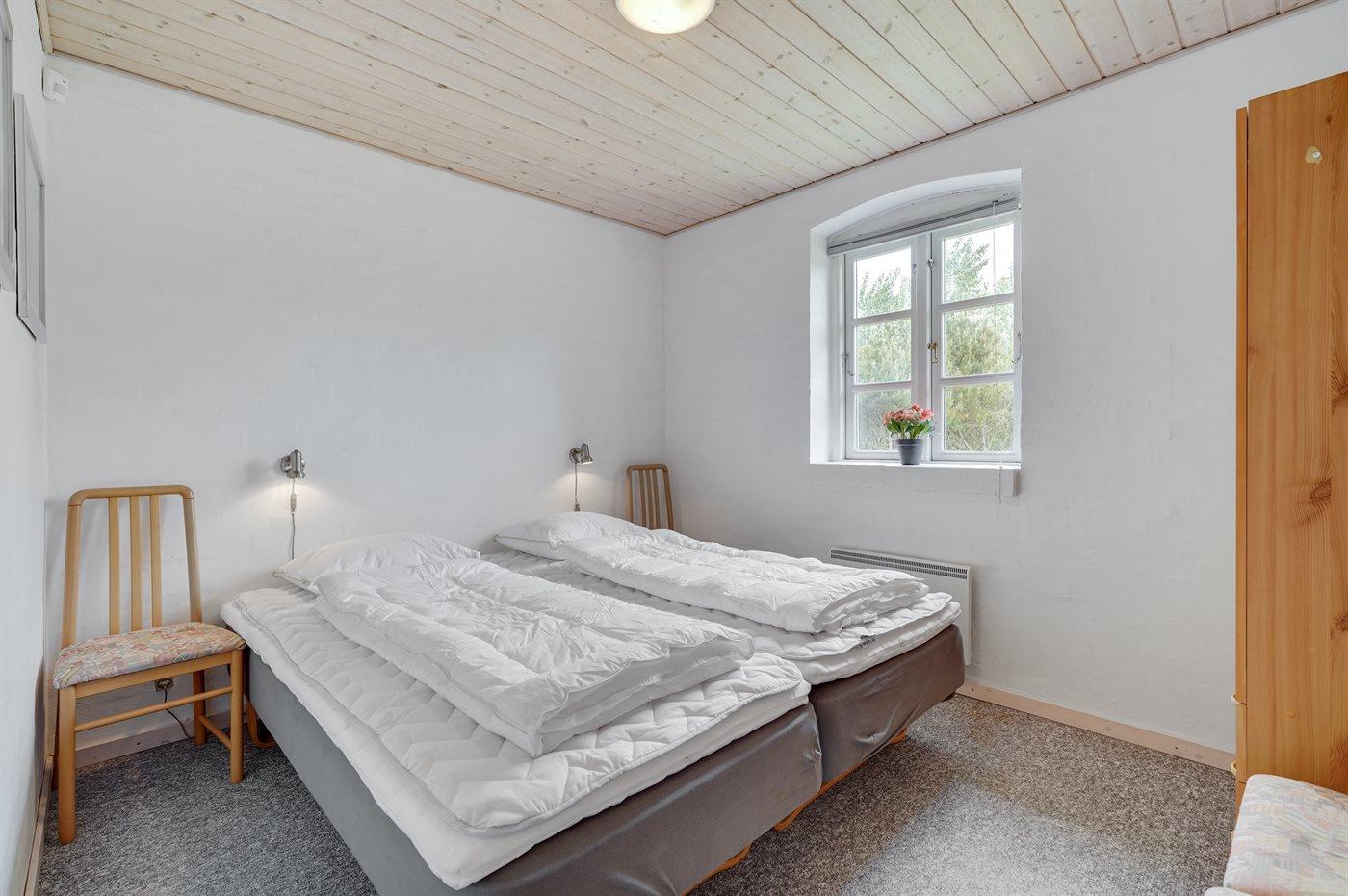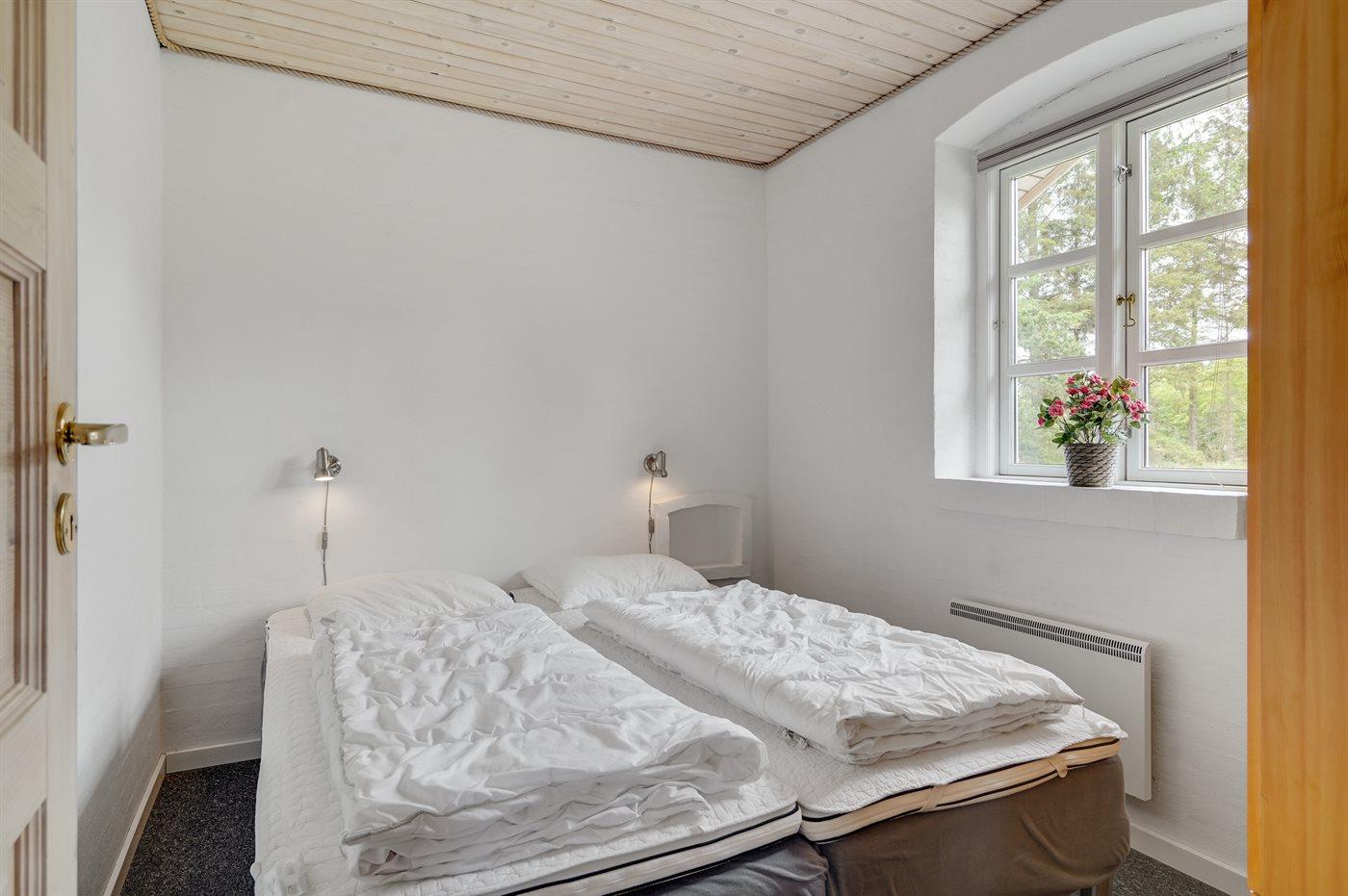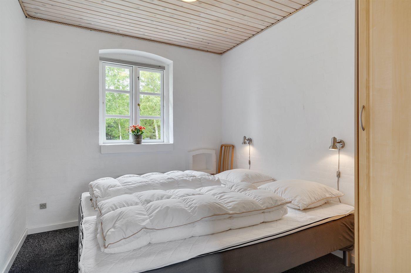 Der er i alt 4 soveværelser. Sovepladserne fordeler sig på: 8 sovepladser i dobbeltsenge. 2 sovepladser på madrasser. 2 af disse sovepladser befinder sig på husets hems. Derudover er der 1 stk. barneseng.