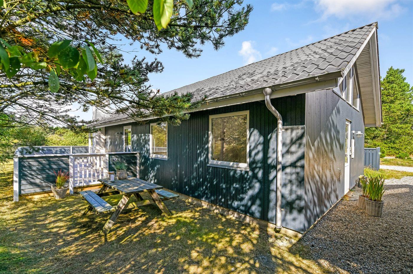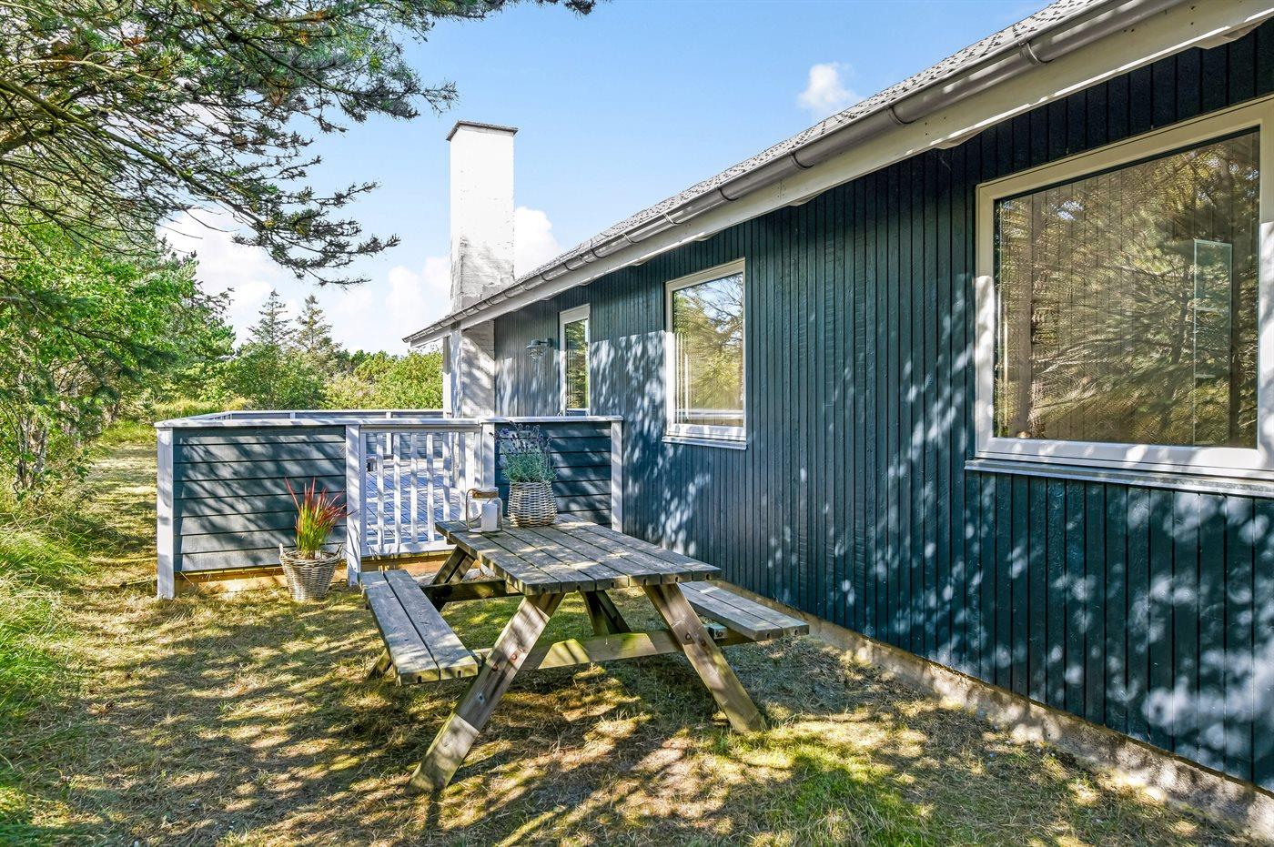 Flot totalrenoveret sommerhus med lukket terrasse på stor naturgrund nær Tirpitz museet i Blåvand.