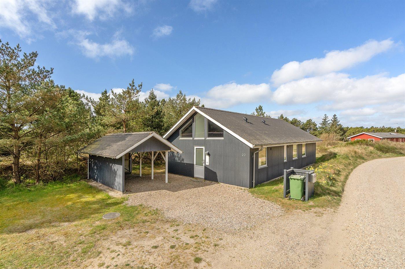 Ferieboligen er beliggende på en 2000 m² stor naturgrund. Der er 1400 m til havet. Nærmeste forretning er beliggende i en afstand af 2100 m. Til ferieboligen hører 30 m² åbent og 10 m² overdækket terrasseareal - heraf i alt 40 m² lukket terrasse. Desuden er der 10 m² overdækket terrasse. Heraf i alt 40 m² lukket terrasse. Der er redskabsrum. Grill til rådighed. Der er carport til rådighed. Parkering ved ferieboligen.