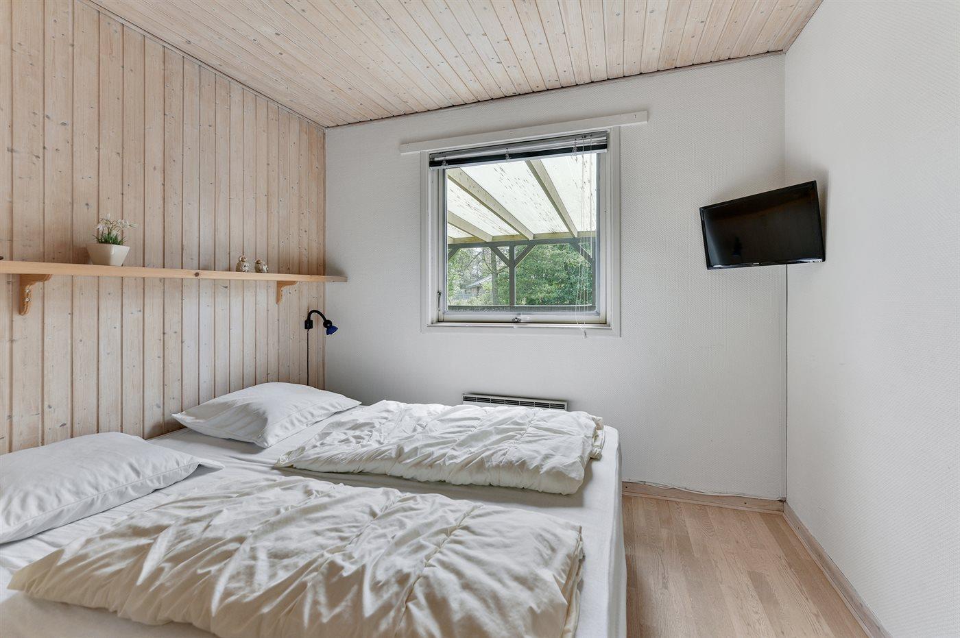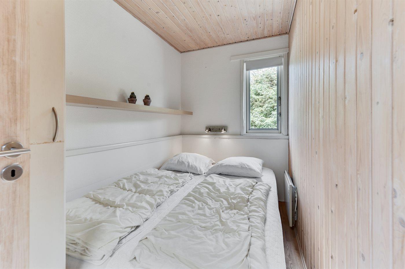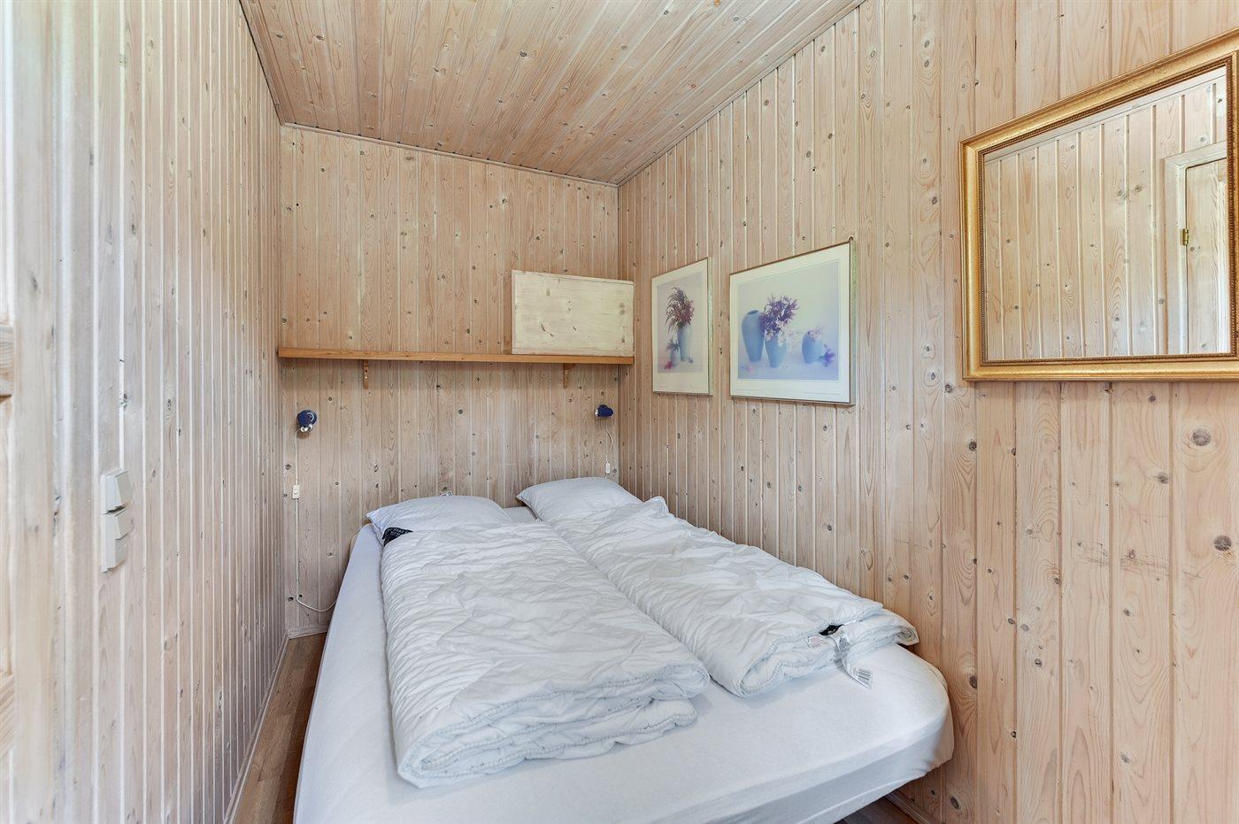 Der er i alt 3 soveværelser. Sovepladserne fordeler sig på: 4 sovepladser i dobbeltsenge. 1 soveplads i enkeltseng. Derudover er der 1 stk. barneseng.