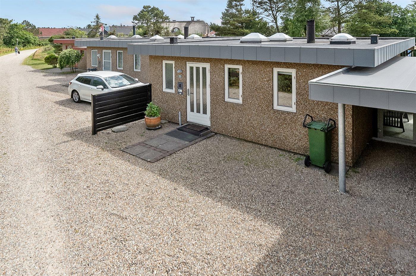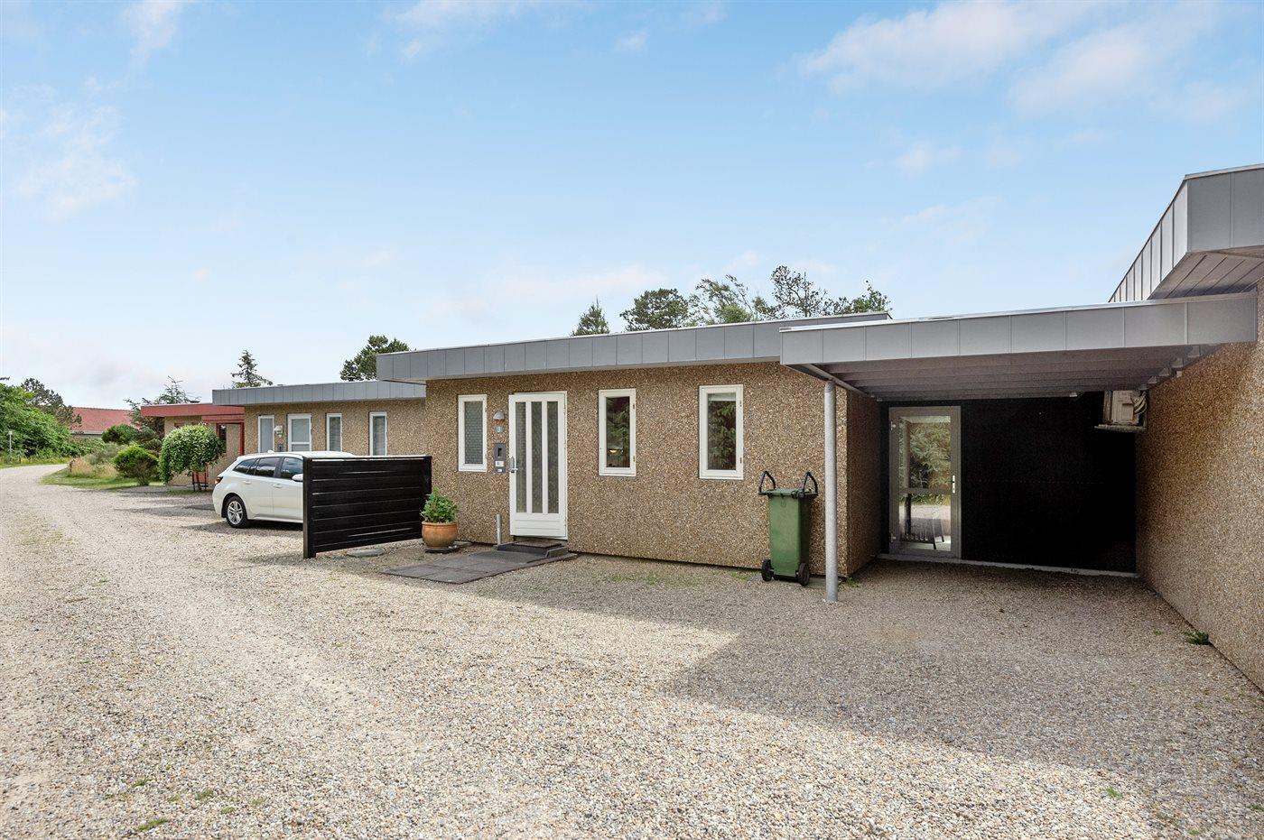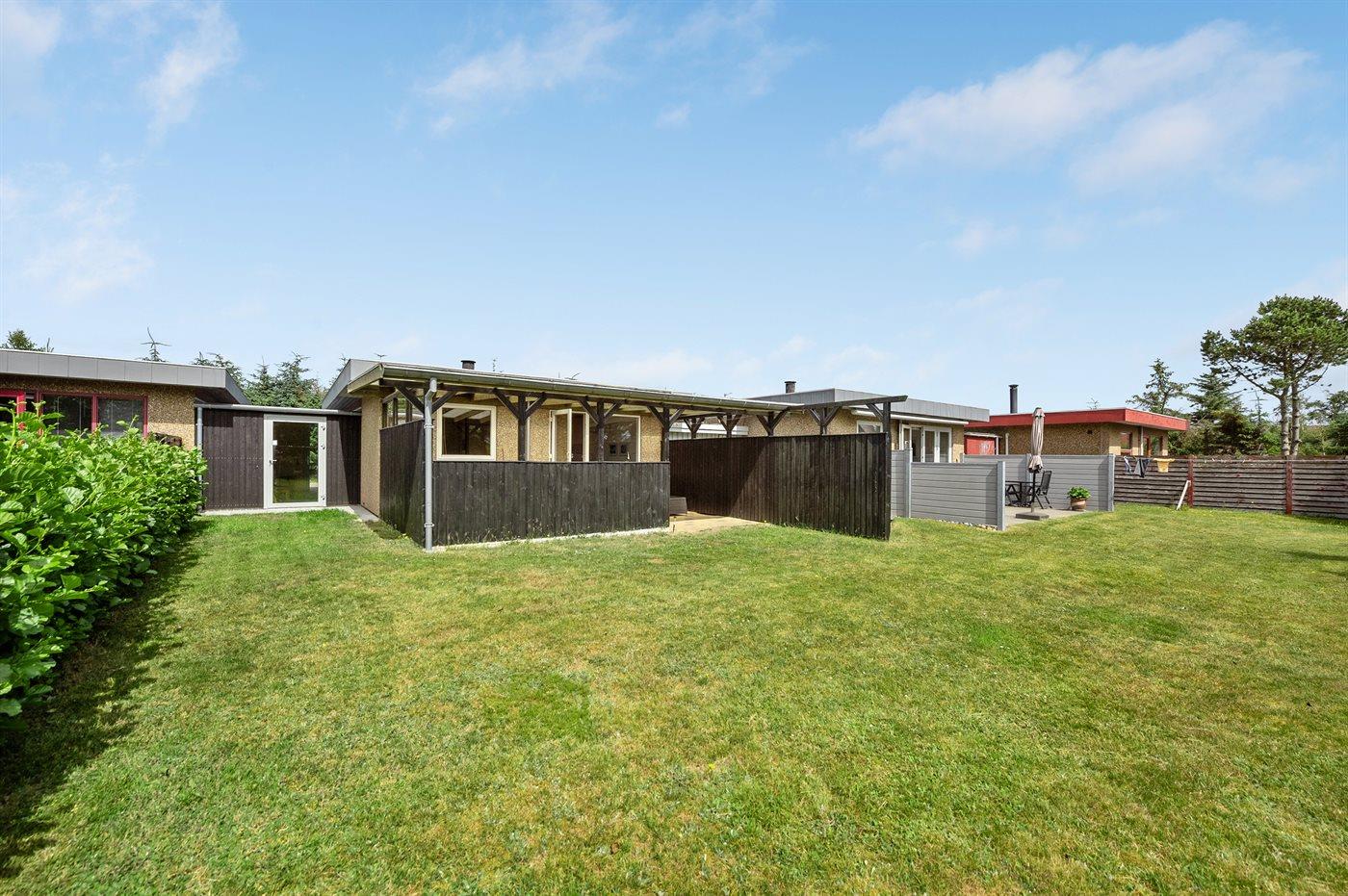 Ferieboligen er beliggende på en 400 m² stor havegrund. Der er 900 m til havet. Nærmeste forretning er beliggende i en afstand af 200 m. Desuden er der 23 m² overdækket terrasse. Gynge. Parkering ved ferieboligen.