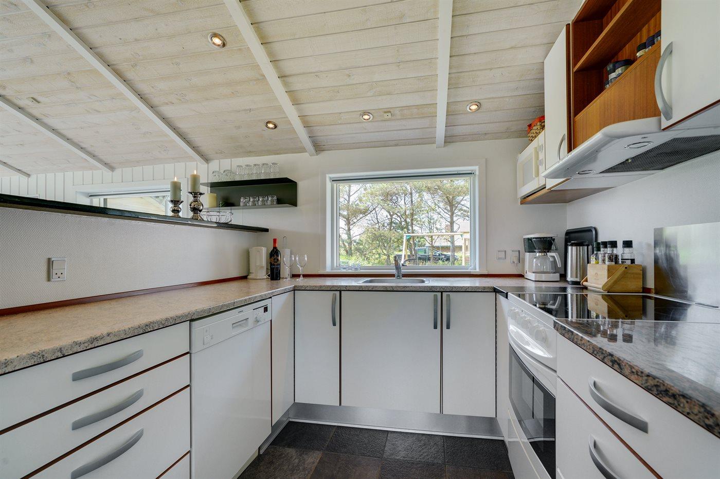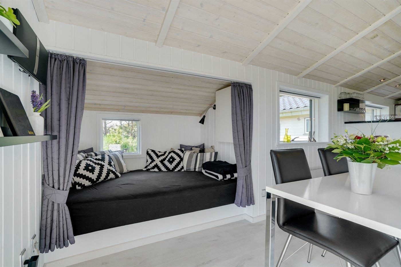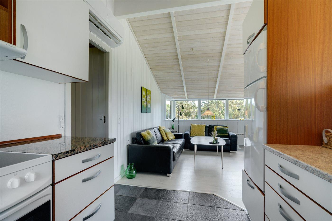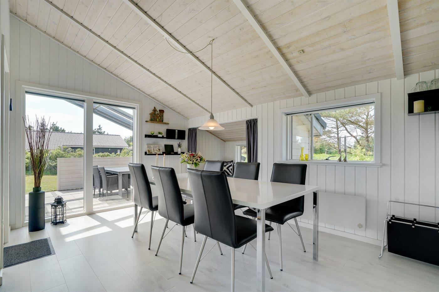 Kun 600 m fra stranden ligger dette flotte og meget velholdte sommerhus med et boligareal på i alt 114 m2 og med plads til 6 personer. Huset, som senest er renoveret i 2021, ligger på en dejlig stor grund. Der findes legeområde med legestativ, gynge og sandkasse, hvortil der hører 5 m2 overdækket terrasse. Der findes en dejlig stor, overdækket og læfyldt terrasse på 29 m2 med markise, ovenlys og terrassevarmer samt gode havemøbler og Weber-grill. Den herlige lyse opholdsstue med hyggelig alkove indeholder brændeovn, radio med CD-afspiller samt TV med parabol (digital). Desuden forefindes gratis, trådløs internetforbindelse (egen computer skal medbringes). Husets sovepladser fordeler sig på 3 gode soveværelser; 2 med dobbeltseng og 1 med 2 enkeltsenge. Det åbne køkken er bl.a. udstyret med bl.a. opvaskemaskine, mikrobølgeovn, varmluftovn, komfur med keramiske kogeplader samt fryser. Rummeligt badeværelse med gulvvarme, bruser, 2 pers. spa samt sauna. Ekstra badeværelse - ligeledes med gulvvarme og bruser. Af yderligere udstyr i huset kan nævnes vaskemaskine og tørretumbler. Der er installeret type 2 stik med 11 kW ladeeffekt til opladning af elbil.