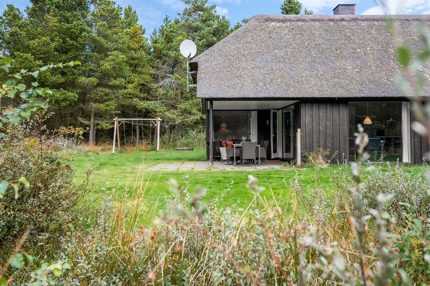 Lyst sommerhus med stråtag tæt på børnevenlig strand og naturskøn beliggenhed i Blåvand.