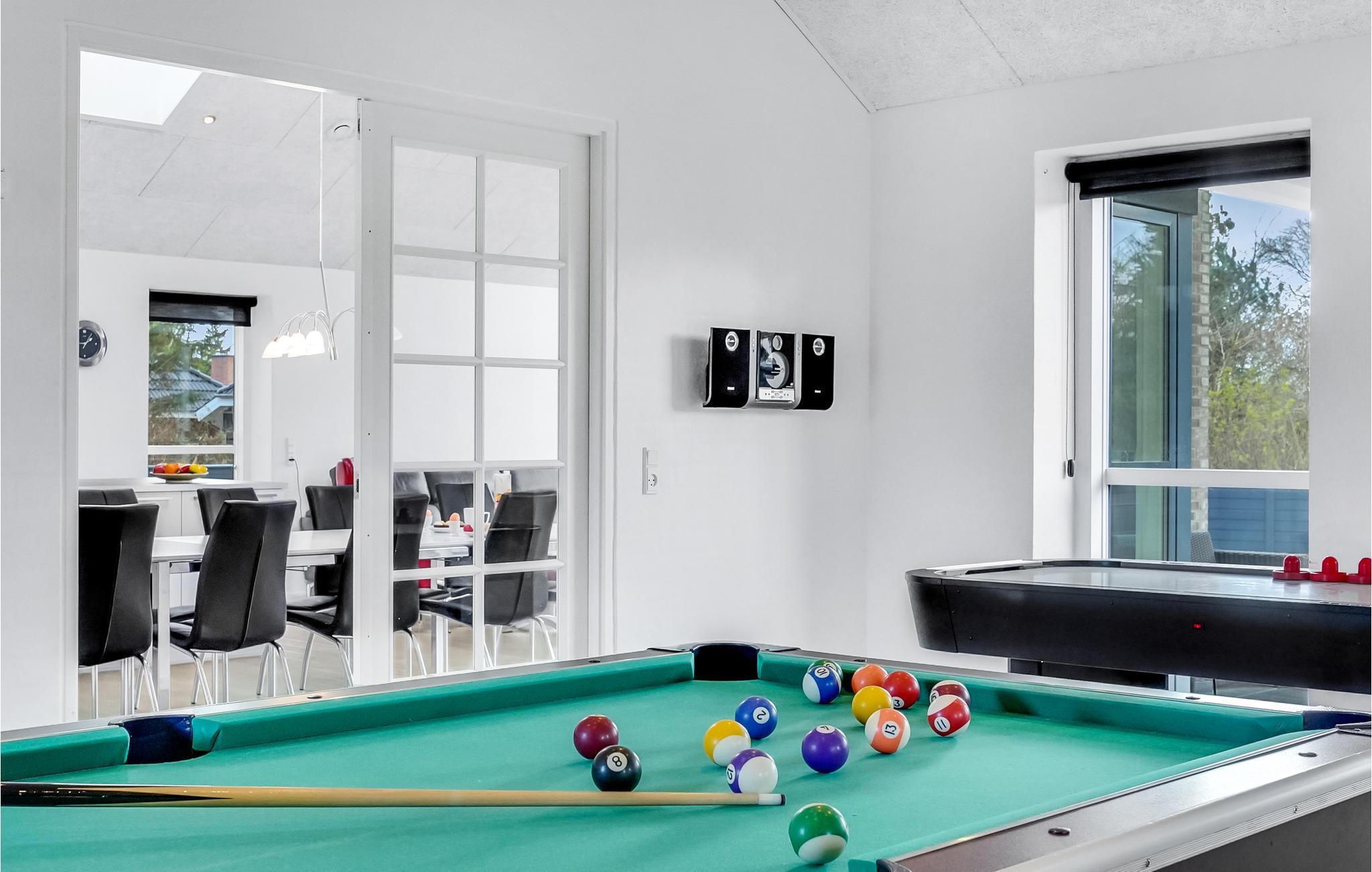 Flot feriehus for familier med store terrasser, aktivitetsrum og tæt på Blåvand strand og by.