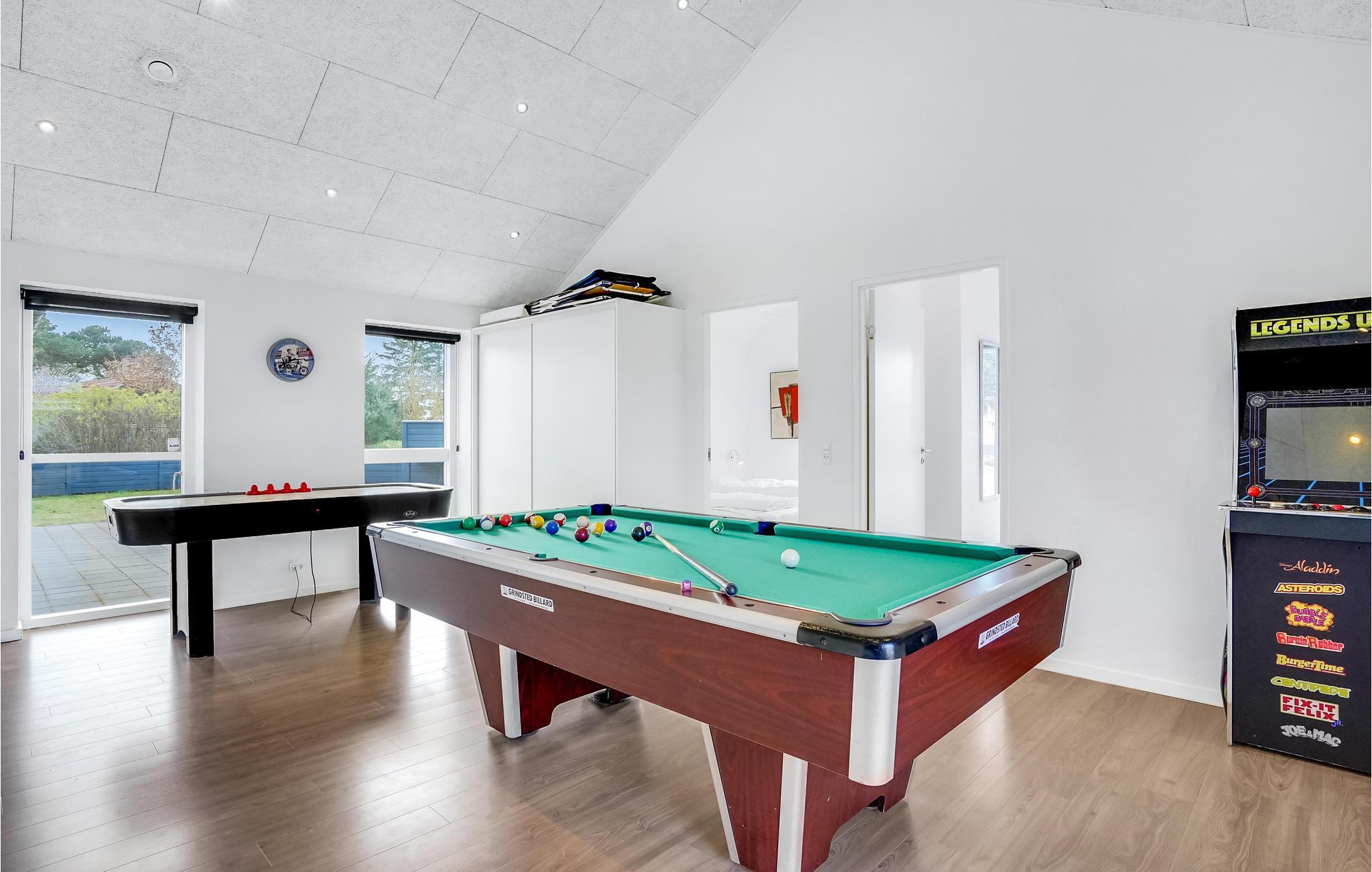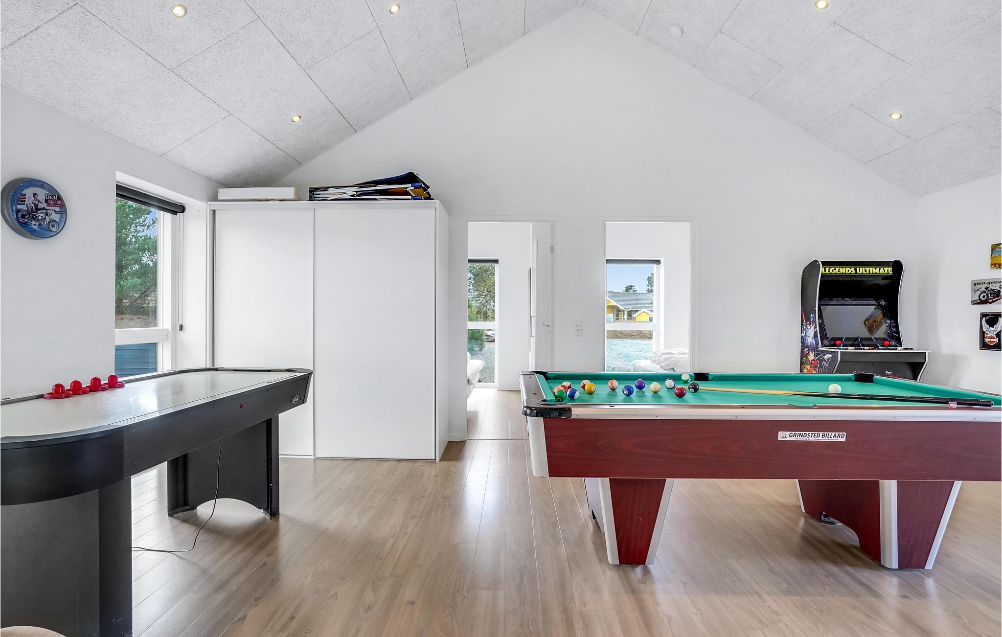 Super flot og gennemført feriehus der ligger på en lukket klitgrund, tæt ved såvel vandet som Blåvand by. Huset er praktisk opdelt med to soveværelser i hver ende af huset, og en hems som børnene vil elske. Centrum i huset er den hyggelige stue som ligger sammen med køkkenet. Derudover får såvel børn som voksne helt sikkert masser af gode timer sammen i det store aktivitetsrum. For at sikre et optimalt indeklima er huset udstyret med et genvex anlæg. Omkring huset kan solen nydes på de store terrasser, der sammen med legeområdet er helt indhegnet, så mindre børn og hunde kan gå frit rundt. Blåvand by med både restauranter, dagligvarebutikker og shoppingmuligheder ligger kun få minutters gang fra huset. Selve den dejlige Blåvand strand, der strækker sig fra fyret og til Skallingen, indbyder til lange vandreture ad de ca. 15 kilometer. Kort sagt er alt indenfor rækkevidde, så bilen kan blive stående ved huset hele ferien.