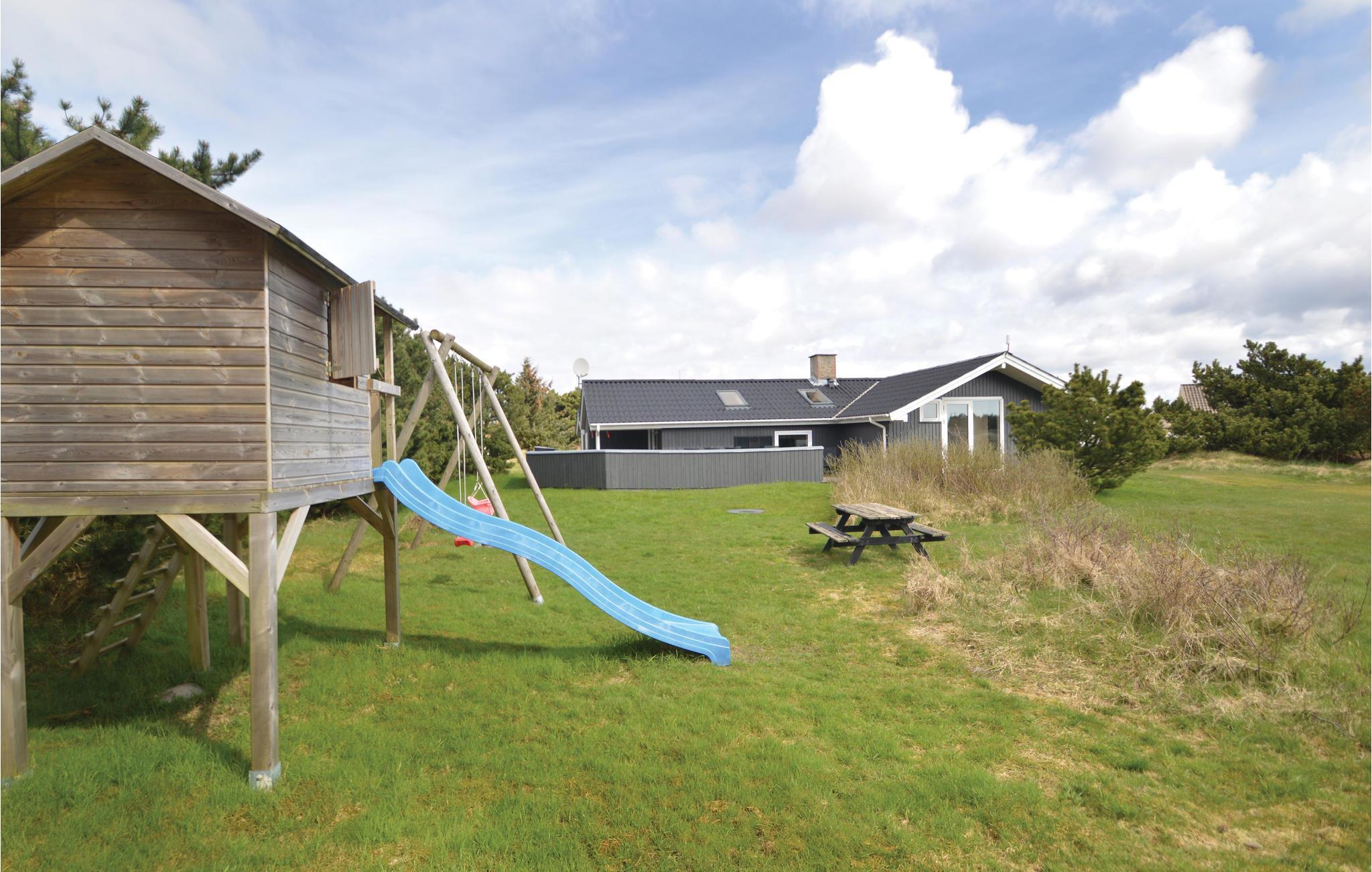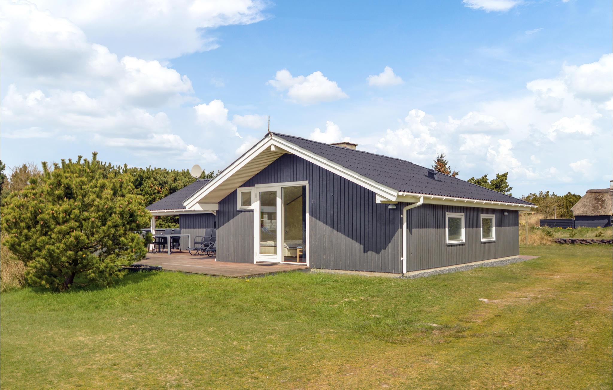 Stort rummeligt feriehus beliggende på åben naturgrund med masser af plads til aktiviteter udenfor huset. Husets store stue gør, at selv med mange personer i huset, er der god plads til alle. Træ og klinkegulve i hele huset. Fra husets store soveværelse er der direkte udgang til den ene af terrasserne. Da der også er en større overdækket terrasse kan aftenerne tilbringes ude lidt længere om sommeren. Huset ligger i gåafstand til selve Blåvand centrum og derfor kan shopping og indkøb sagtens gøres til fods.