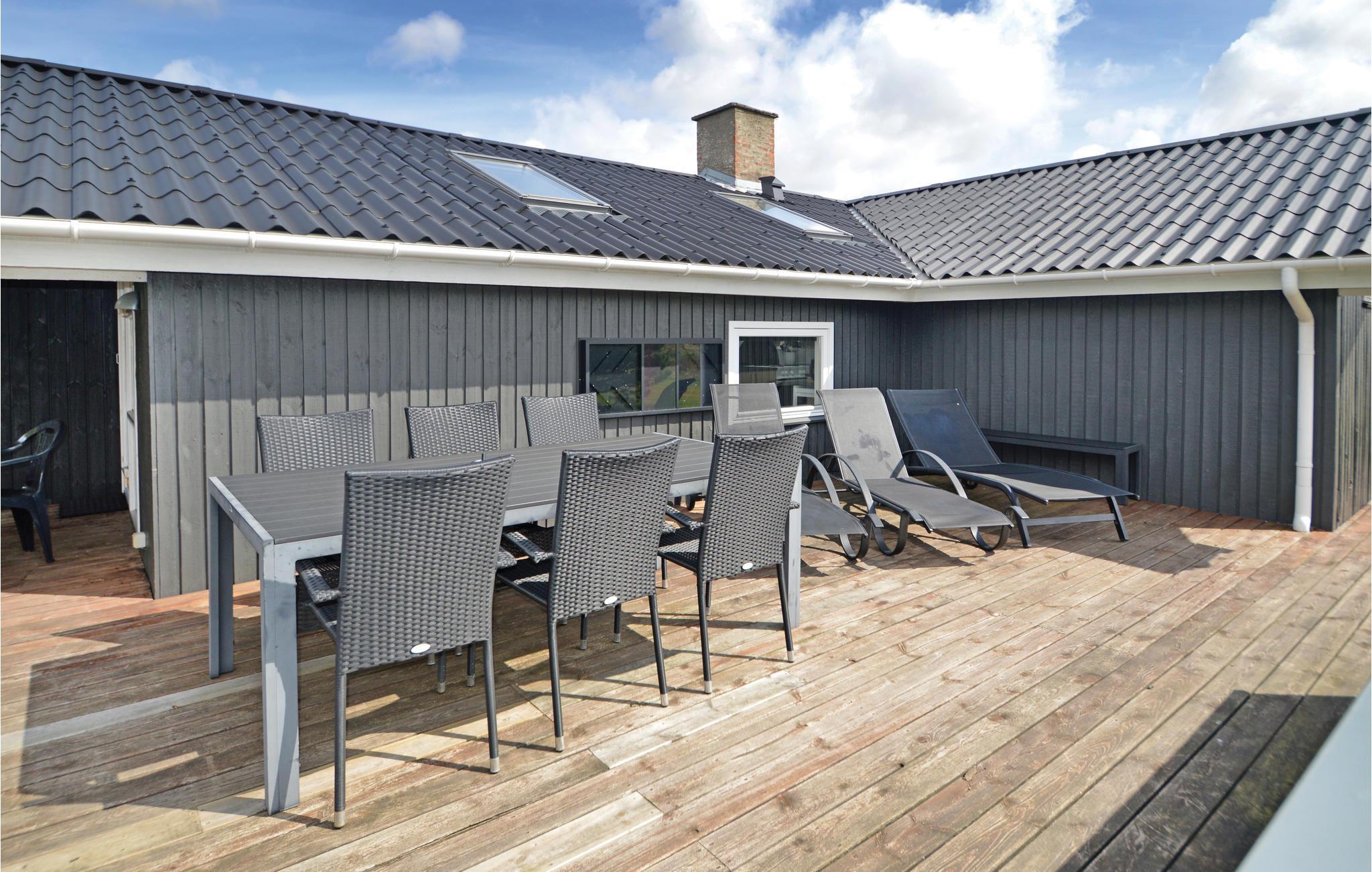 Rummeligt feriehus i Blåvand med stor stue, flere terrasser og plads til udendørs aktiviteter.