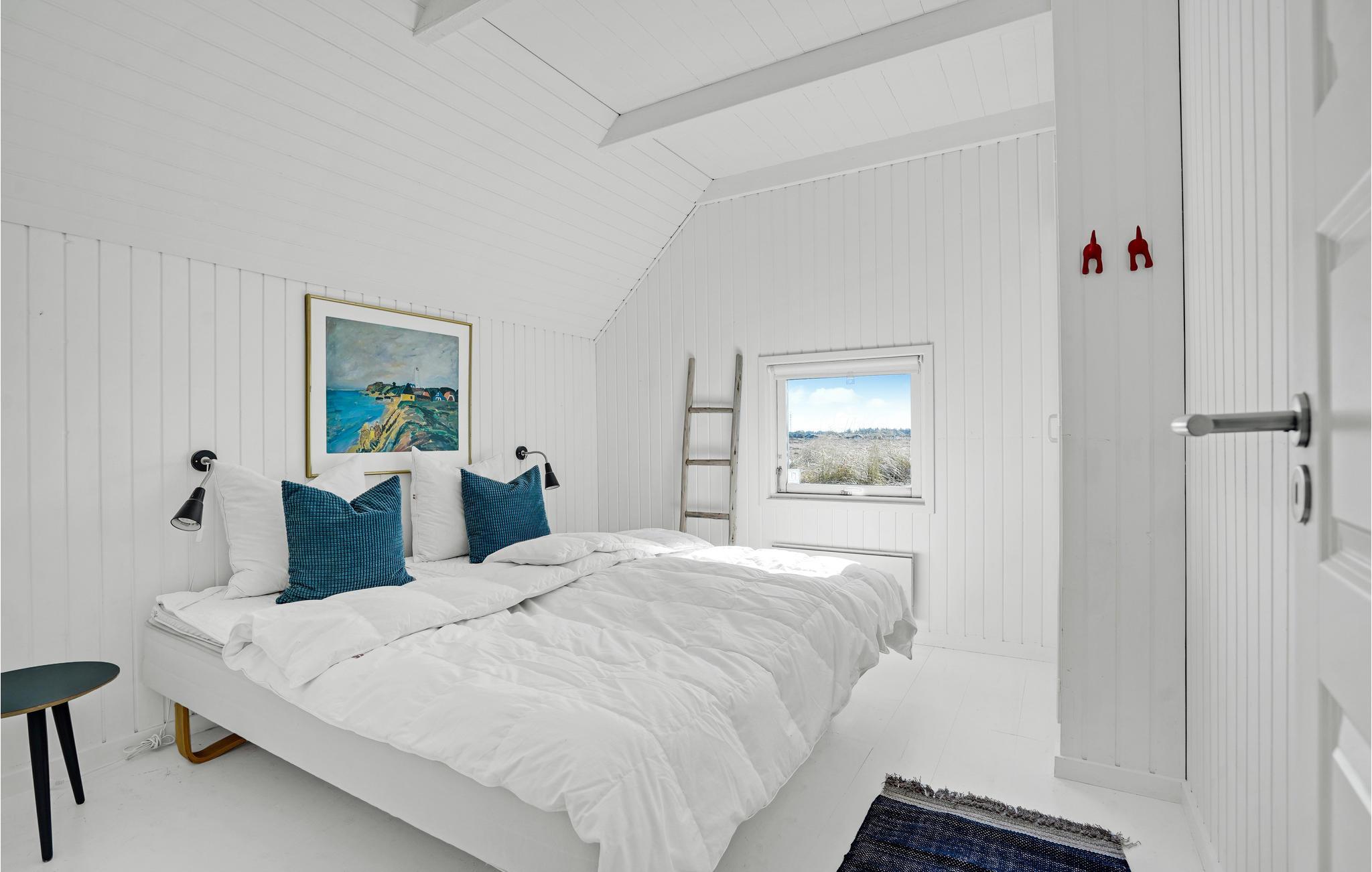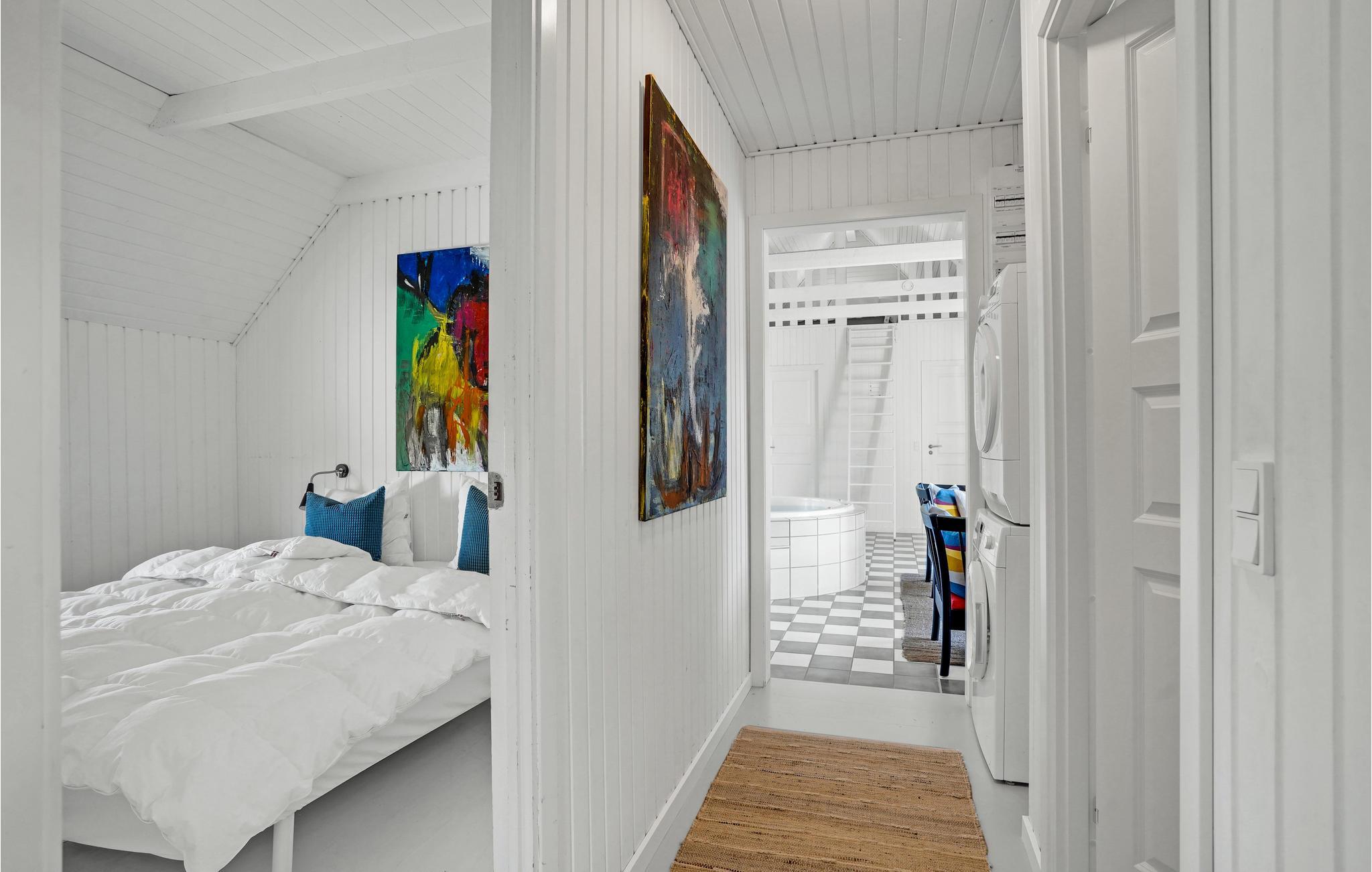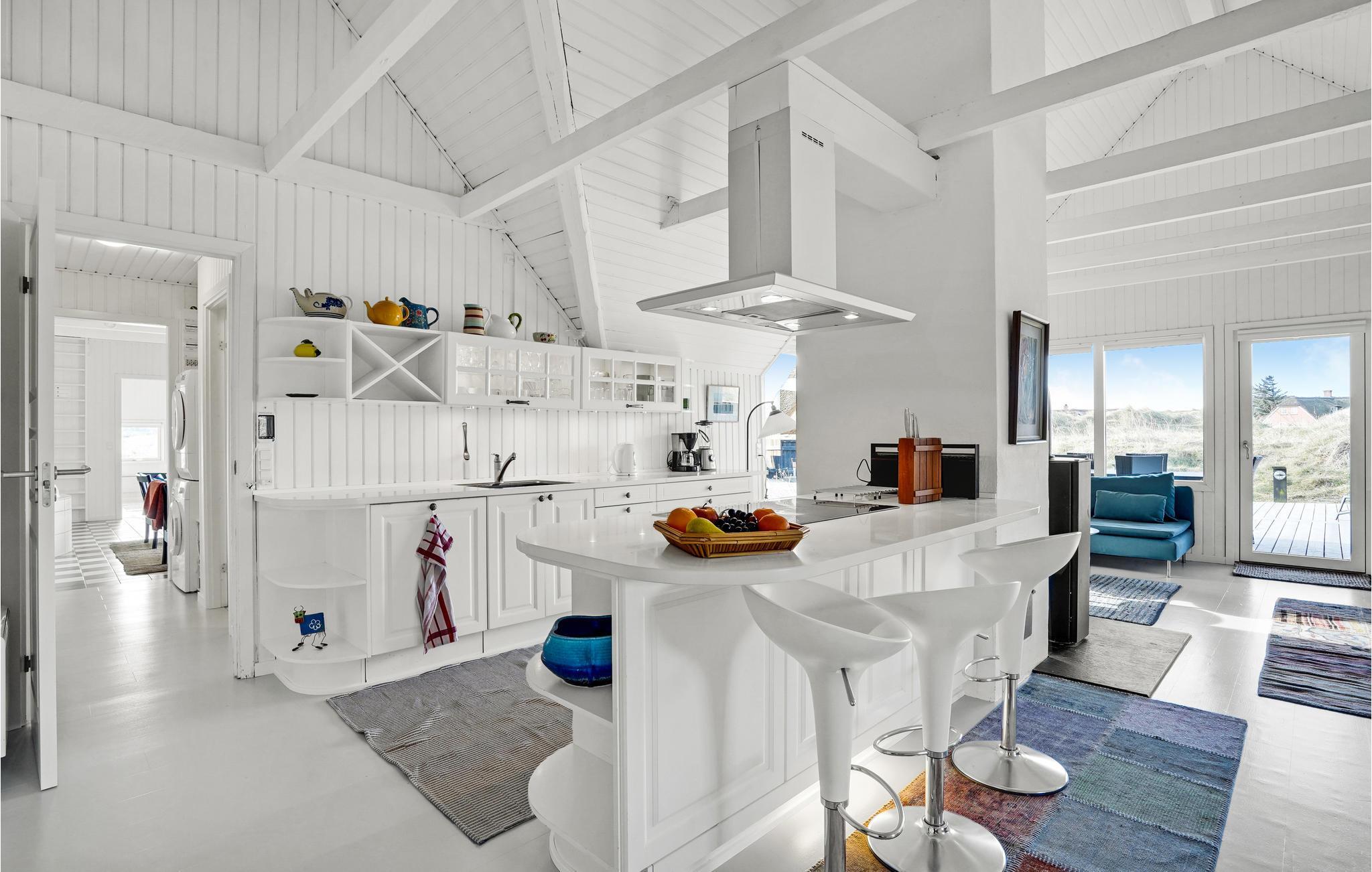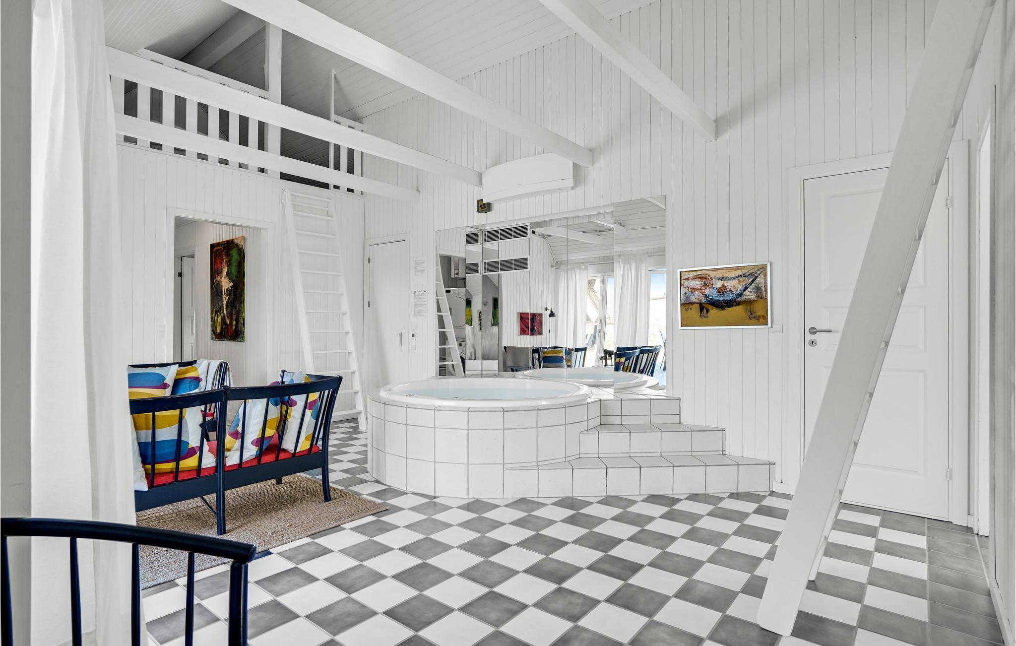 Velkommen til dette utoligt flotte, lyse og smagfuldt indrettede feriehus. Husets hjerte er den rummelige kombinerede spise- og opholdsstue. Her finder I det åbne, veludstyrede køkken, hvor I kan tilberede lækre feriemåltider, en nydelig spiseplads og et yderst elegant og komfortabelt sofaarrangement ved brændeovn og fladskærm, som indbyder til hyggelige filmaftener. Tænd op i brændeovnen, og nyd den varme og hyggelige stemning, den skaber. Huset byder desuden på smukt indrettede badeværelser af høj kvalitet, hyggelige sovepladser under det spidse tag og sidst men ikke mindst både spa og sauna til rendyrket ferieafslapning.