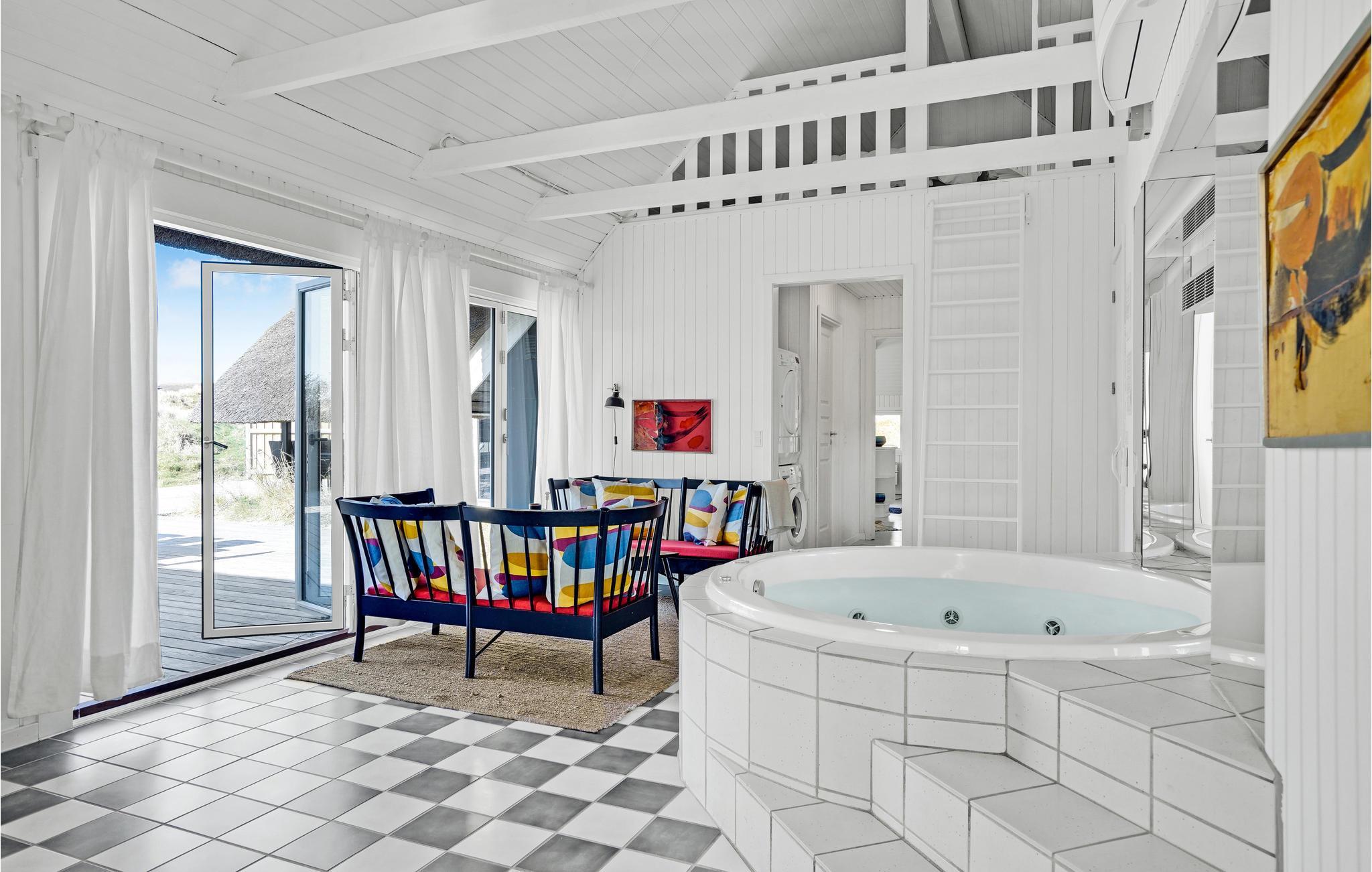 Enestående stråtagshus med spa, sauna og stor terrasse kun 300 m fra Blåvands fine sandstrand.