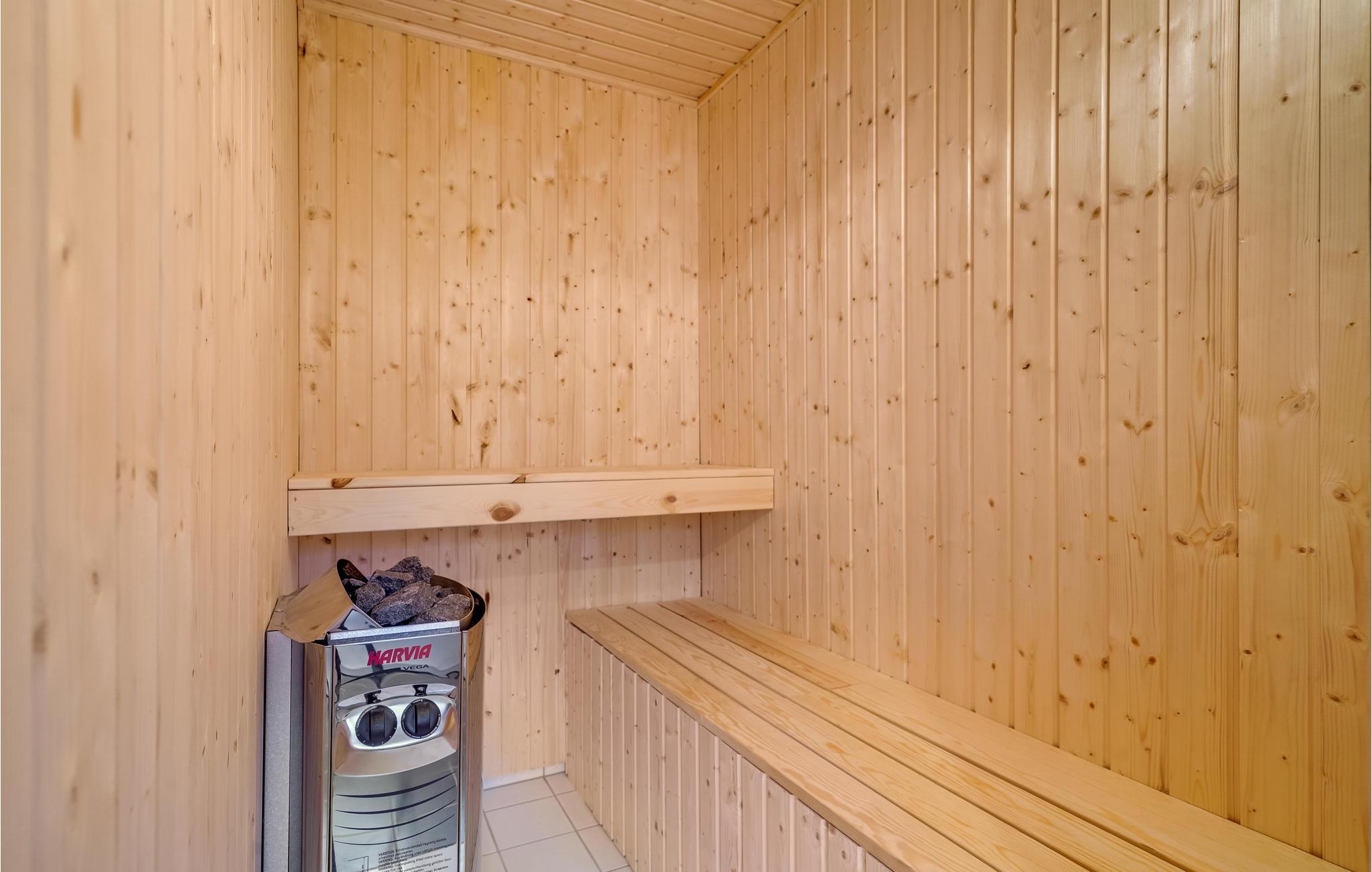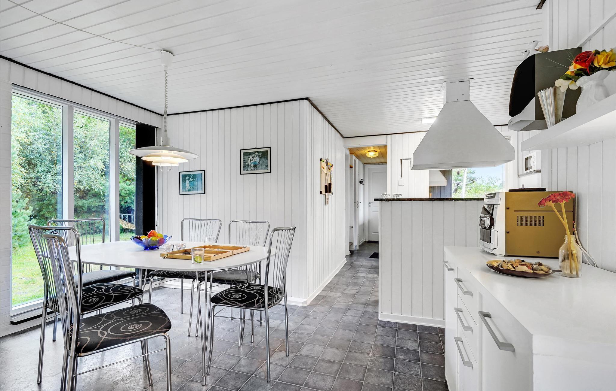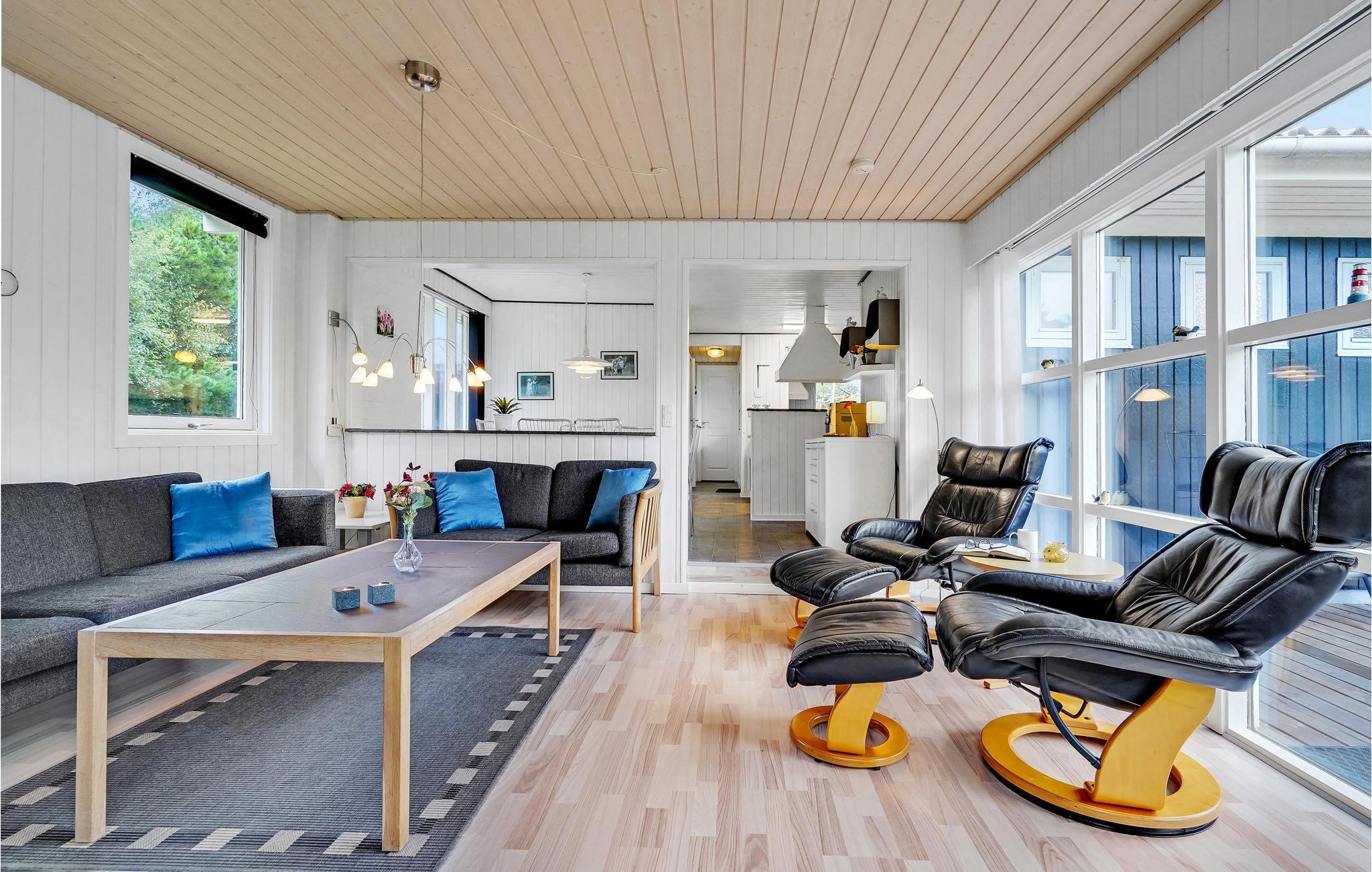 Dette feriehus af træ ligger i et dejligt naturområde nær Blåvand bymidte. Indvendigt er vægge og lofter beklædt med træ, hvilket er med til at skabe en hyggelig stemning. Blandt husets righoldige udstyr hører spabad til fem personer og sauna. Badeværelset er delt praktisk op, så toilettet er i et separat rum. Omgivelserne er ideelle til vandre- og cykelture i den smukke natur. Der er imidlertid heller ikke langt til tennisbaner, minigolf, vandland, fiskesøer og en golfbane. Har I derfor lyst til en ferie, hvor nøgleordene er natur, strand, hav, klitter og masser af frisk luft kombineret med sportslige udfoldelser, er dette feriehus ideelt.