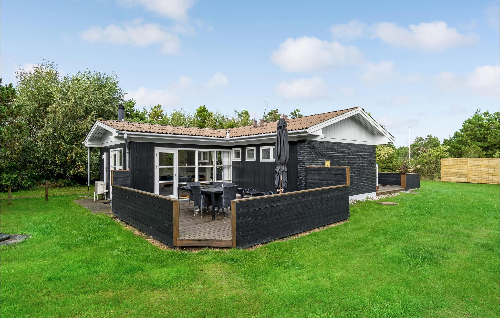 Hyggeligt træhus nær Blåvand med spabad, sauna og natur tæt på by og strand.