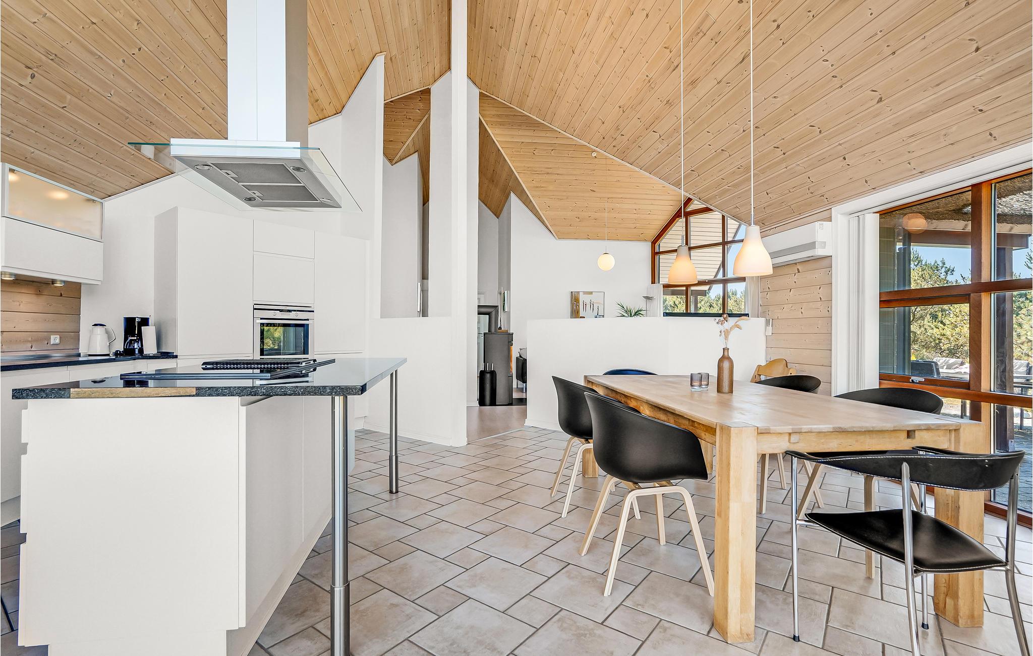 Dette fine hus består af nogle flotte arkitektoniske løsninger, ikke mindst i form af vinduerne, der bader huset i naturligt lys og giver jer en dejlig udsigt over omgivelserne. Fællesrummet er åbent og behageligt med de høje lofter, fine indretningsløsninger og brændeovnen, som skaber en hyggelig atmosfære, når I vender hjem fra dagens udflugter. Fyld ferien med god tid til madlavingsprojekter i køkkenet og afslappende stunder i spabadet.