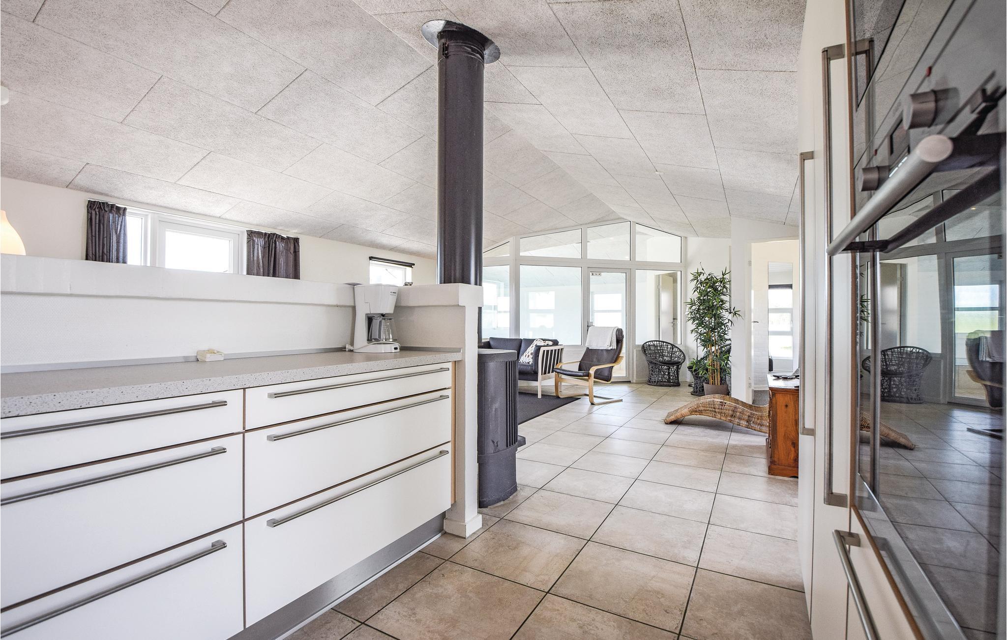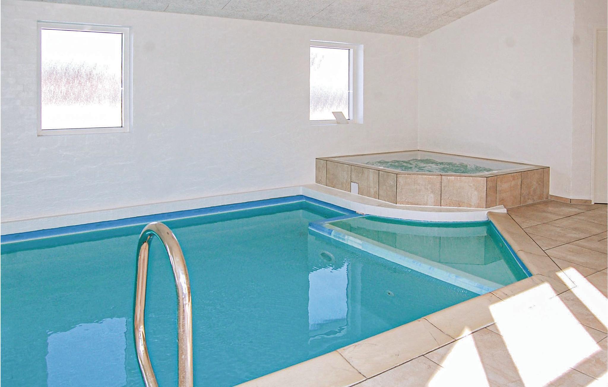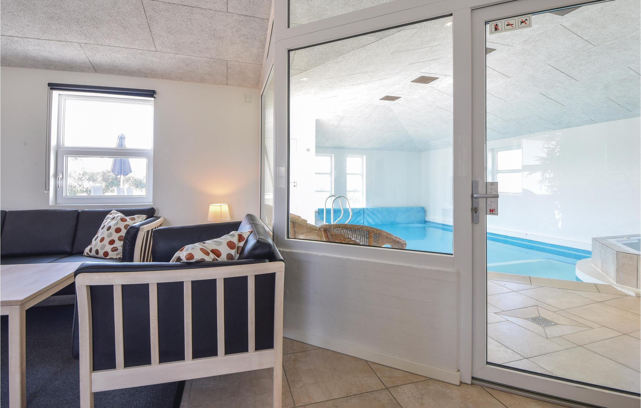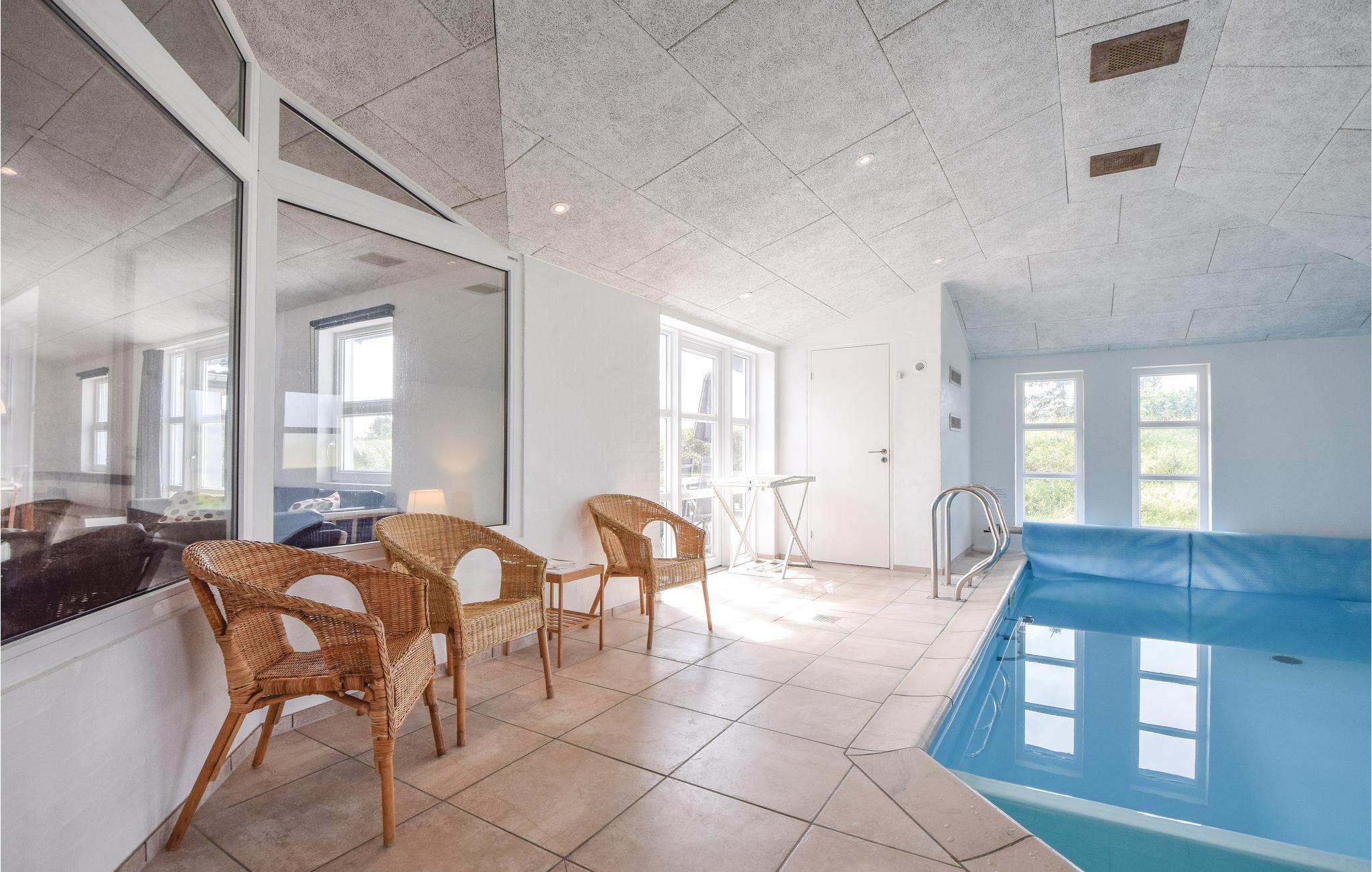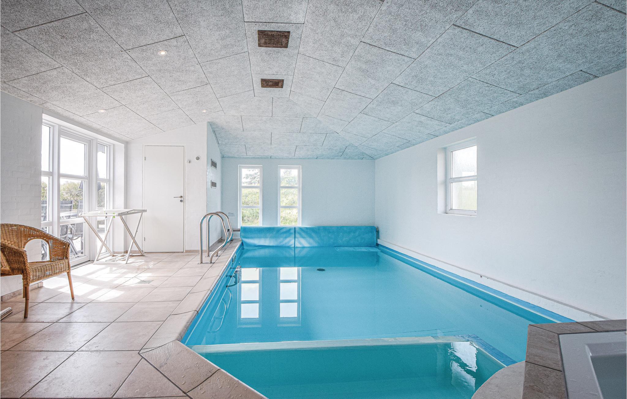 Dette lyse og indbydende feriehus midt i klitterne tilbyder god plads til to familier eller mange venner. Det er perfekt til en afslappet og varieret ferie for både unge og ældre. I poolområdet kan I svømme baner og plaske rundt i den 18 m2 store pool og derefter slappe dejligt af i spabadet (til 4 personer) og saunaen. Om aftenen kan I flade ud i stuen foran den store brændeovn.