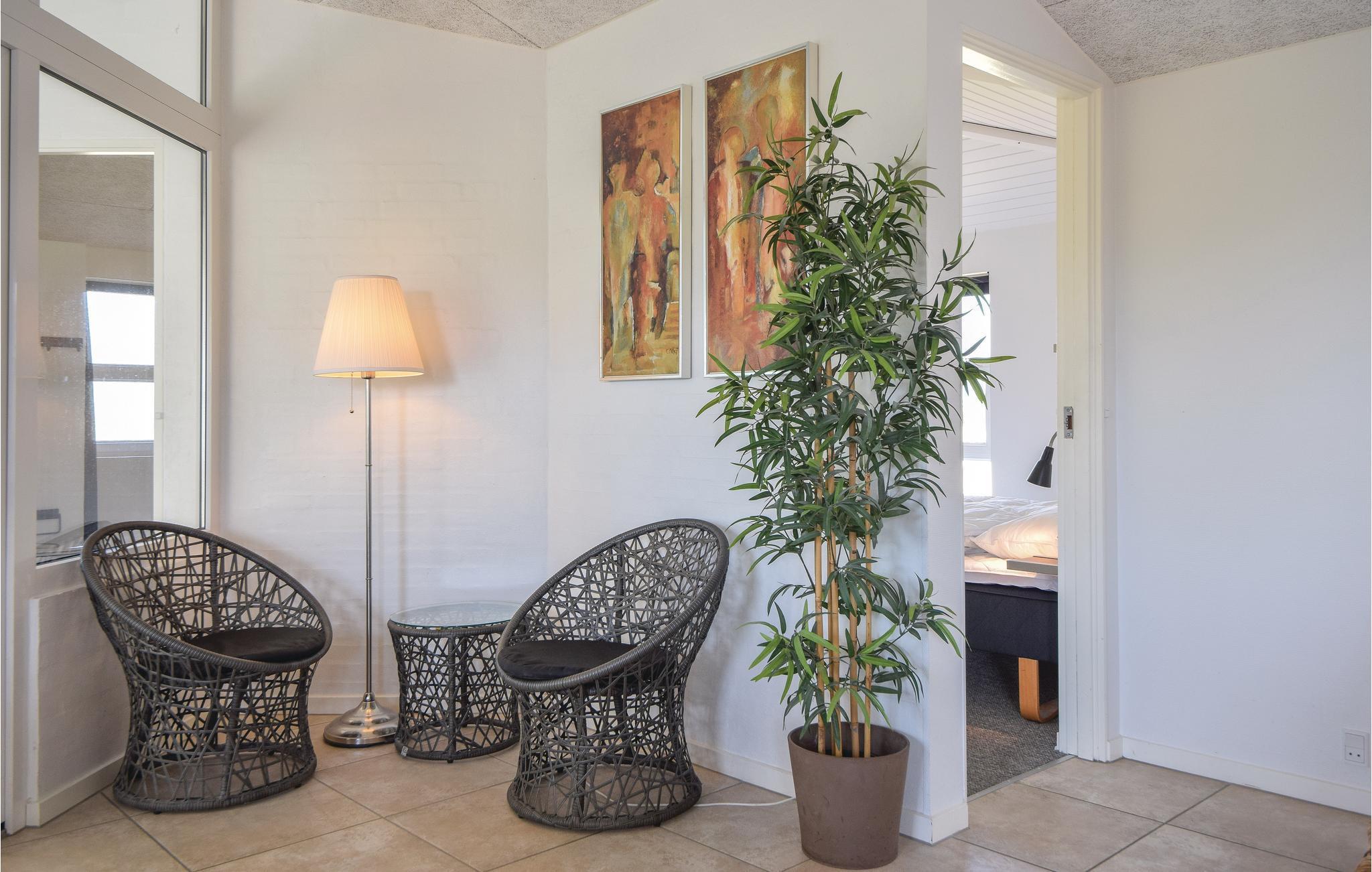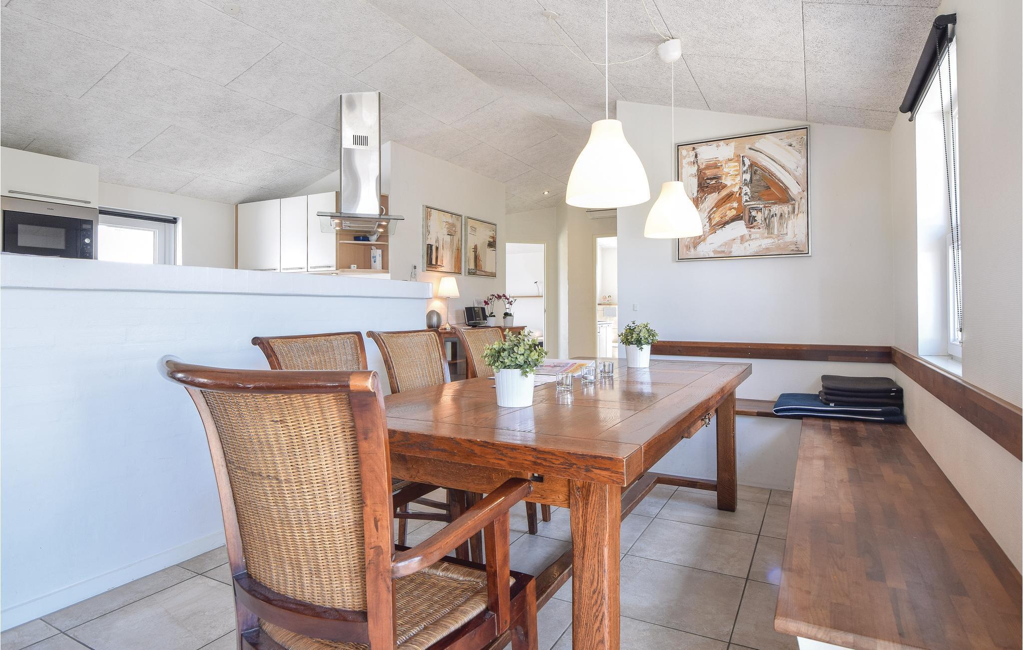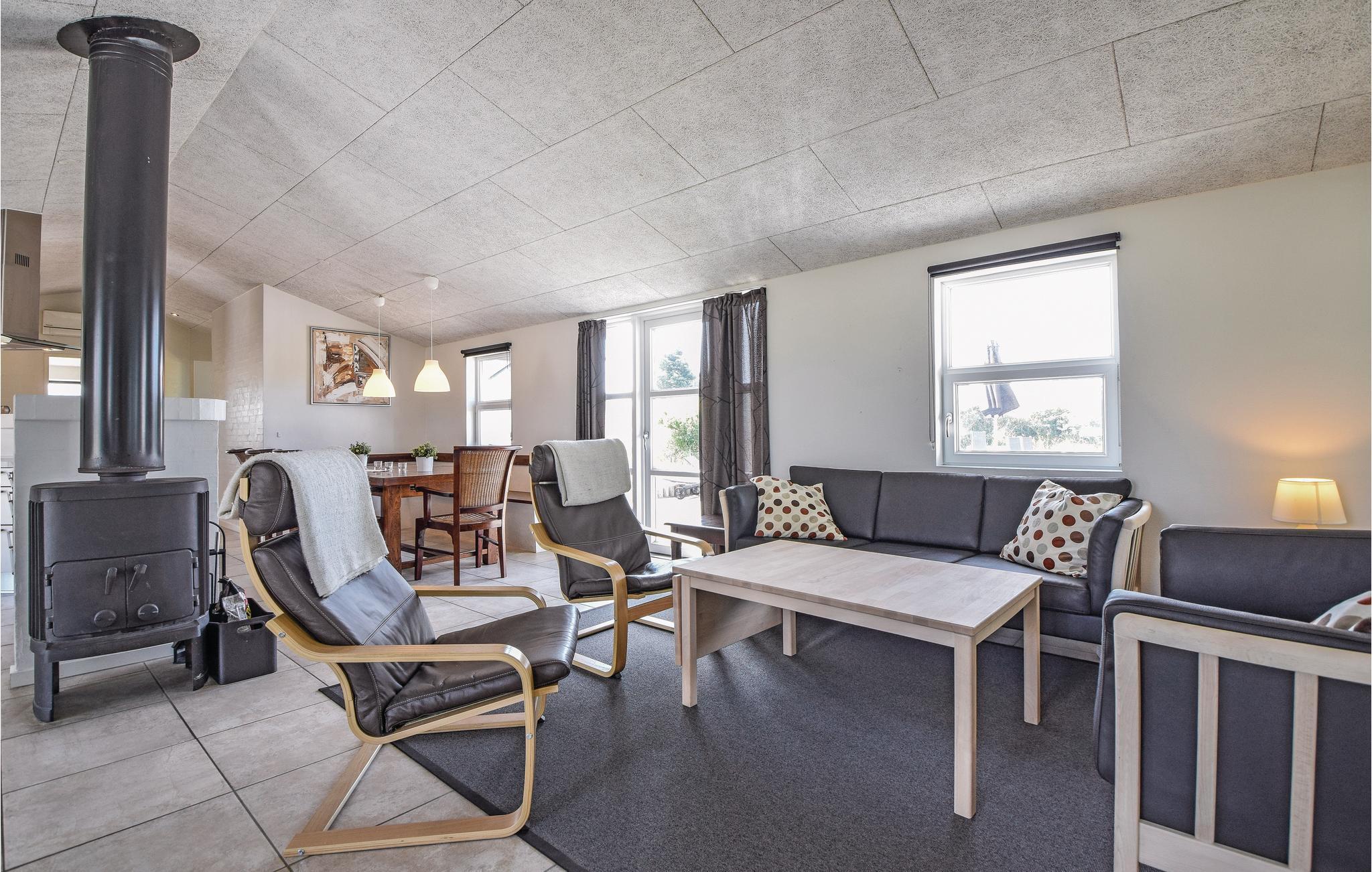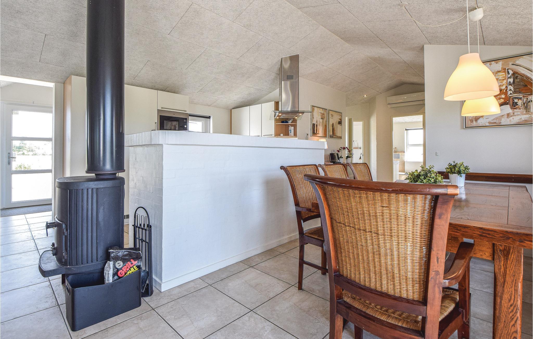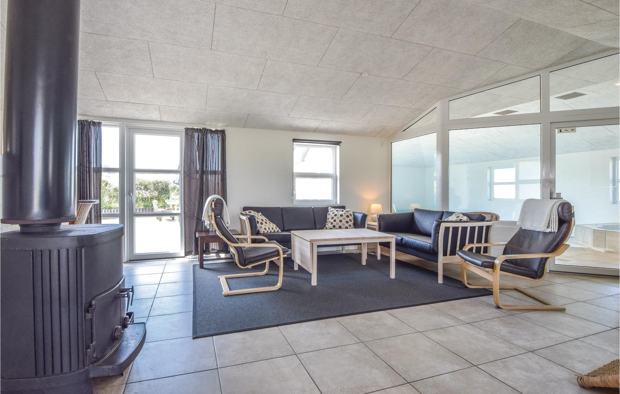 Dette lyse og indbydende feriehus midt i klitterne tilbyder god plads til to familier eller mange venner. Det er perfekt til en afslappet og varieret ferie for både unge og ældre. I poolområdet kan I svømme baner og plaske rundt i den 18 m2 store pool og derefter slappe dejligt af i spabadet (til 4 personer) og saunaen. Om aftenen kan I flade ud i stuen foran den store brændeovn.