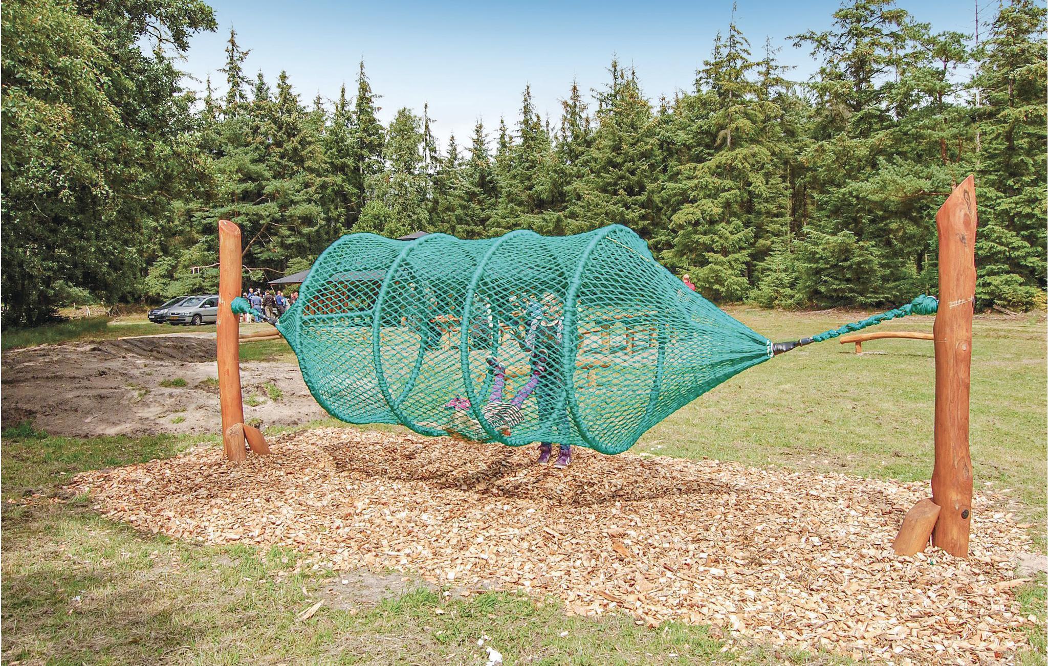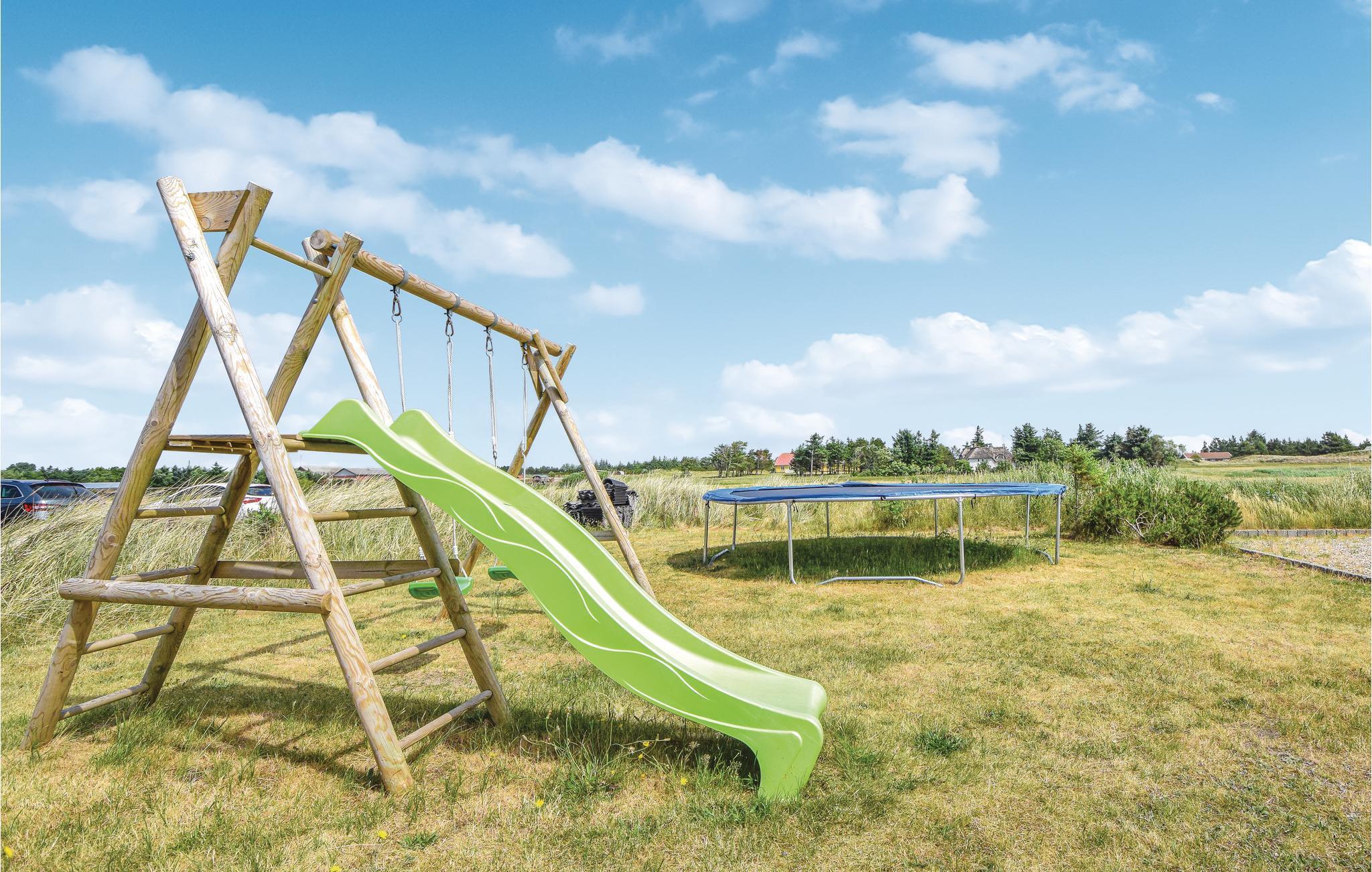 Der er flere terrasser rundt om huset, hvilket gør det nemt at følge solen i løbet af dagen og finde et sted med læ for vinden. Herude kan I nyde jeres feriemåltider sammen, solbade, drikke en kop kaffe eller et glas vin og afslutte dagen ??med en hyggelig grillaften. Børnene vil elske gyngerne, rutsjebanen og trampolinen på den store grund. Her er masser af plads til leg og aktivitet. Der er også en lille fodboldbane i haven.