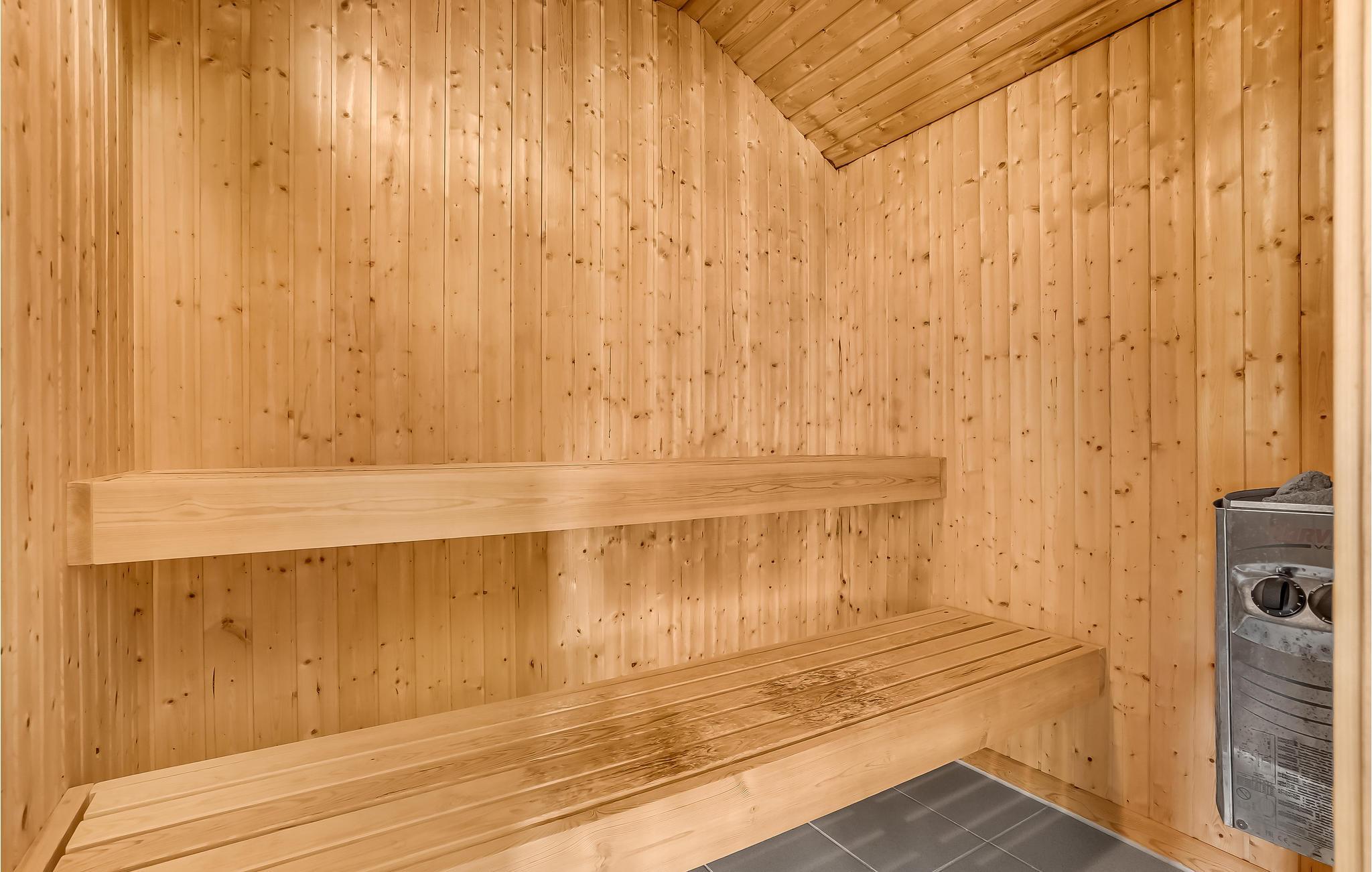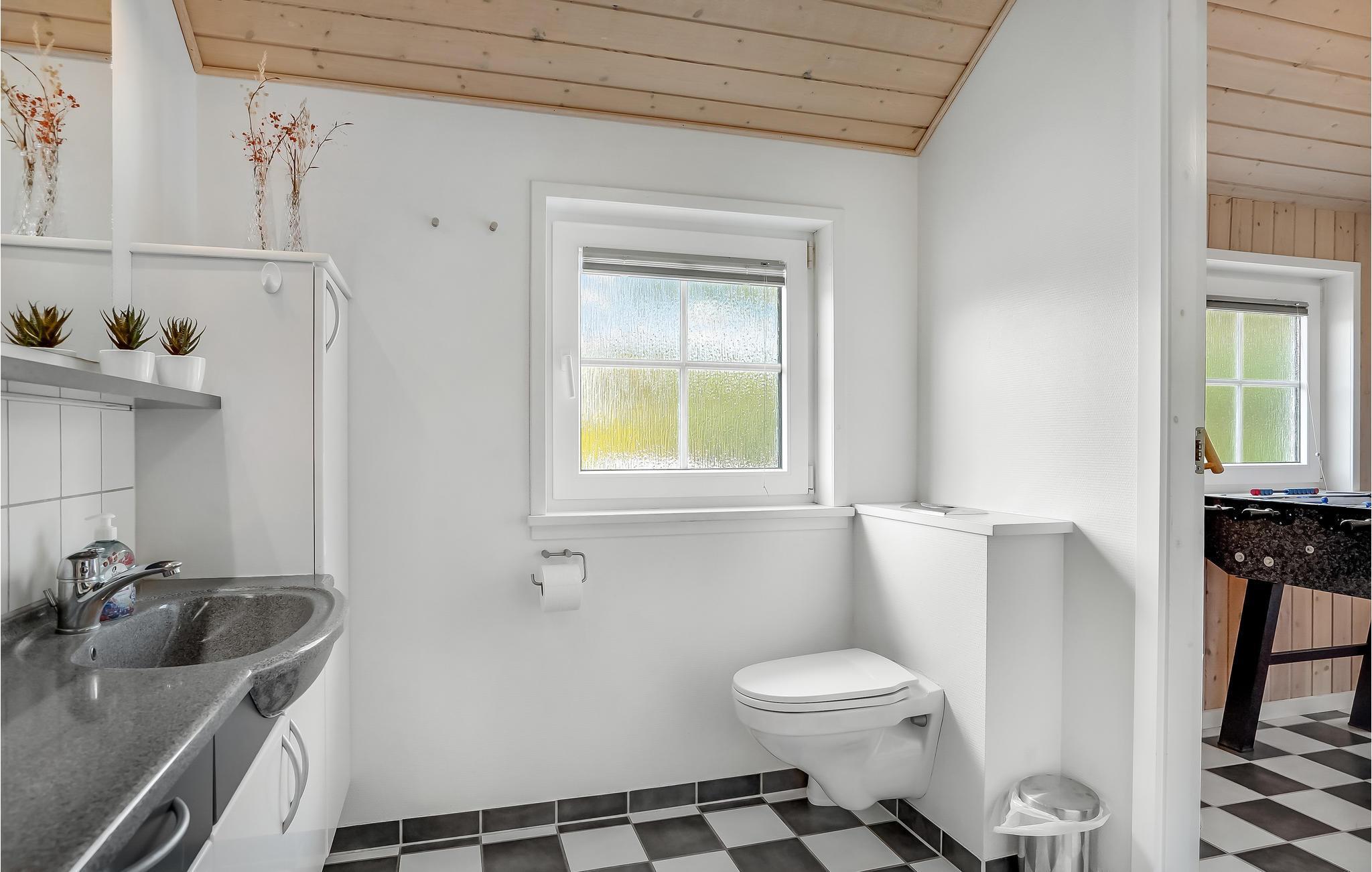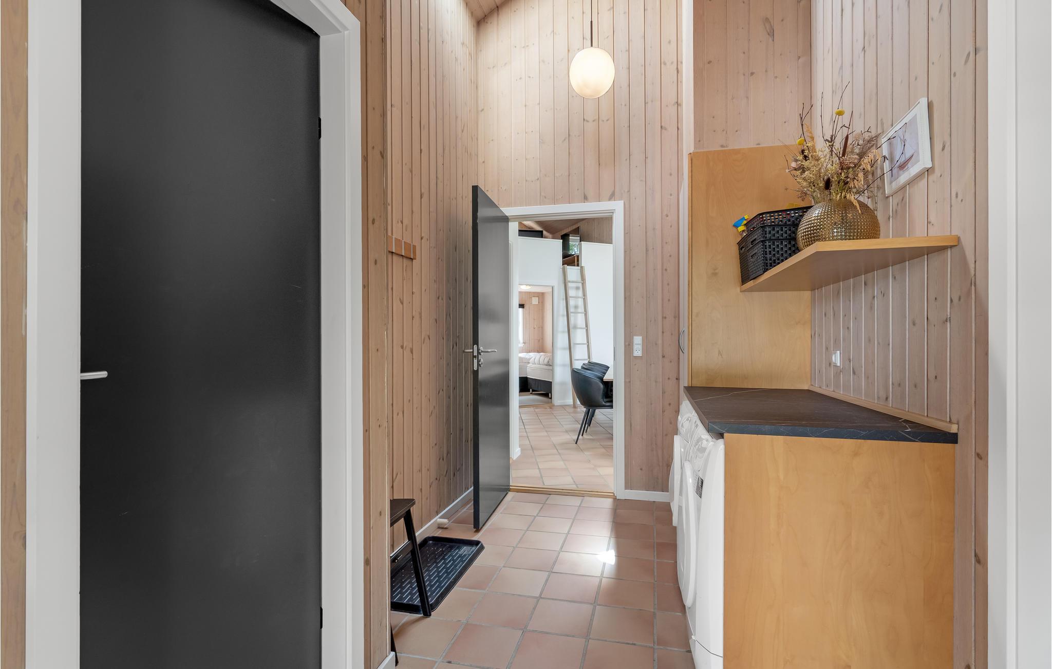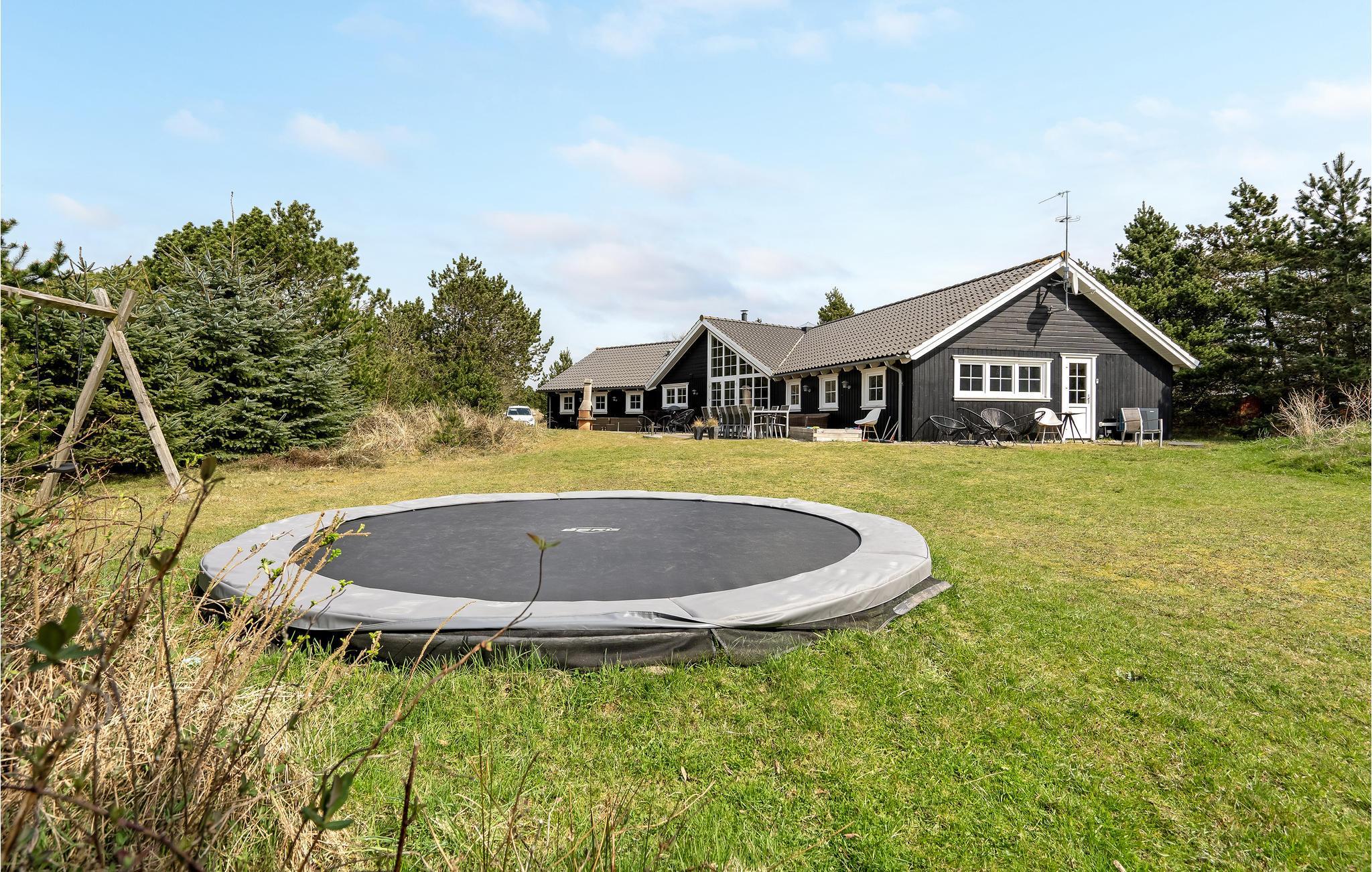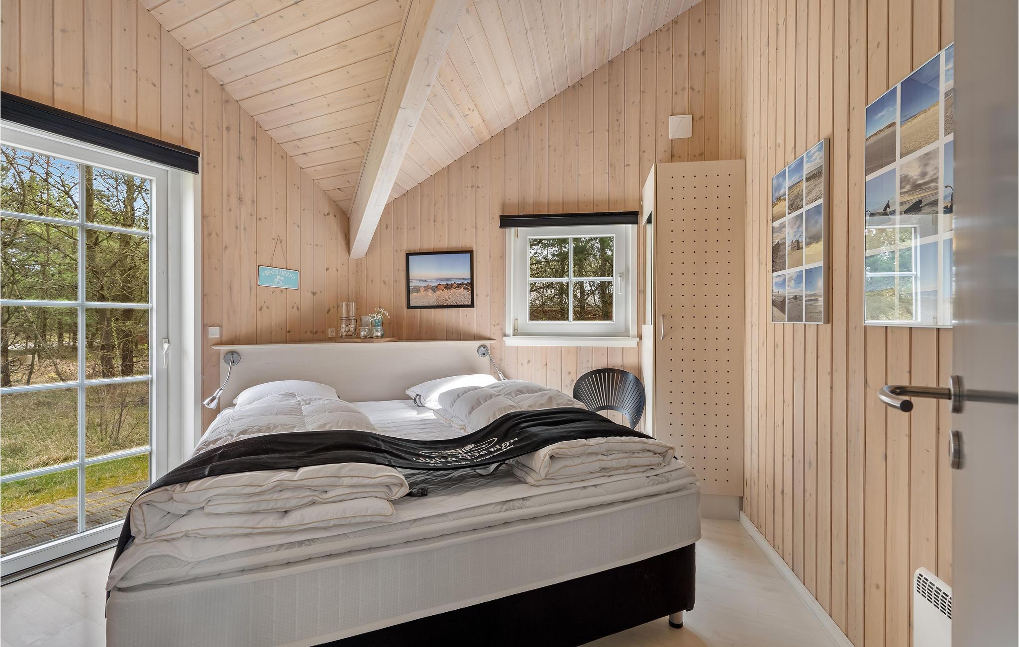 Helt specielt og arkitektonisk flot feriehus med sine skæve og spændende vinkler og lysindfald. Udover de fem gode soveværelser har huset også to hemse, den ene med sovepladser og den anden kan børnene bruge som legerum. I midten af huset ligger den store stue, som er lys og venlig, da der i spidsen af taget er isat ovenlysvinduer. Fra stuen er der frit blik ind til den lækre poolafdeling, hvor specielt den store svimmingpool helt sikkert falder i børnenes smag. I poolrummet ligger ligeledes spabadet og saunaen. Udendørs kan I rigtig nyde terrassen, der går næsten hele vejen rundt om huset, så der altid kan findes en solplads. Bilerne kan parkeres lige ved indgangsdøren i den dobbelte carport. Huset ligger i gåafstand til såvel den flotte sandstrand, og ikke mindst Blåvand by, der har et stort udvalg af butikker.