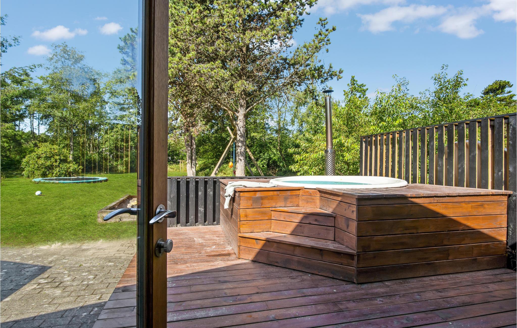 Dejligt feriehus med vildmarksbad og en unik beliggenhed med udsigt over Ho Bugt samt de tilstødende marker med heste, rideskole og mulighed for at opleve kronvildt. Feriehuset har et godt og rummeligt køkken/alrum med brændeovn samt varmepumpe. Alle soveværelser er gode og rummelige. Fra husets stue er der udgang til de delvis overdækkede terrasser, hvor I kan nyde at sidde i vildmarksbadet. Det er en stor oplevelse at forberede og opholde sig i badet; det opvarmes med en lille slags brændeovn og fyres derfor op med brænde. Huset blev til sæsonen 2020 generelt moderniseret med nye møbler og ikke mindst et super flot køkken, hvor der bl.a. er 2 ovne, heraf den ene en kombi ovn med mikro. Skal der laves god kaffe, kan det gøres på en moderne Siemens expresso maskine, der kan lave mange forskellige typer kaffe.