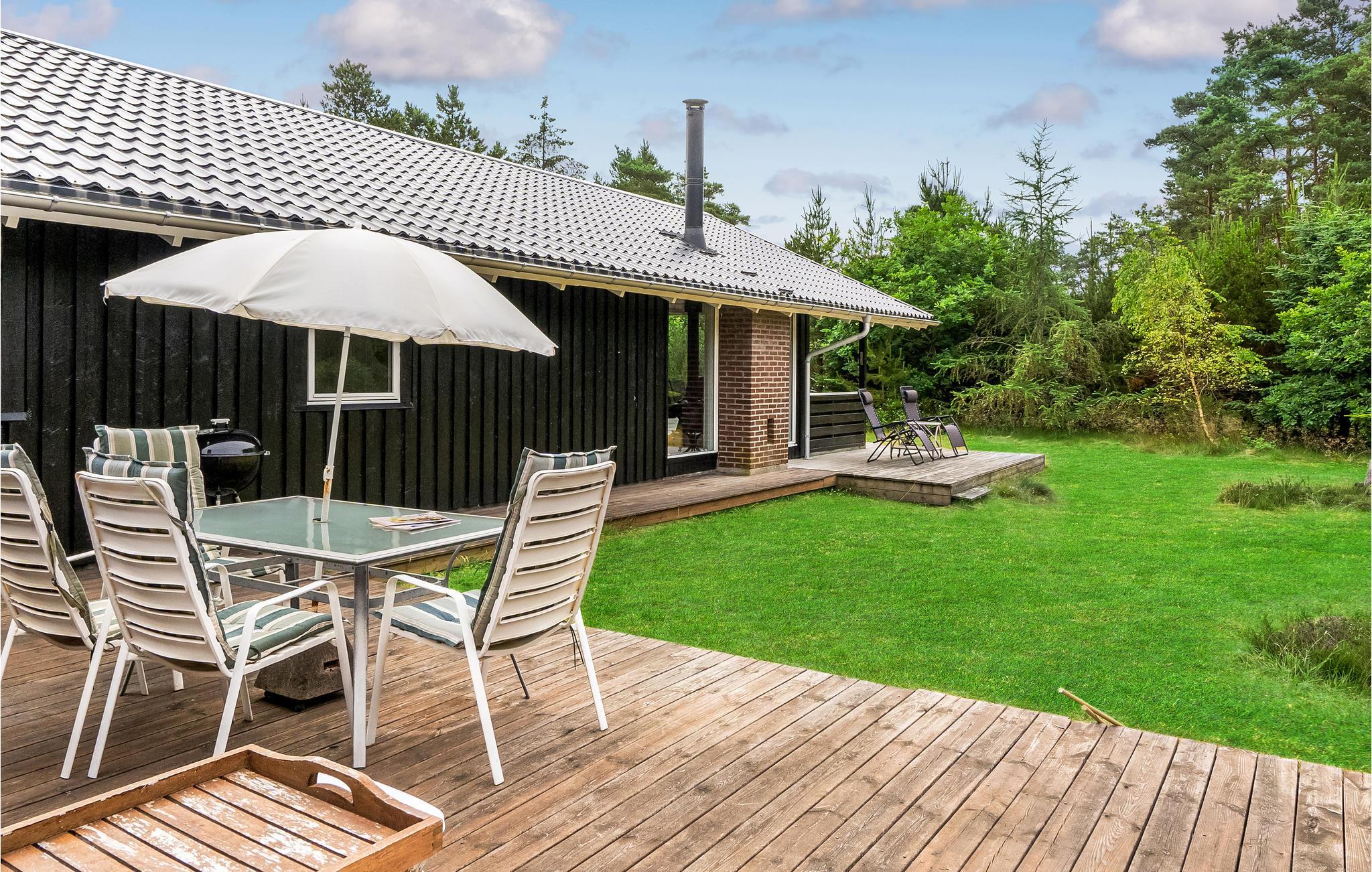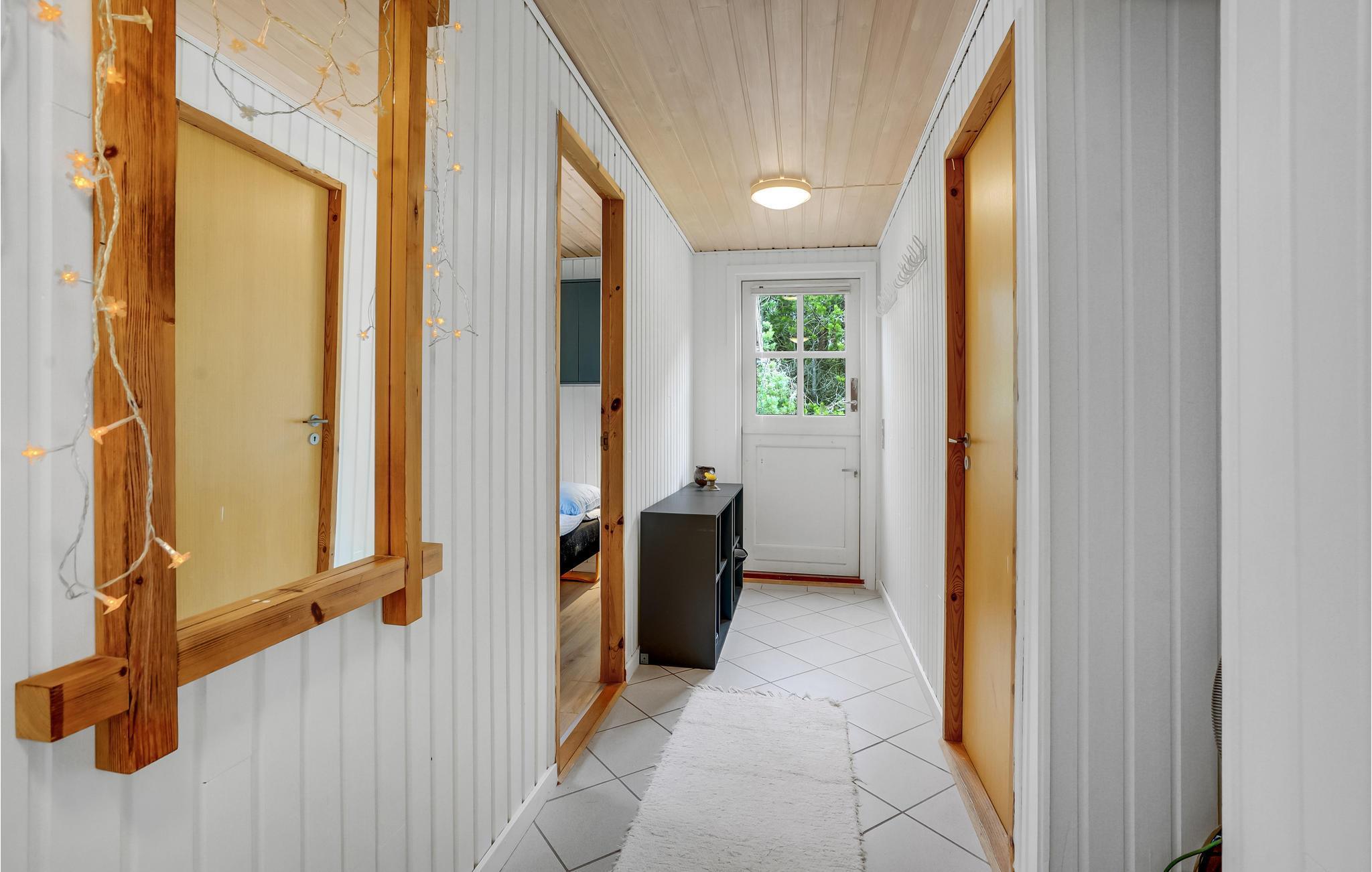 Sommerhuset byder på tre hyggelige soveværelser samt badeværelse, køkken og en hyggelig opholdsstue. Efter en masse aktiviteter i naturen kan I slappe af i opholdsstuen, mens ilden i brændeovnen, og hverdagen er sat på pause. De store vinduesfronter sørger for masser af lys og en dejlig udsigt til omgivelserne.