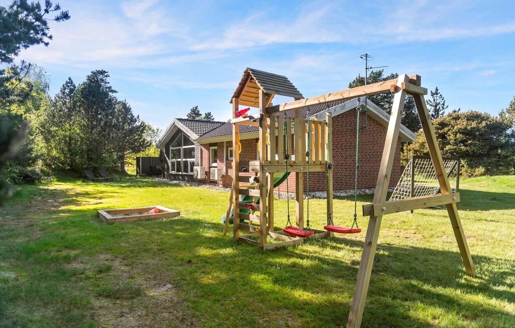 Familievenligt feriehus i Blåvand med wellness, swimmingpool, sauna og store udendørs aktivitetsmuligheder.