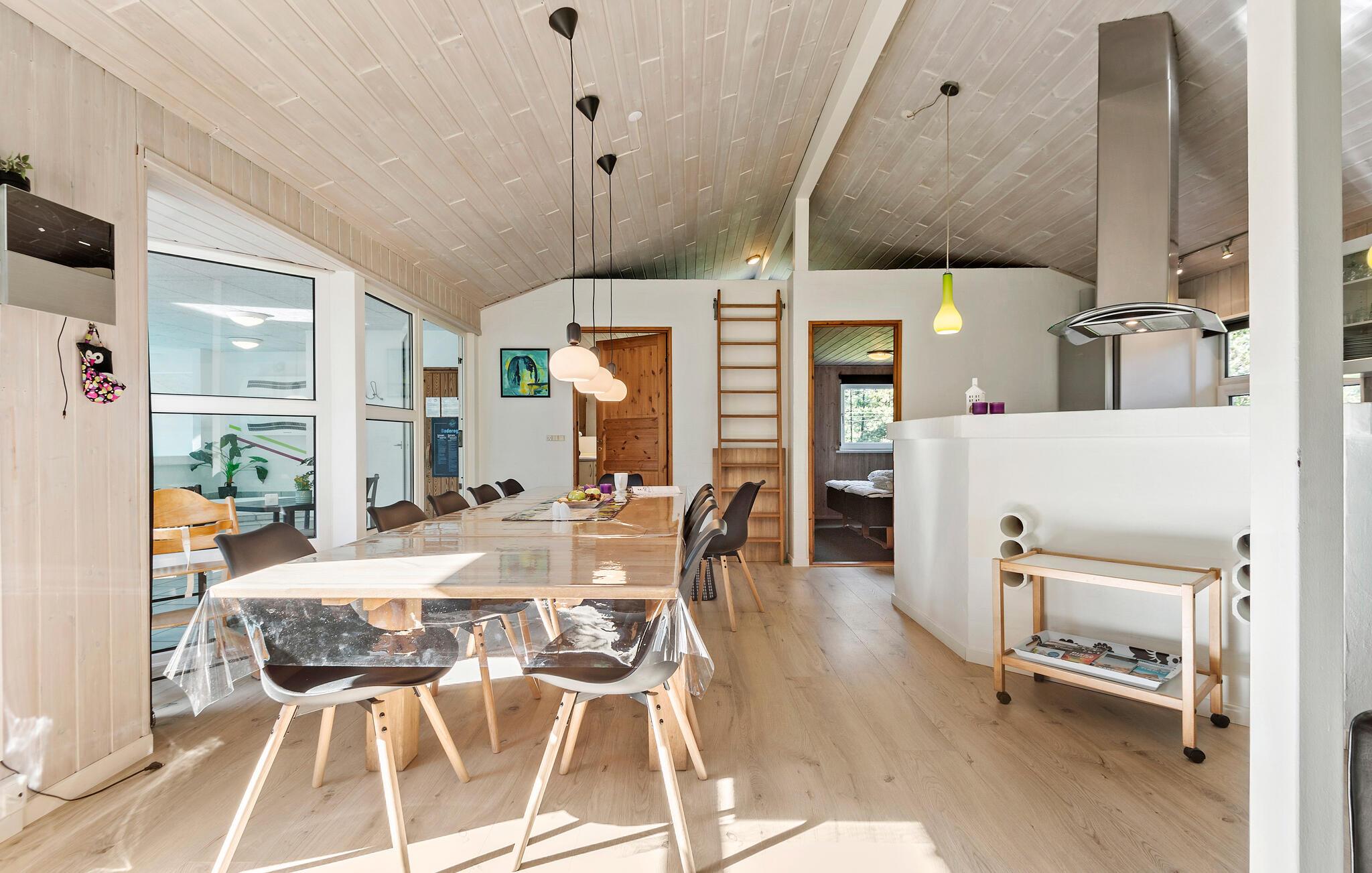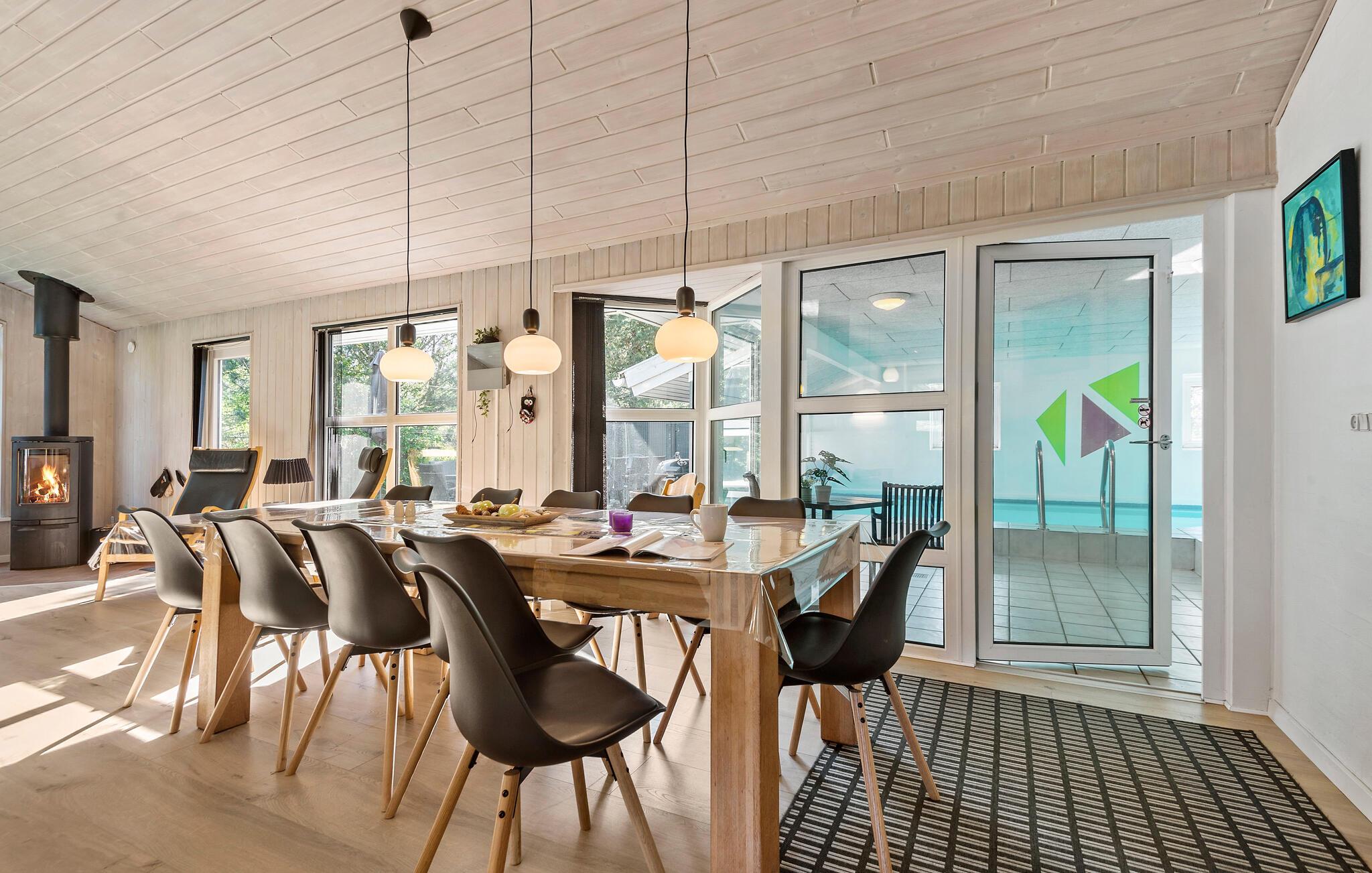 Velkommen til dette hus, der tilbyder alt, hvad I behøver for at lægge jeres hektiske hverdag bag jer og have det sjovt sammen med familien. Kom ind og nyd de lyse omgivelser med de mange vinduer og flotte møbler samt en swimmingpool med wellnessområde. Her kan i bade, slappe af og gå i sauna, og I kan mødes i det åbne opholdsrum til madlavning, spisning og leg.