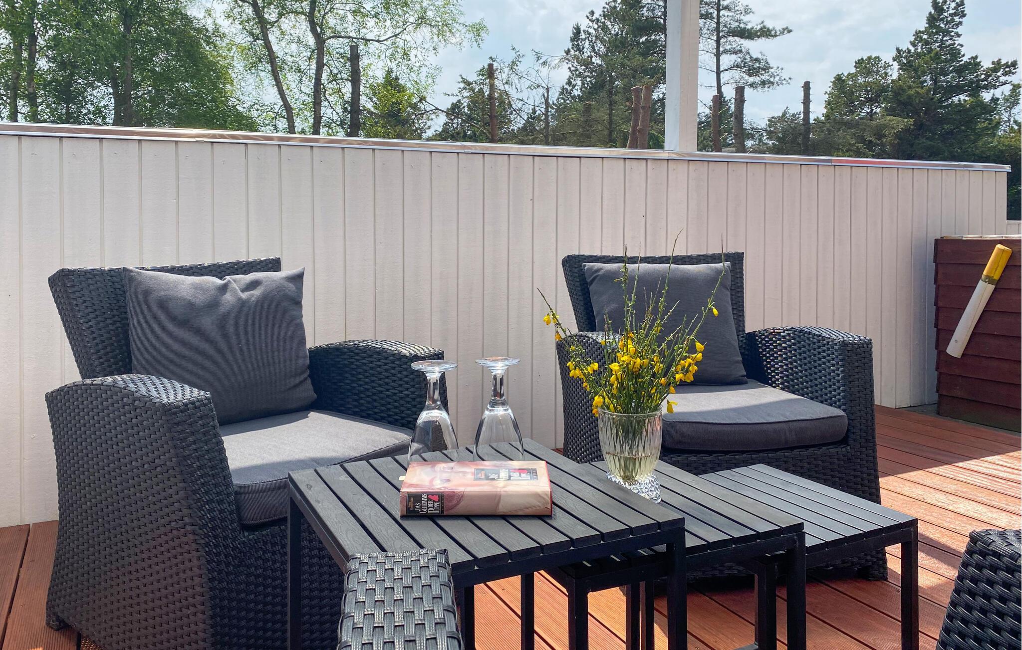 Udenfor er der forskellige terrasseområder, der er ideelle til solrige timer udendørs. Slap af på behagelige liggestole, mens børnene morer sig på trampolinen, gyngerne eller sandkassen. Brug grillen til at tilberede lækre måltider udendørs på de varme sommeraftener.
