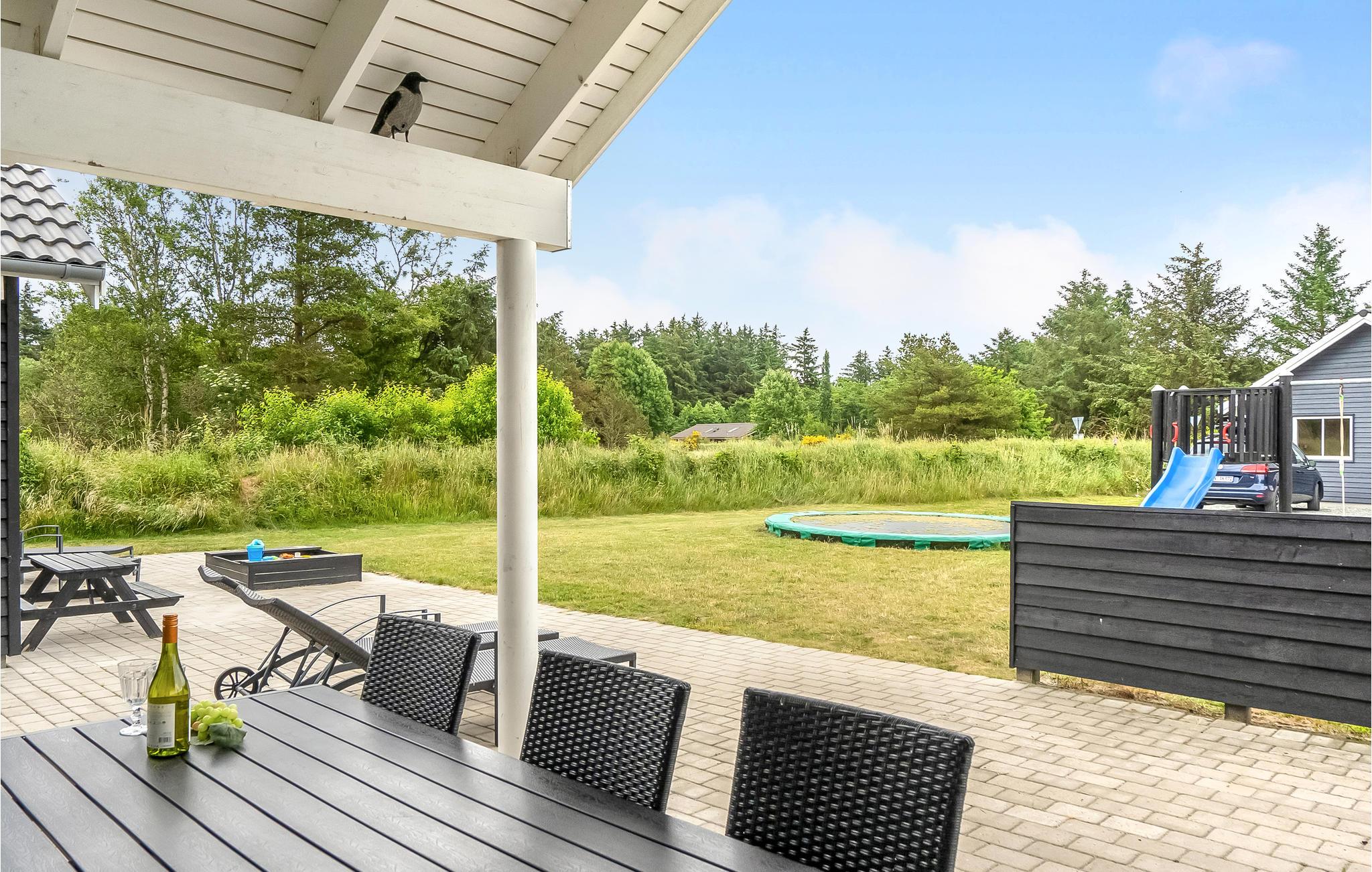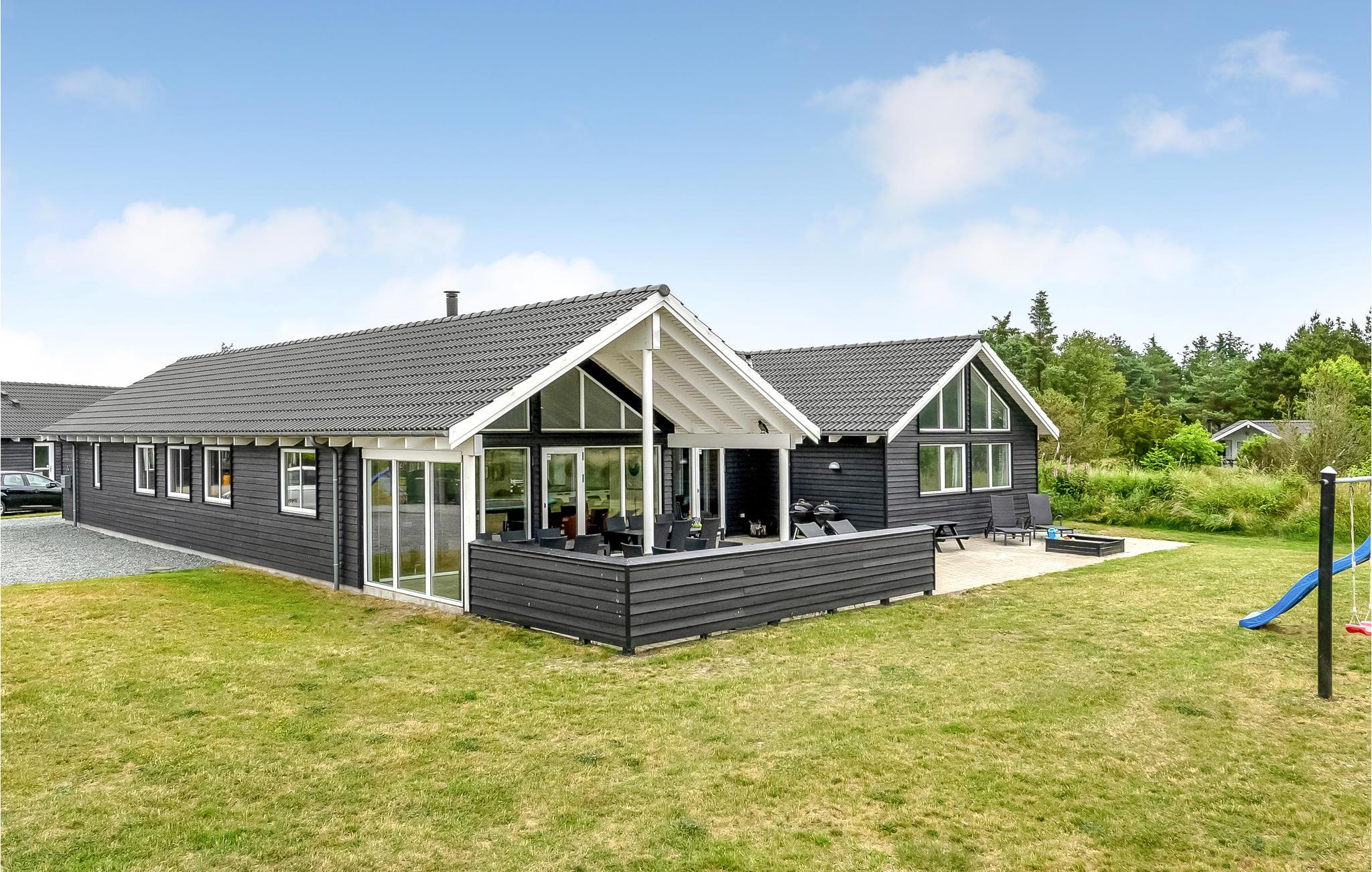 Luksuriøst sommerhus i Blåvand med pool, sauna, aktivitetsrum og stor terrasse tæt på strand og byliv.