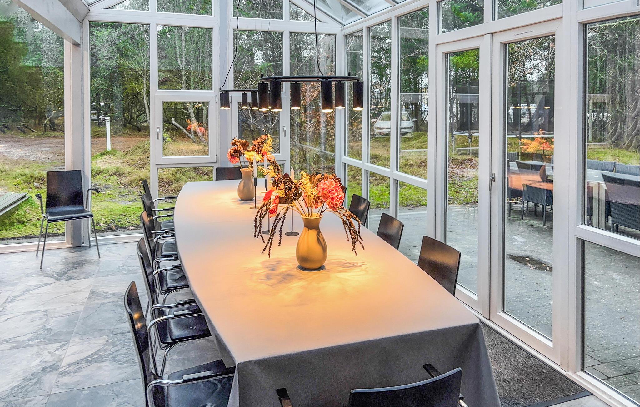 For enden af en grusvej, næsten helt for sig selv, ligger dette store sommerhus, med både pool, spa og sauna. Huset er indrettet med køkken og spisestue, en tv stue med brændeovn. Et stort poolrum hvor man kan bruge mange timer hvis man er en vandhund. Huset har også en rigtig stor havestue, så mange kan forlænge sommeren i begge ender.