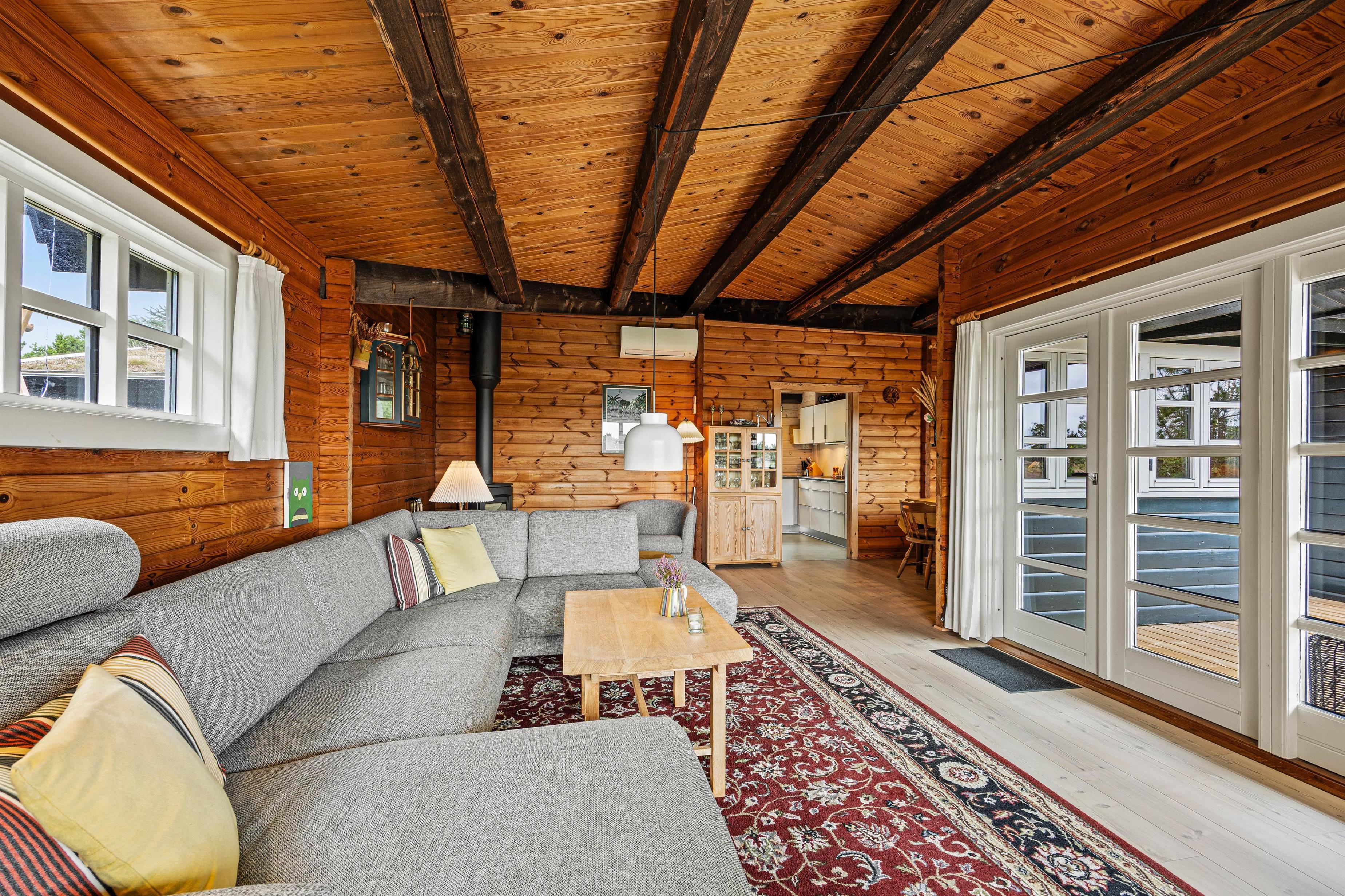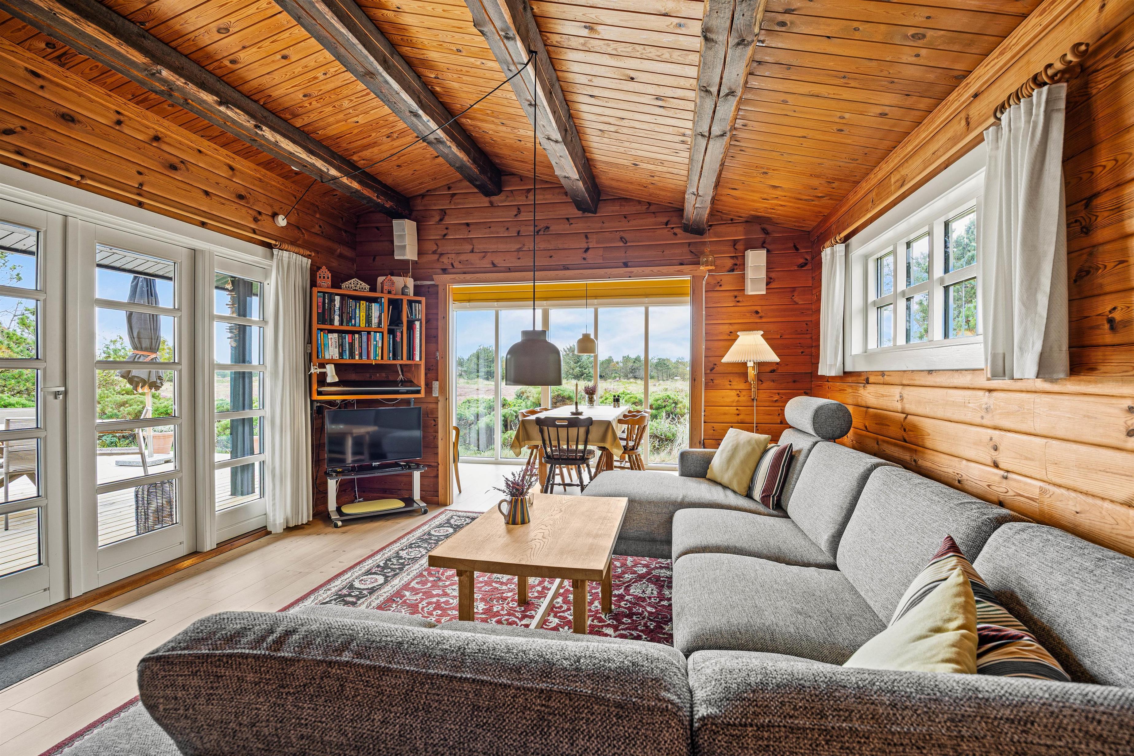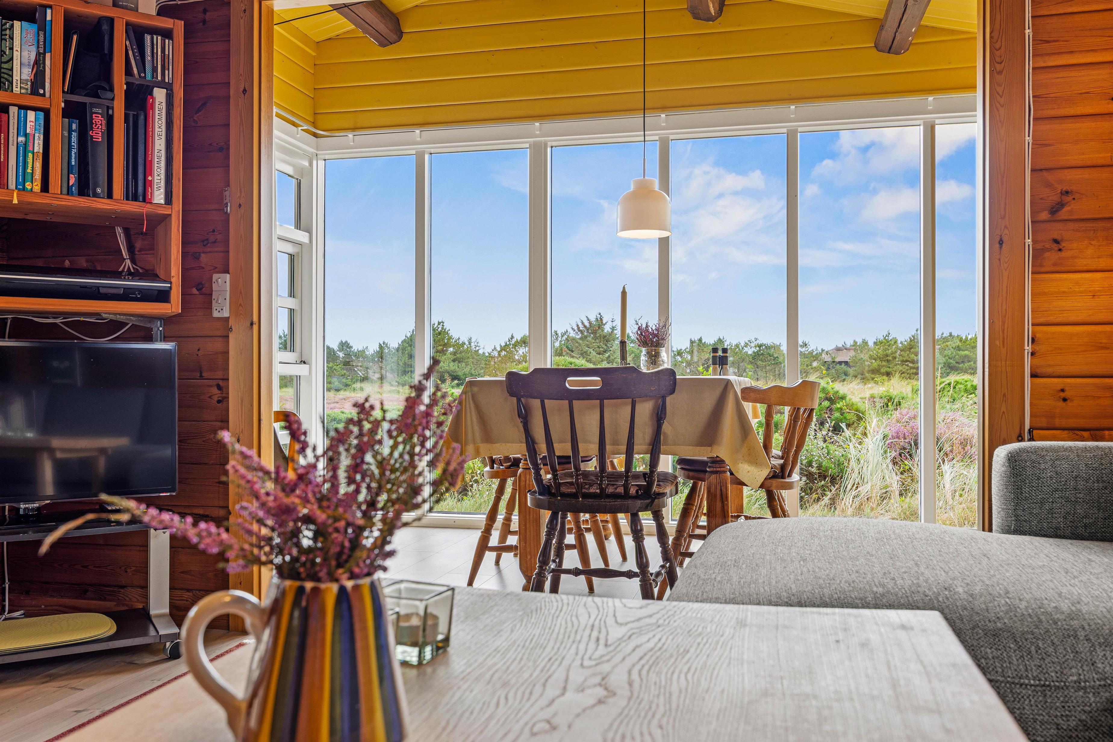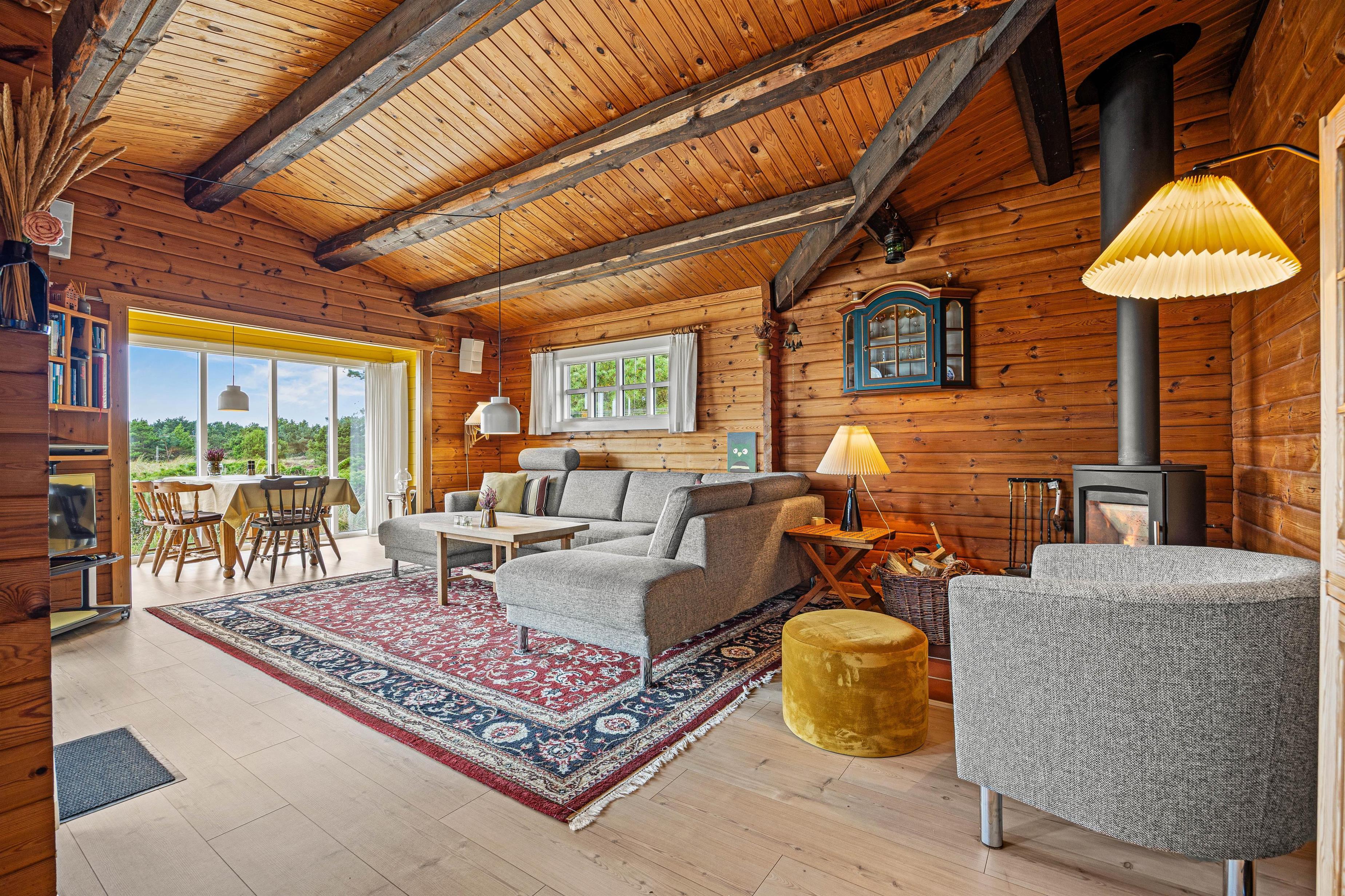 Sidst, men ikke mindst, har sommerhuset en udestue i forlængelse af opholdsrummet, hvorfra der er en fantastisk udsigt til det fredede hedeområde gennem de store vinduer.