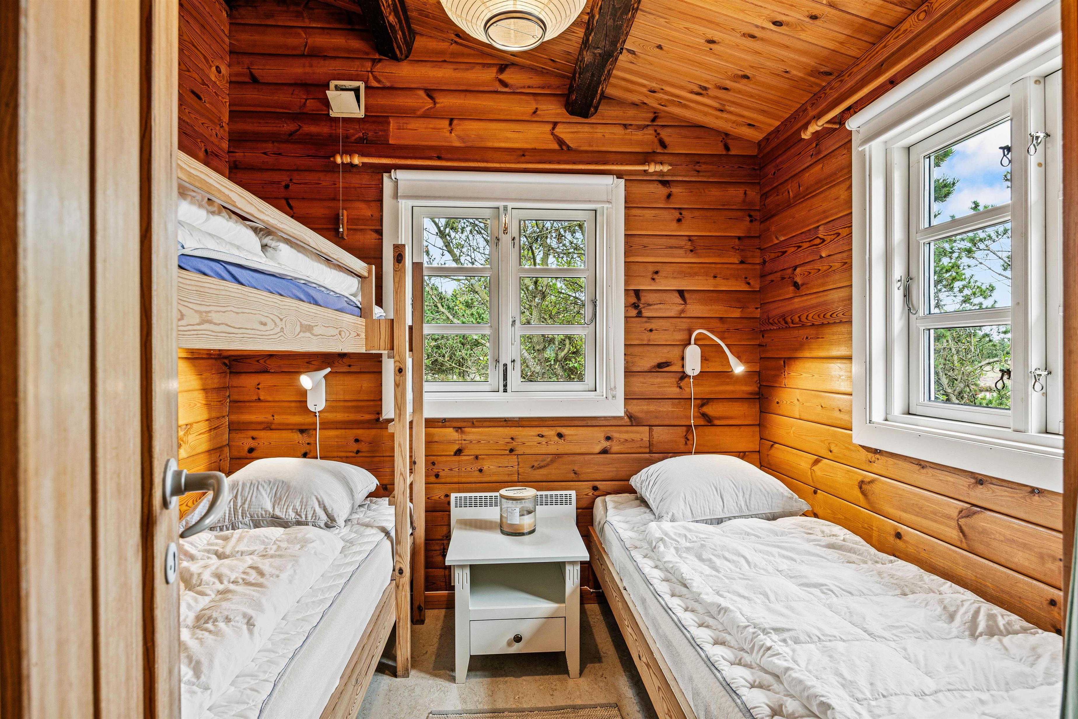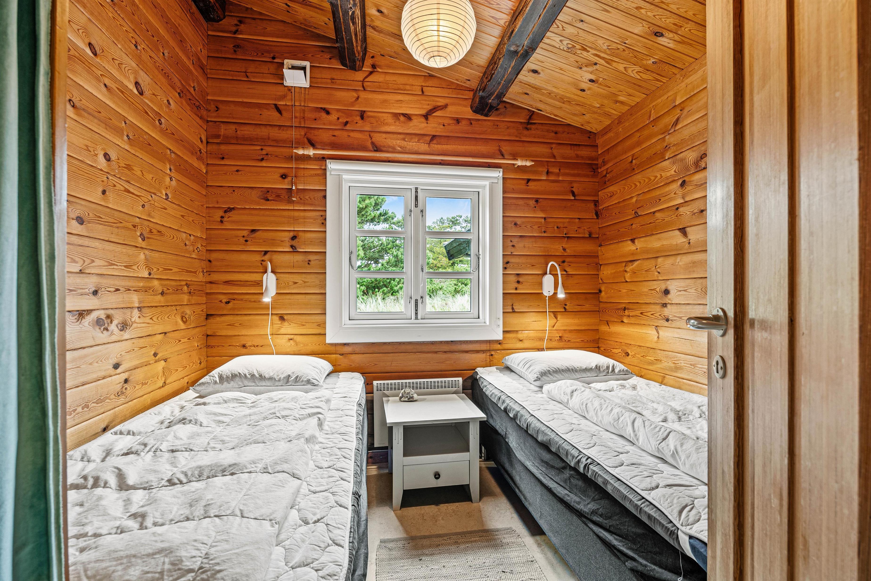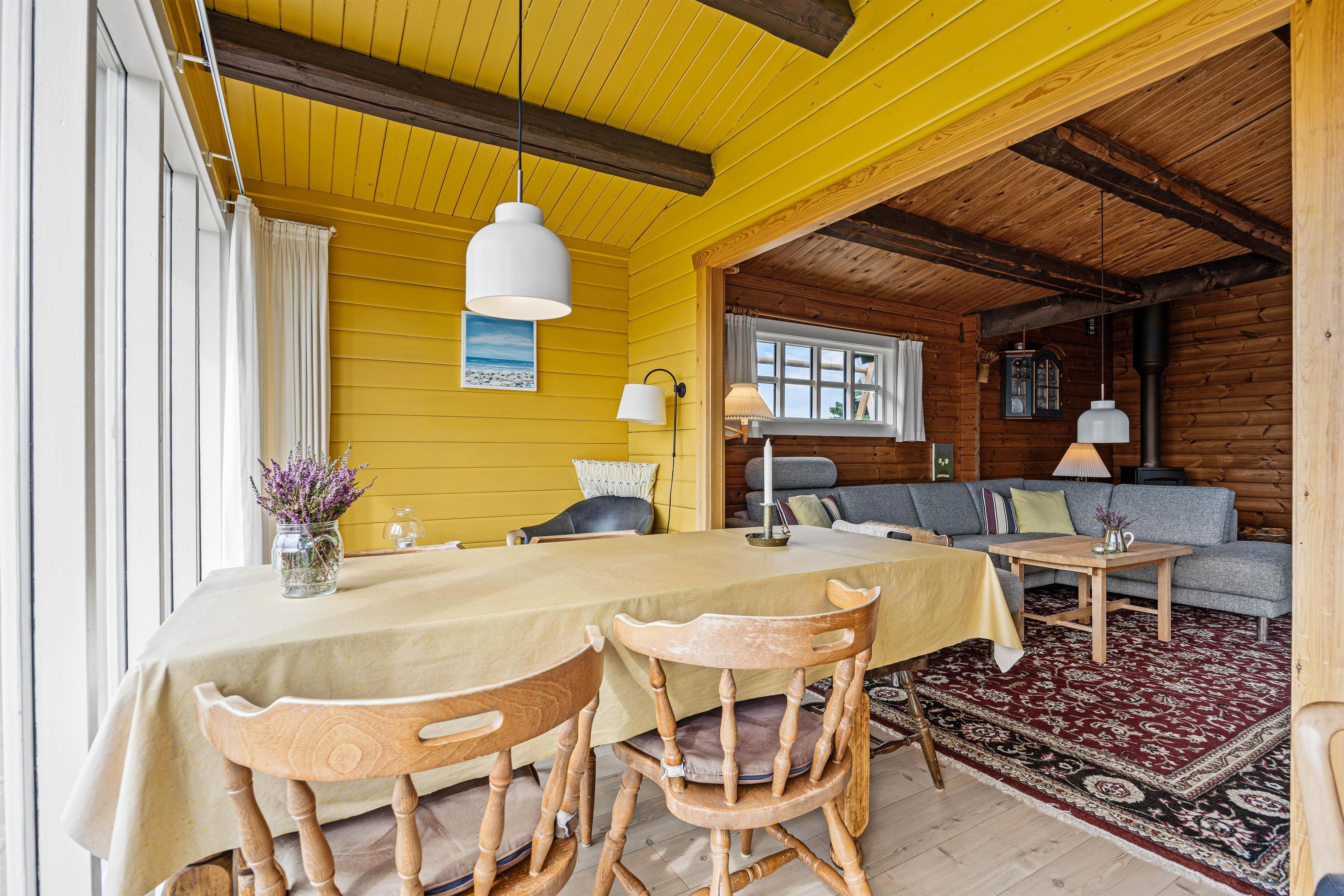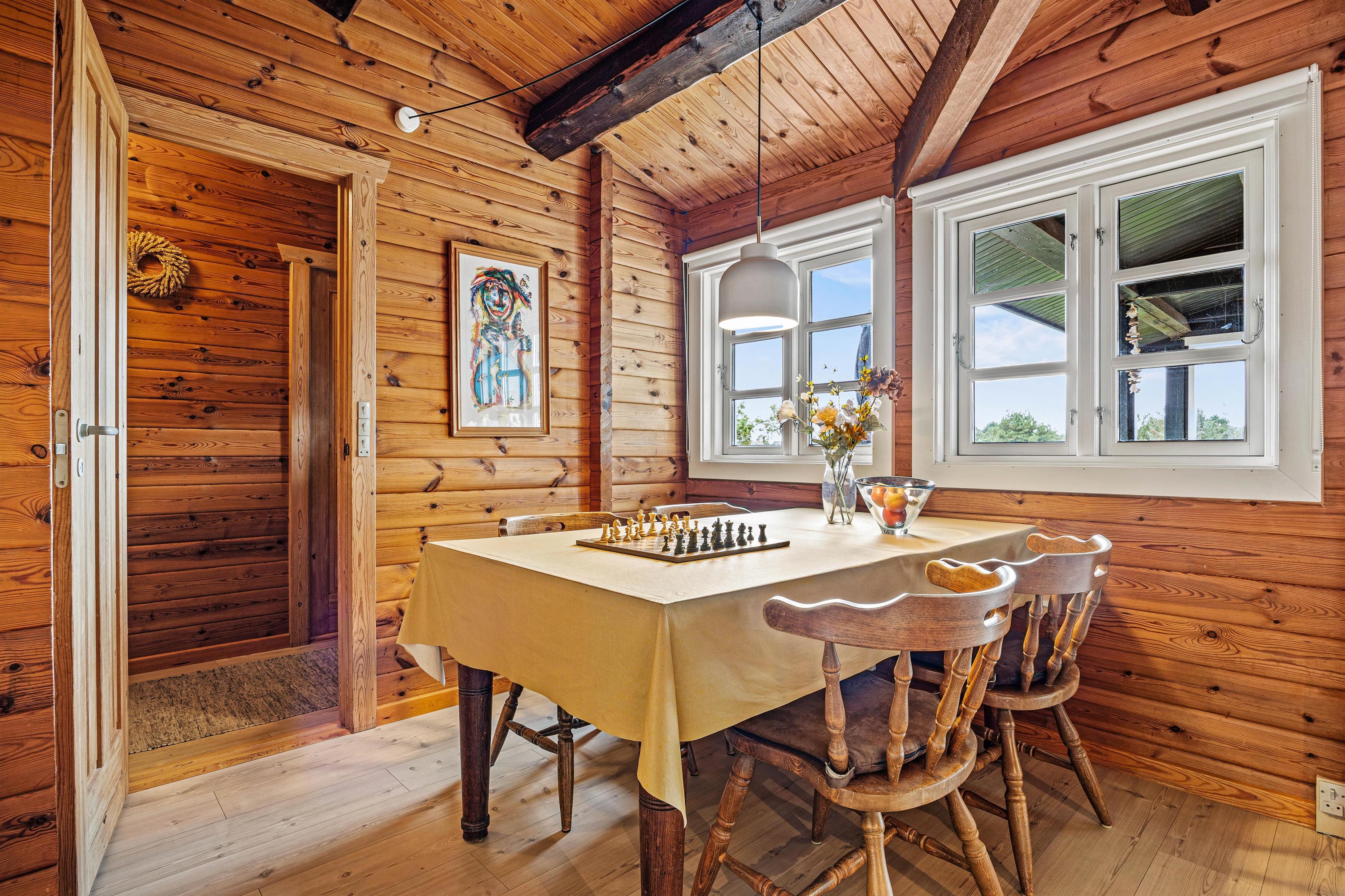 Sidst, men ikke mindst, har sommerhuset en udestue i forlængelse af opholdsrummet, hvorfra der er en fantastisk udsigt til det fredede hedeområde gennem de store vinduer.