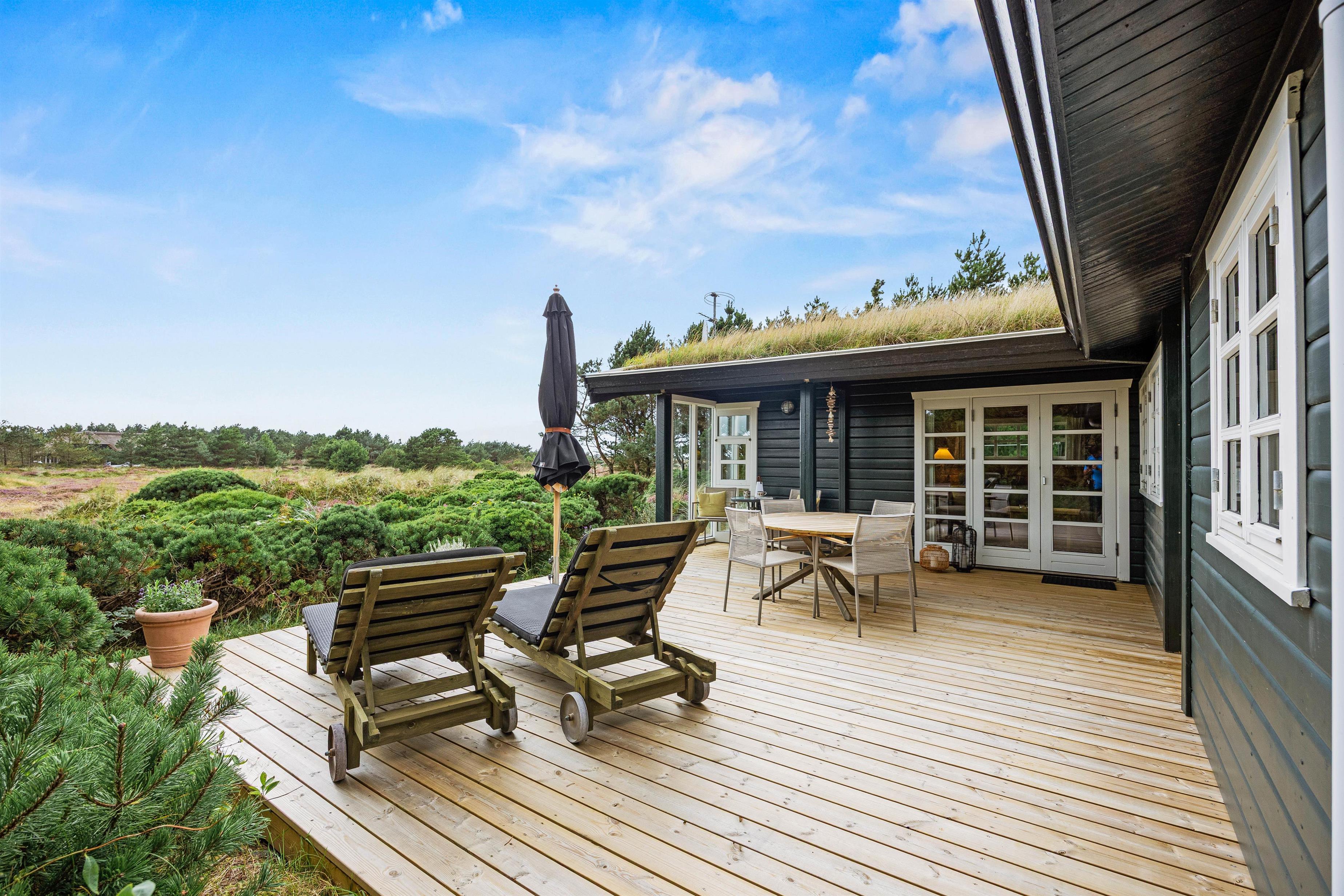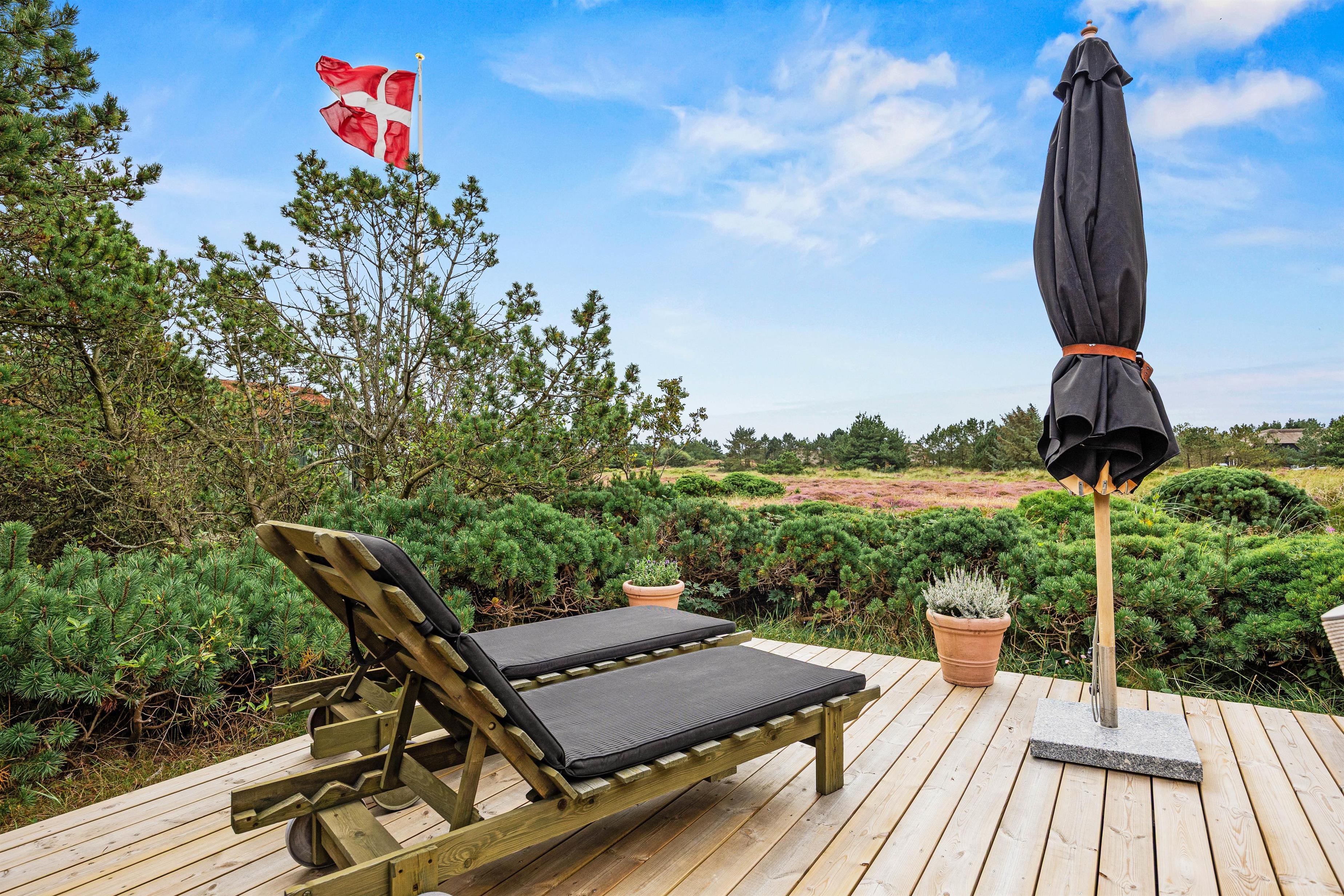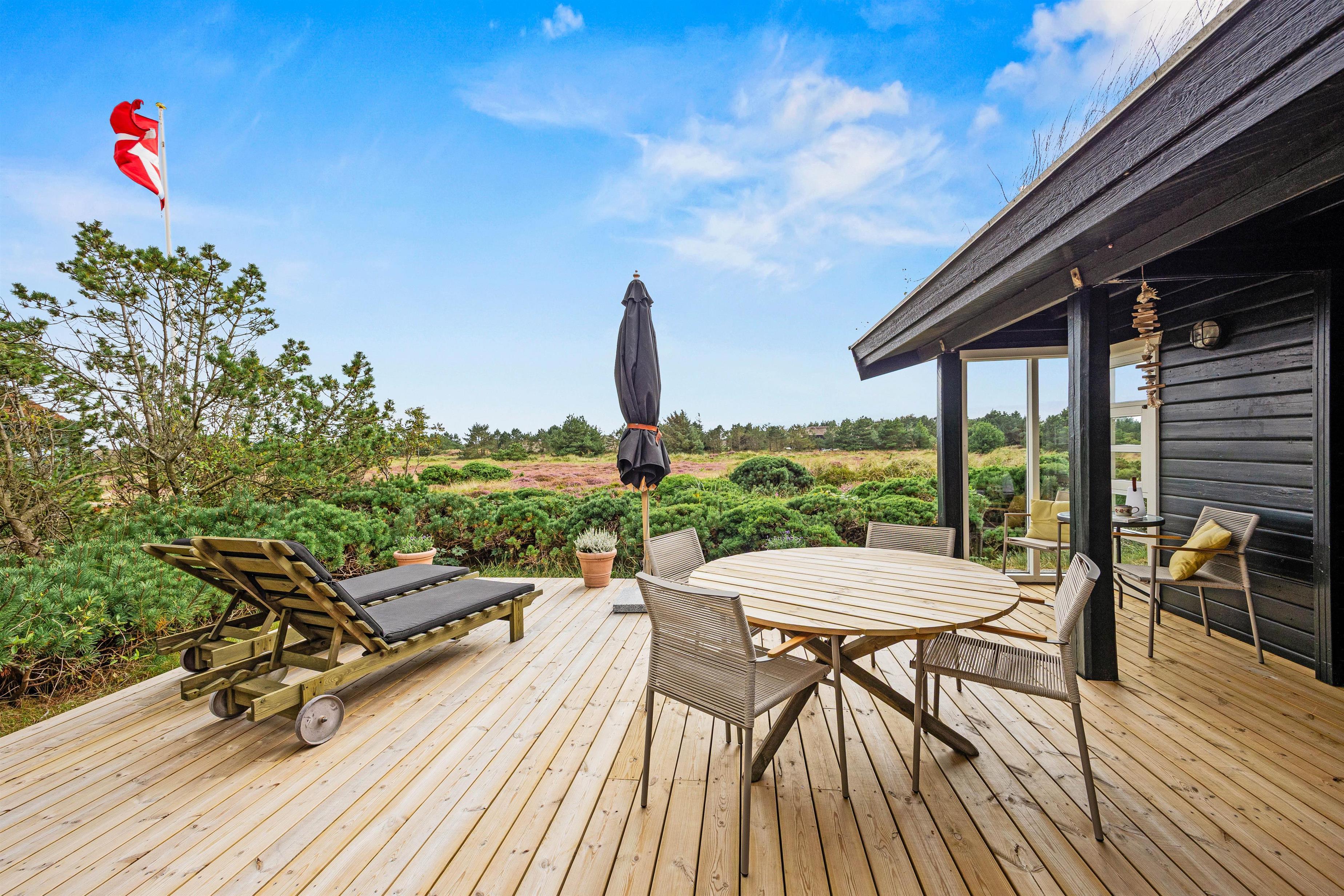 Fra den sydvestvendte terrasse kan I betragte den lyngklædte hede, mens I læner jer tilbage i havemøblerne med lidt koldt at drikke, og på den nordøstvendte terrasse er der altid en læfyldt krog at finde.