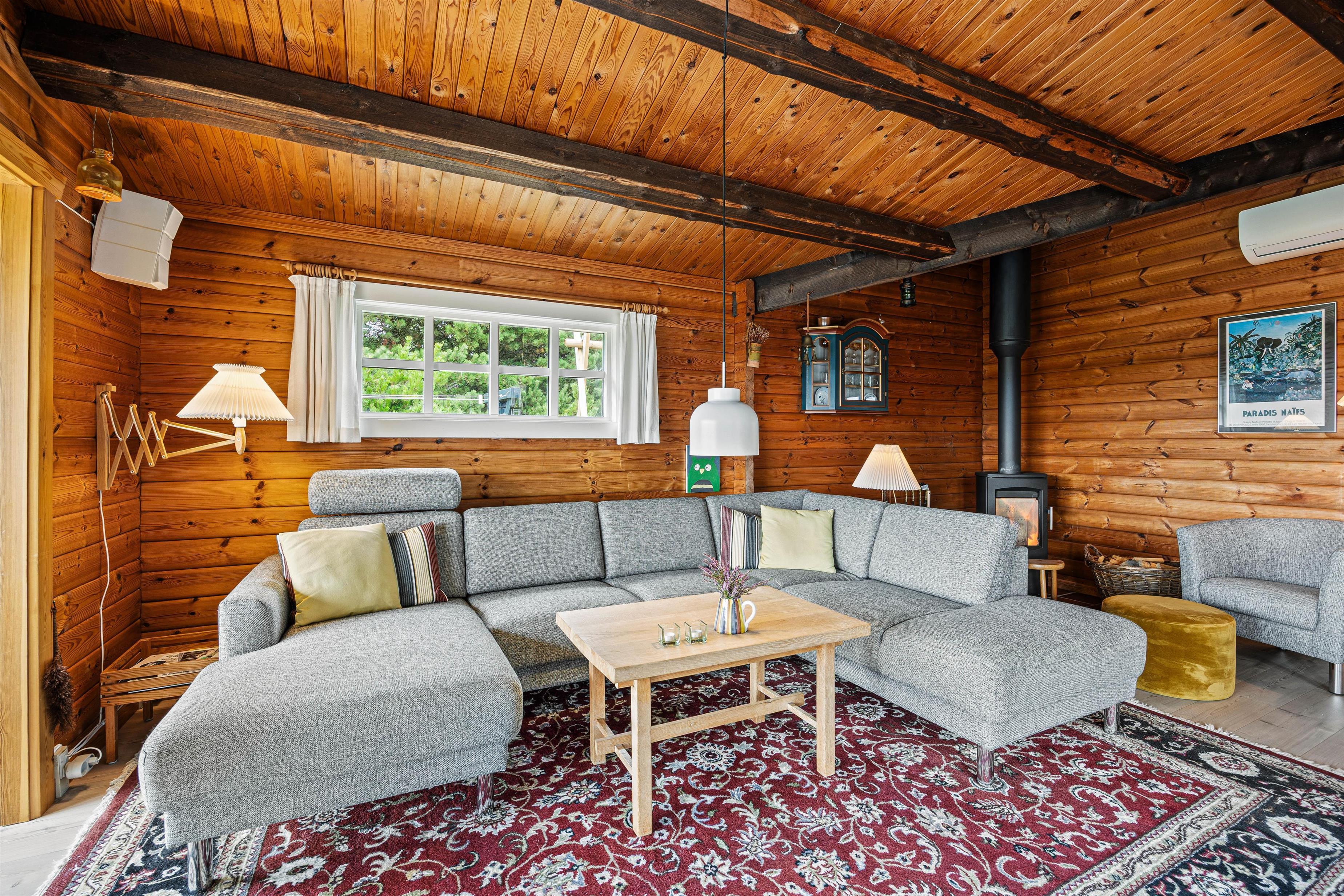 Klassisk, charmerende sommerhus med brændeovn, udestue og varmepumpe
