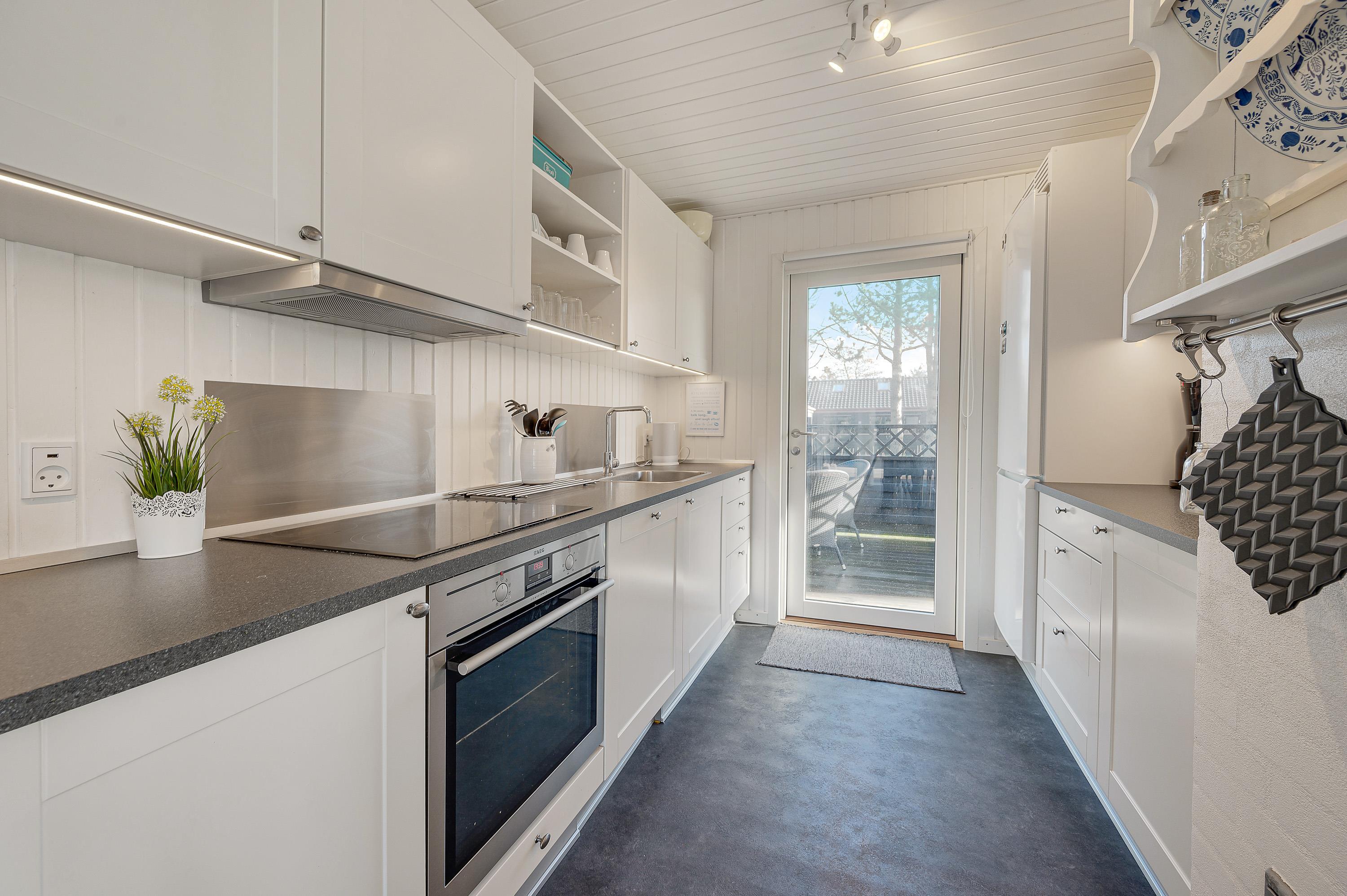 Feriens samlingspunkt bliver utvivlsomt det store køkken-alrum. Her kan I nyde varmen fra brændeovnen over et sjovt brætspil eller en god kop kaffe, hvor der samtidig kan følges med i madlavningen.