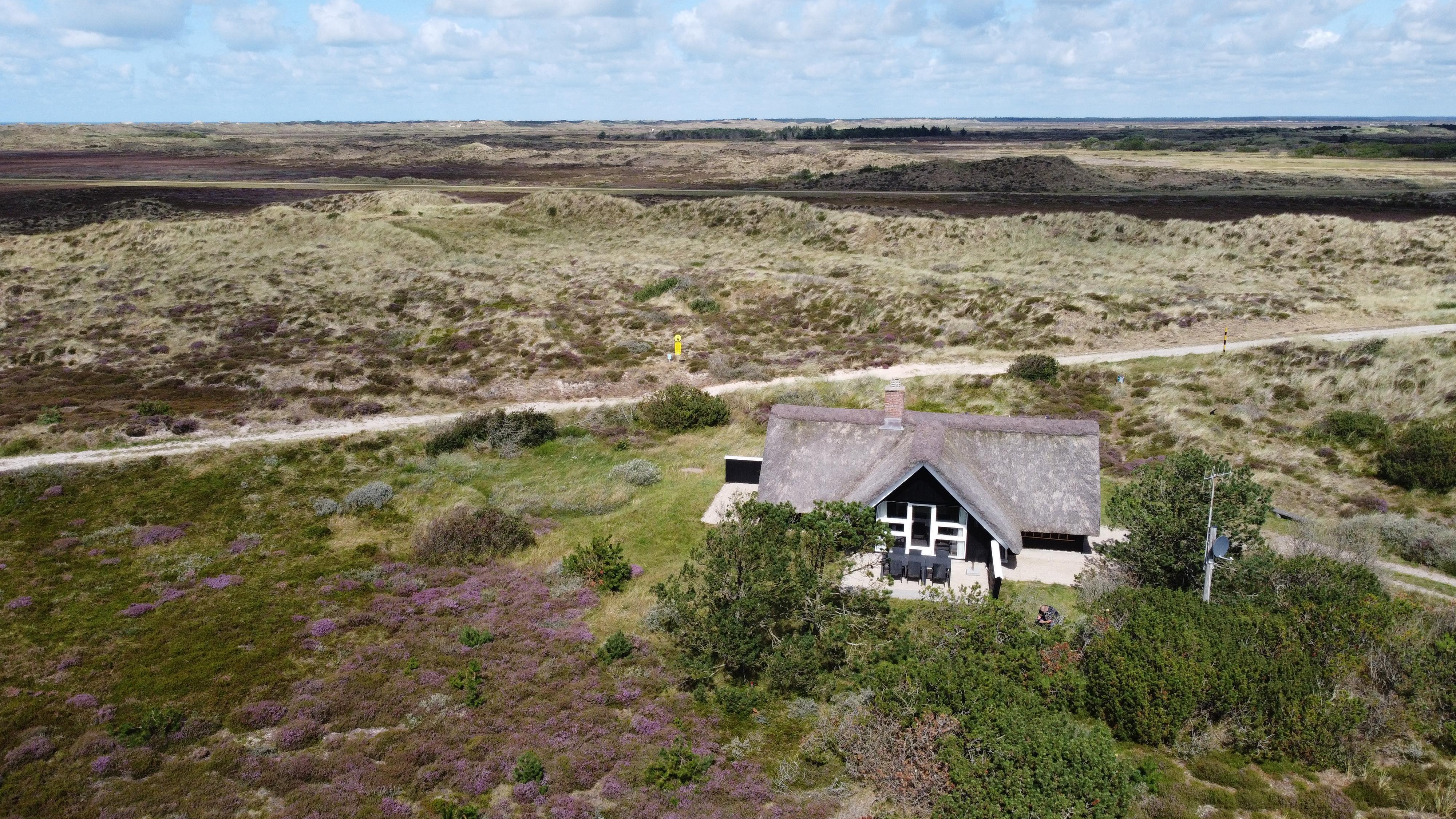 Kan du fornemme duften af blomstrende lyng, blåbærbuske, fyrretræer og frisk havluft? Det er netop denne duft, der møder jer ved sommerhuset her i Blåvand. Sommerhuset ligger lige op ad naturområdet Kallesmærsk Hede og nær klitlandskabet, der strækker sig helt ud til det brusende Vesterhav. Til stranden er der 1,6 kilometer, som til fods ad de små stier giver en god gåtur i det naturskønne område. Jeres hunde vil helt sikkert elske at komme med på turen.