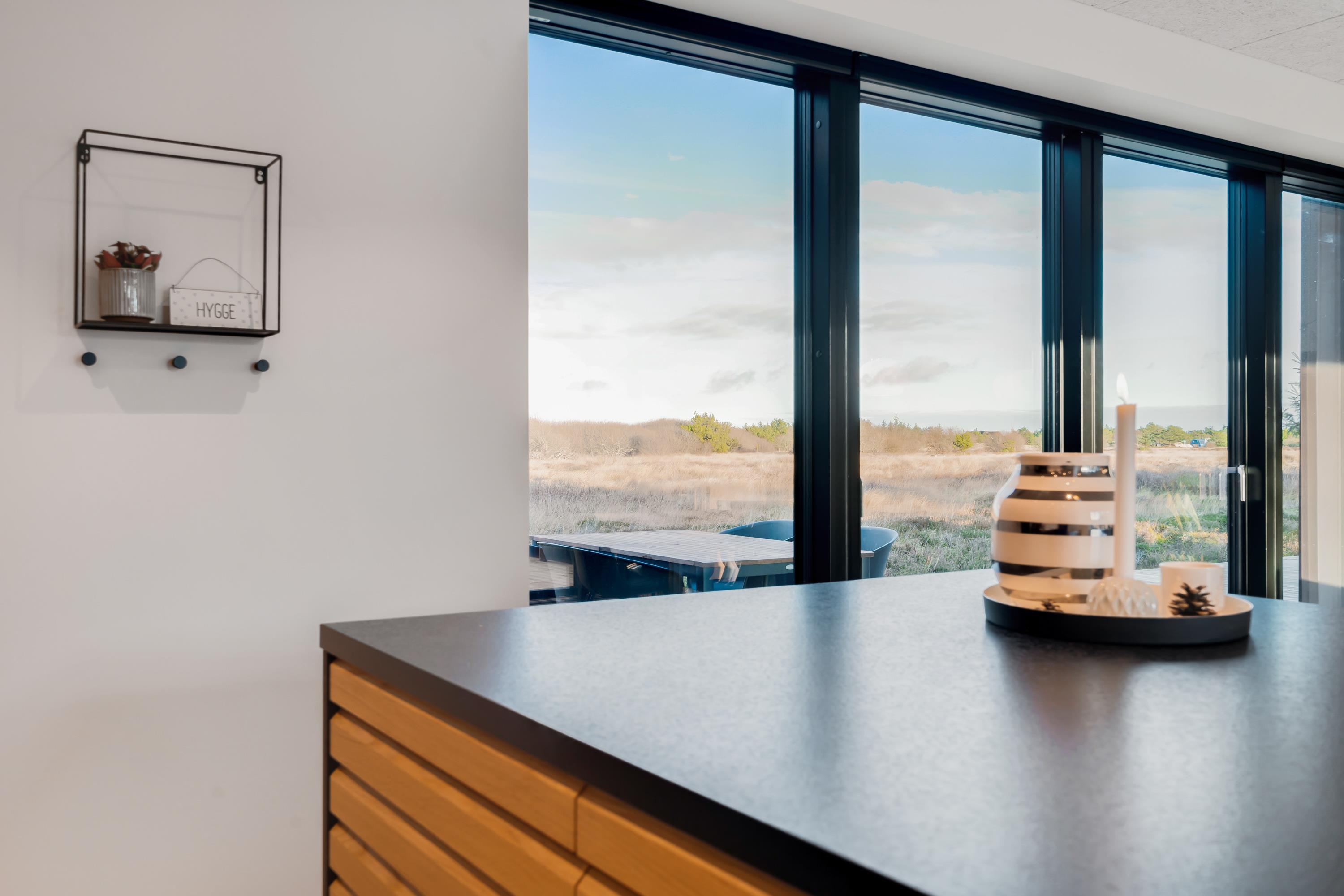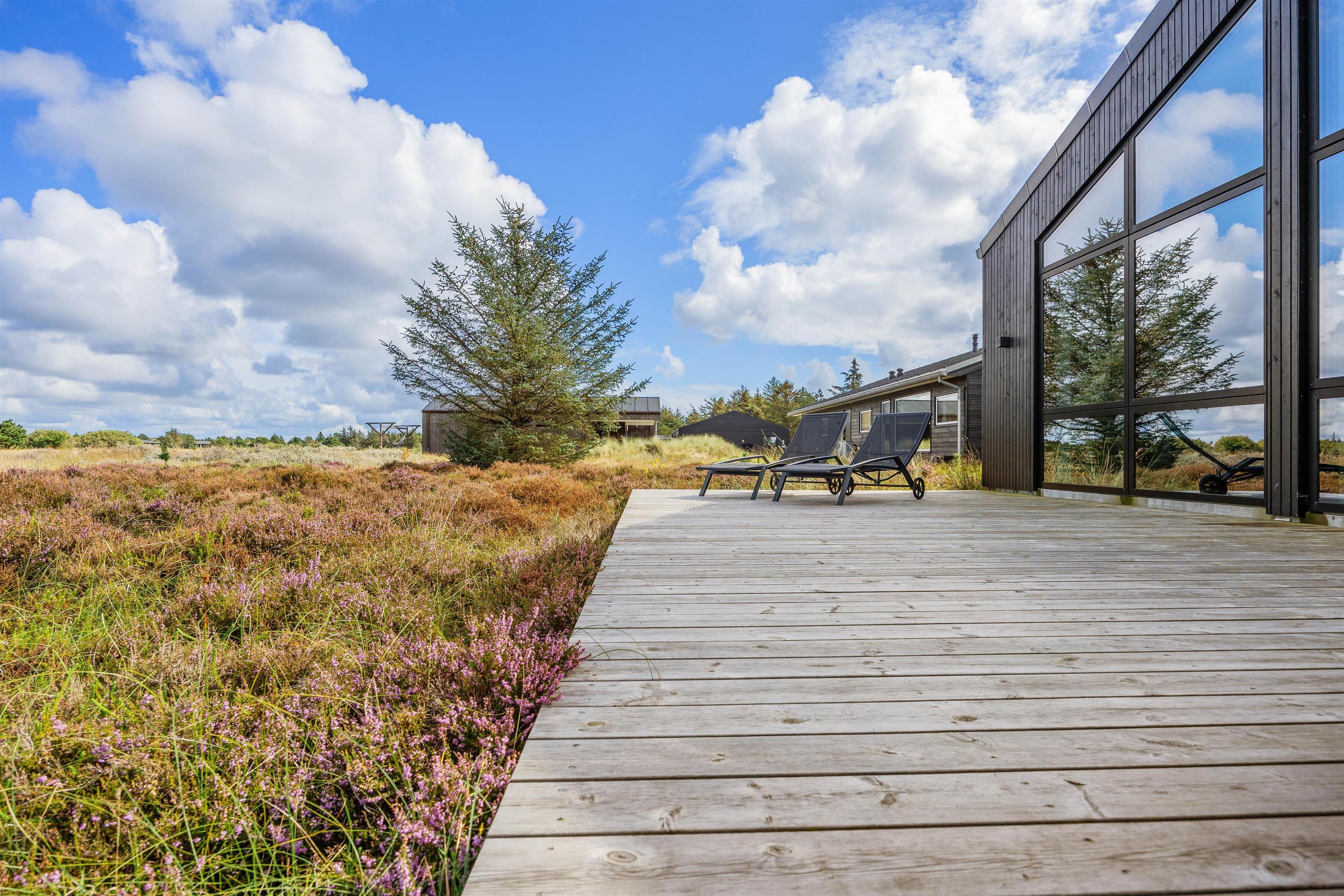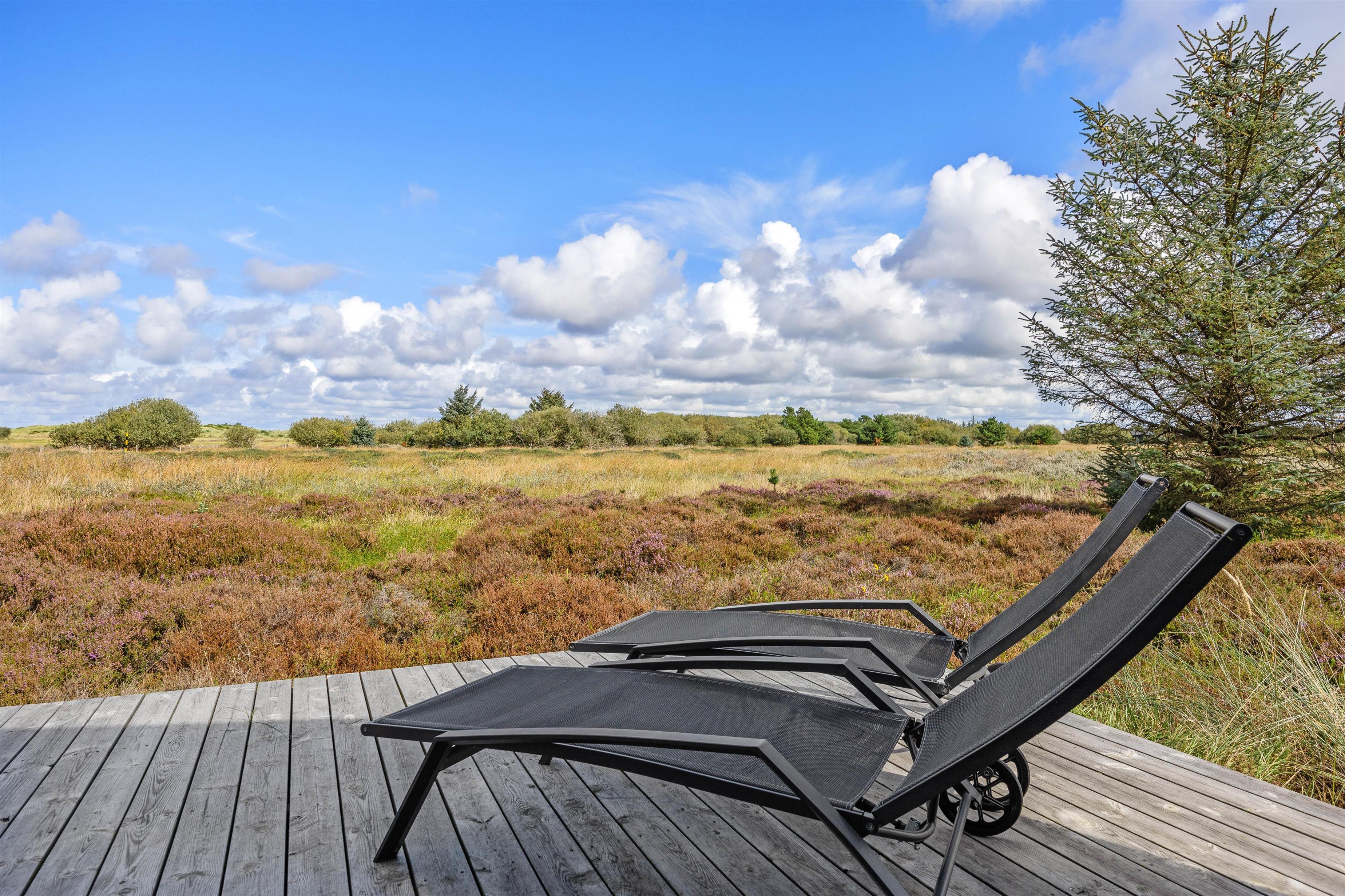 Udsigten kunne ikke blive meget bedre – fra de gode havemøbler og liggestole har I frit udsyn til det smukke, uberørte hedelandskab, som i sensommeren bliver særlig smuk, når lyngen blomstrer og den søde blomsterduft blander sig med den salte havluft.