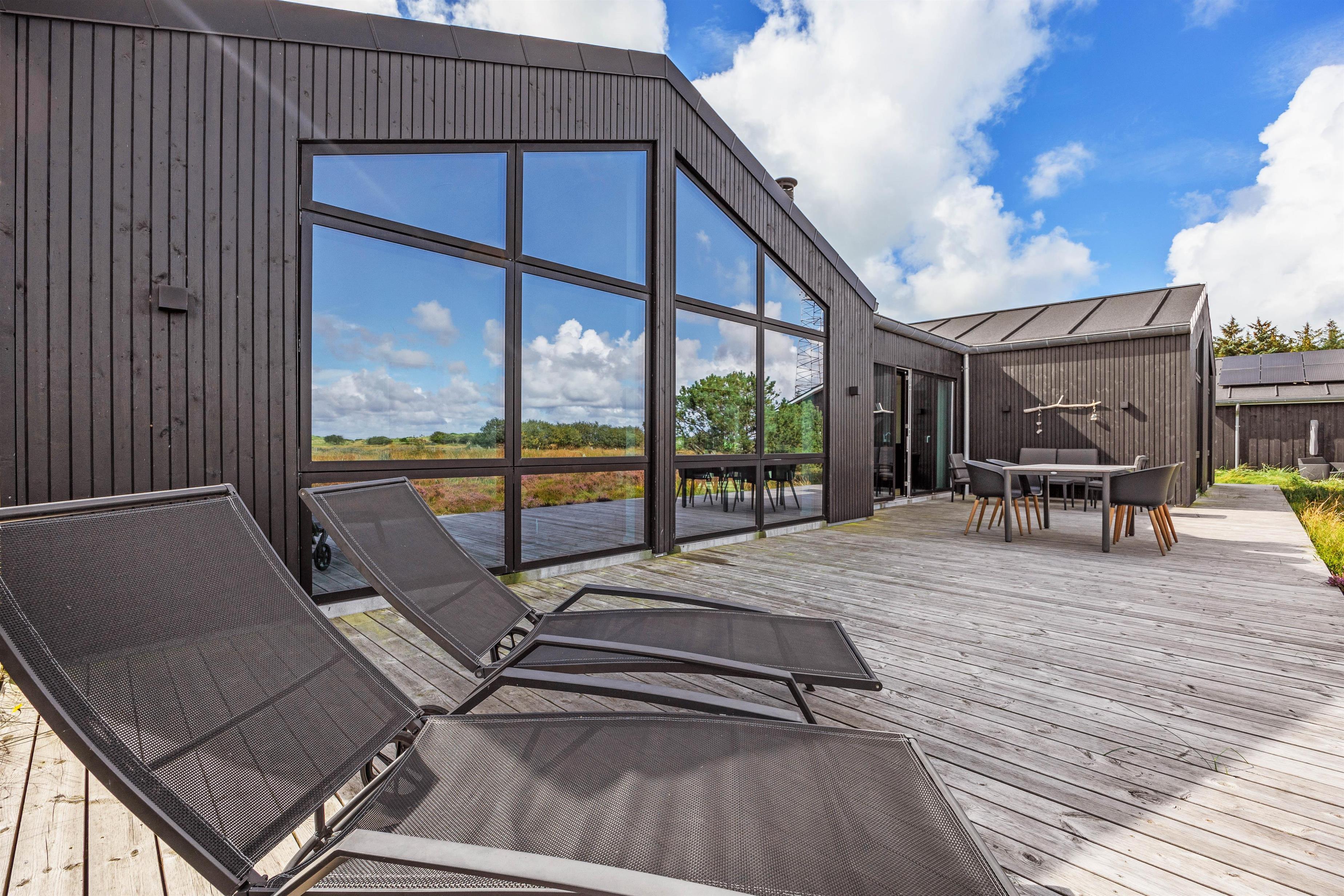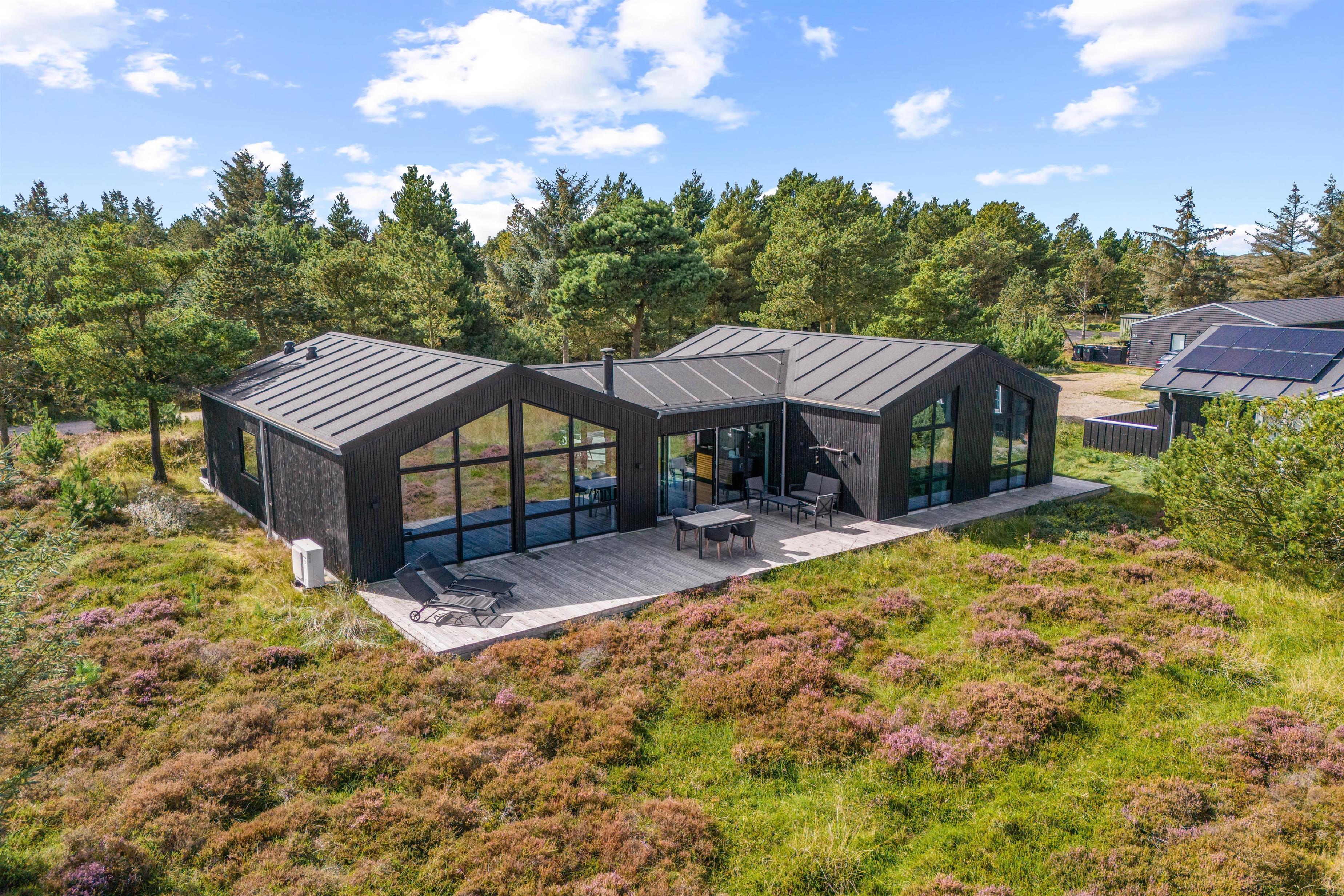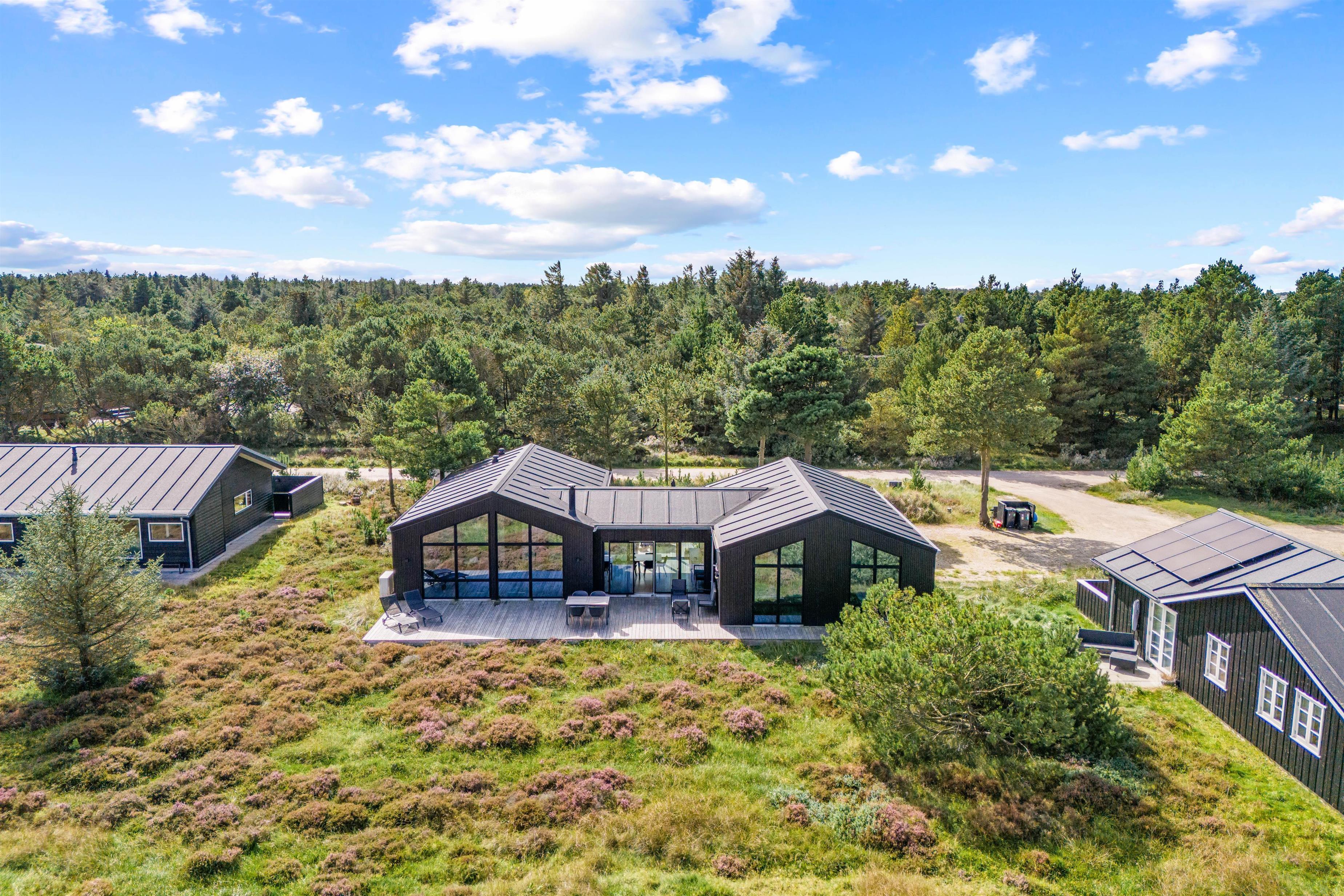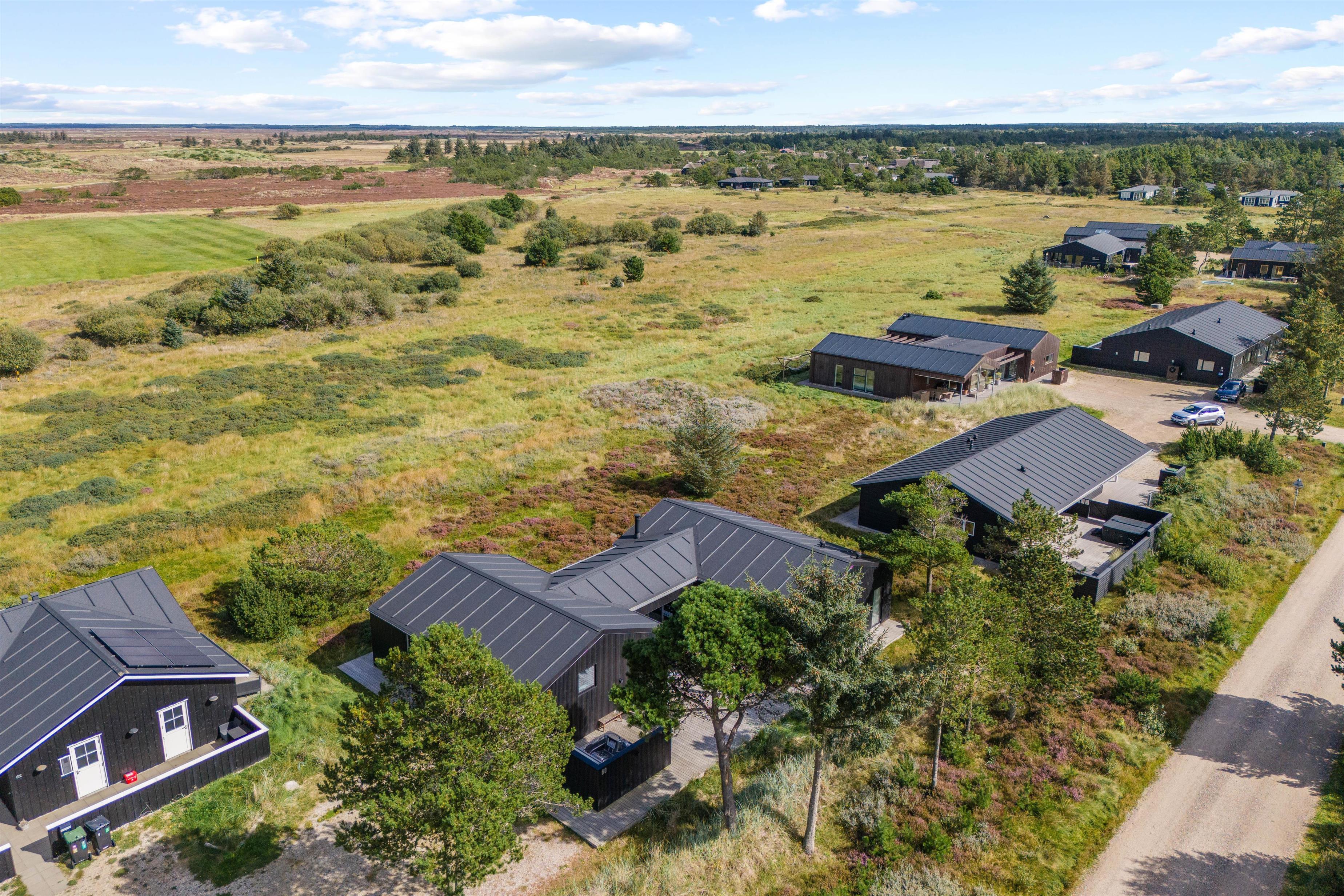 I den nordlige del af Blåvand ligger dette fantastiske sommerhus til 8 personer. Det femstjernede aktivitetshus er opført i 2020 og emmer af luksus – med et væld af fede faciliteter såsom udendørs spabad, infrarød sauna og aktivitetsrum med billard og bordtennis. Fra feriematriklen er der en exceptionel udsigt til det uberørte hedelandskab.