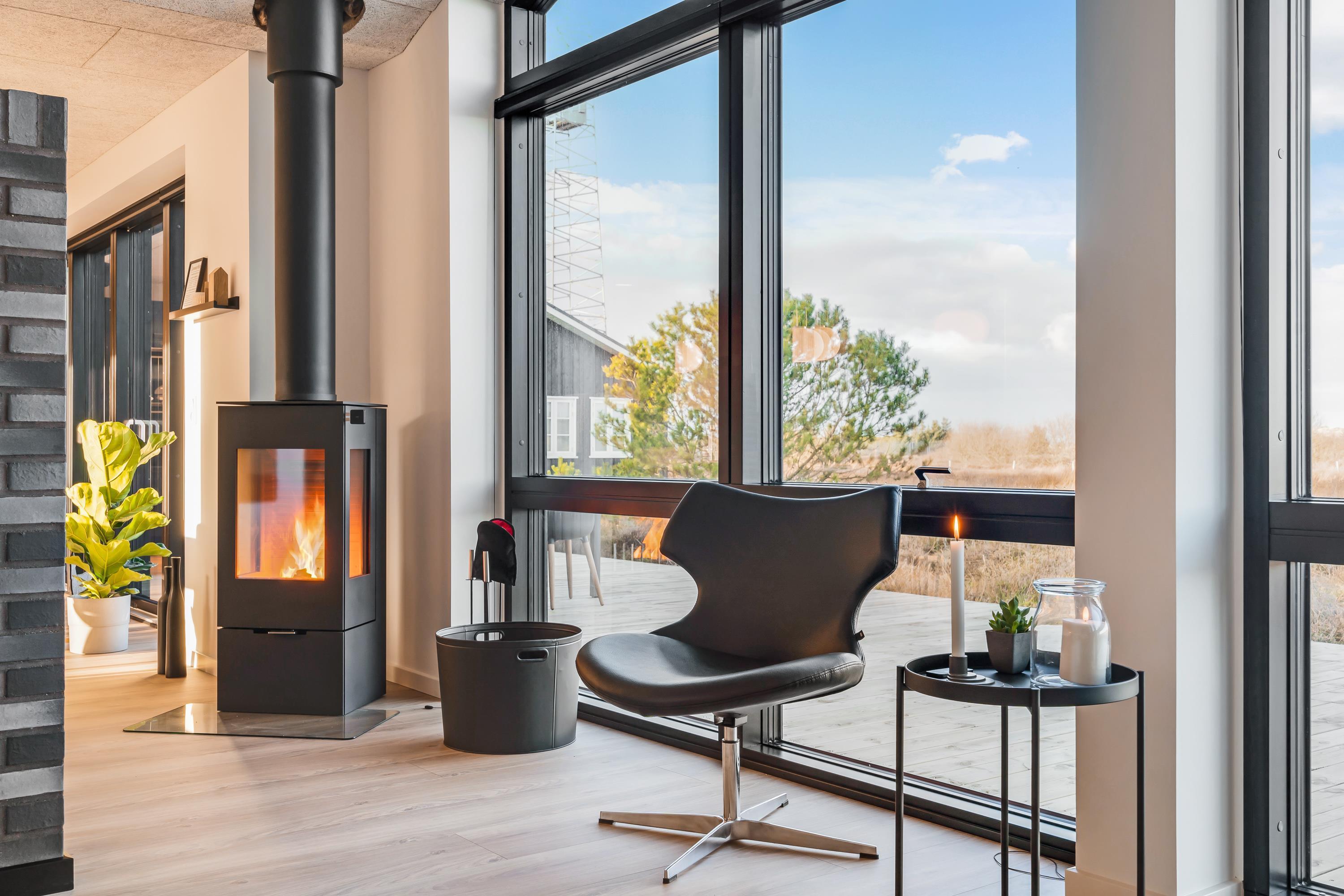 Her er der fokus på moderne komfort. Både opholdsrummet, soveværelserne og feriehusets 2 badeværelser er udstyret med gulvvarme, og den klassiske feriestemning er bevaret med den hyggelige alkove og den knitrende brændeovn i stueafdelingen. Store vinduer i samtlige af feriehusets rum giver jer et fantastisk udsyn til det omkringliggende hedelandskab.