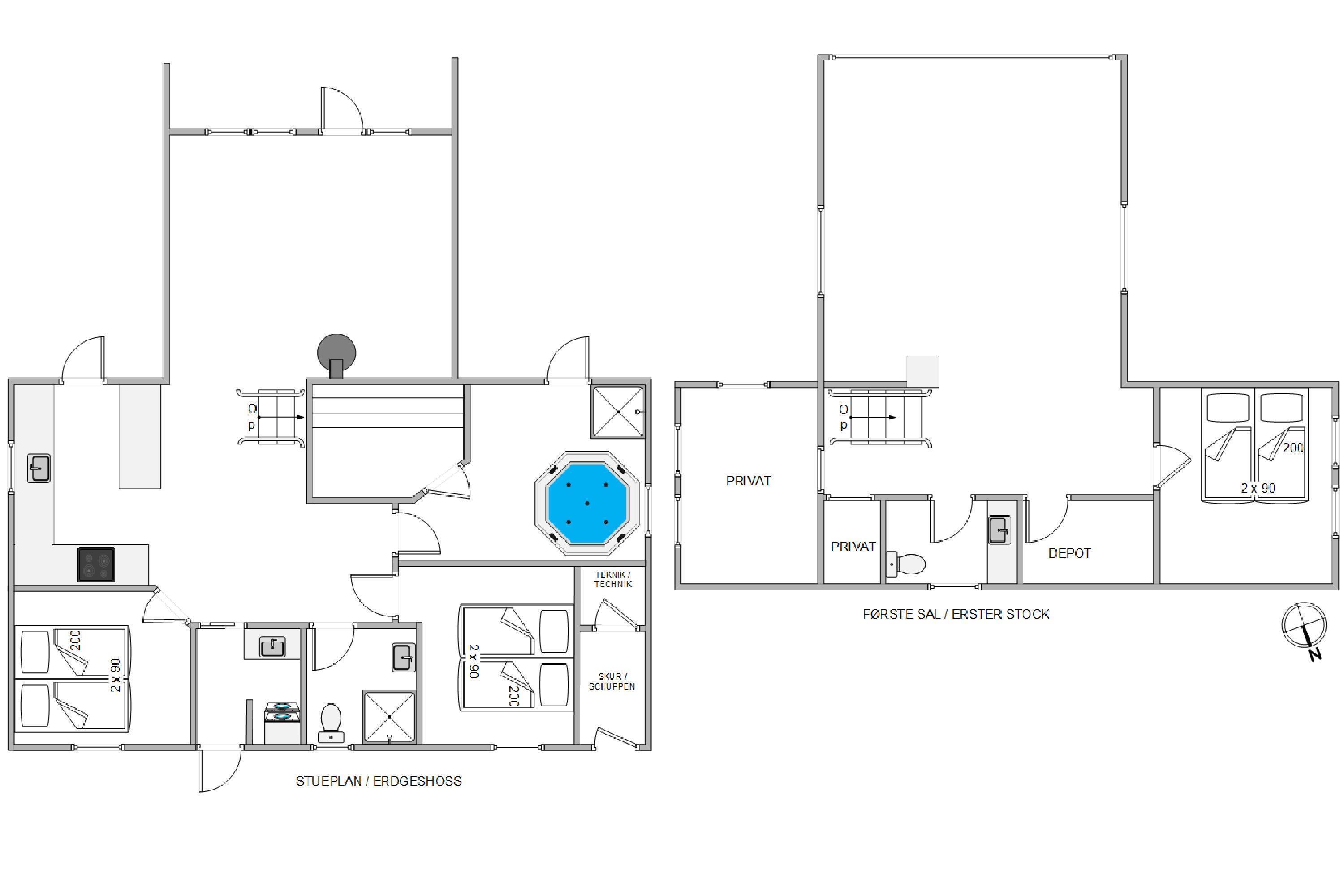 Dette rummelige sommerhus er den perfekte ramme om en hyggelig familieferie eller en forkælelsestur med vennerne. Feriehuset er veludstyret med bl.a. 6 personers spabad og stor sauna i separat wellnessrum med egen bruser.