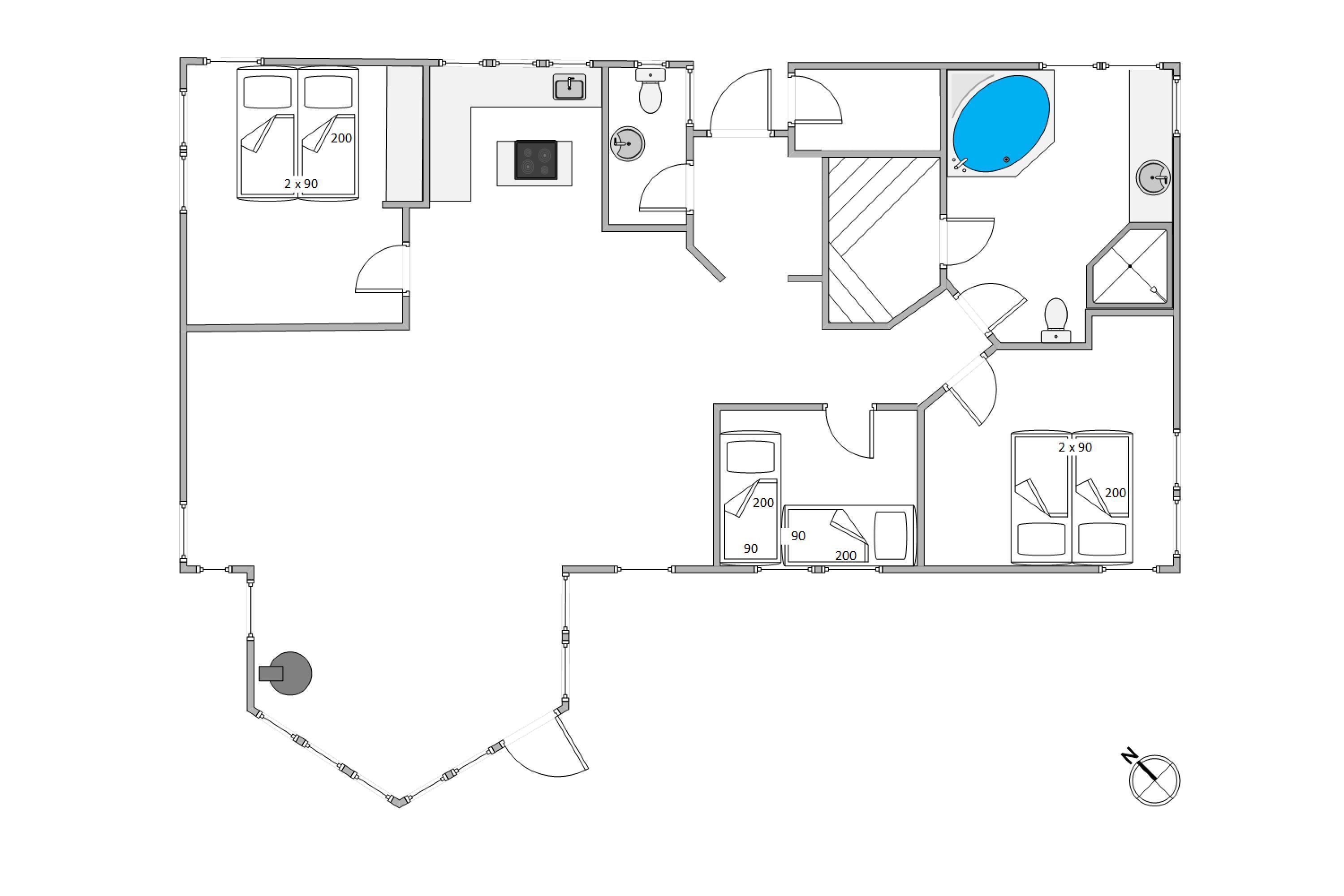 Feriehuset er stilrent og lyst indrettet med moderne og komfortable møbler og en god rumopdeling. Huset er rigtig rummeligt og har god plads til de maks 6 personer. Sovepladserne er fordelt på 3 gode soveværelser.
