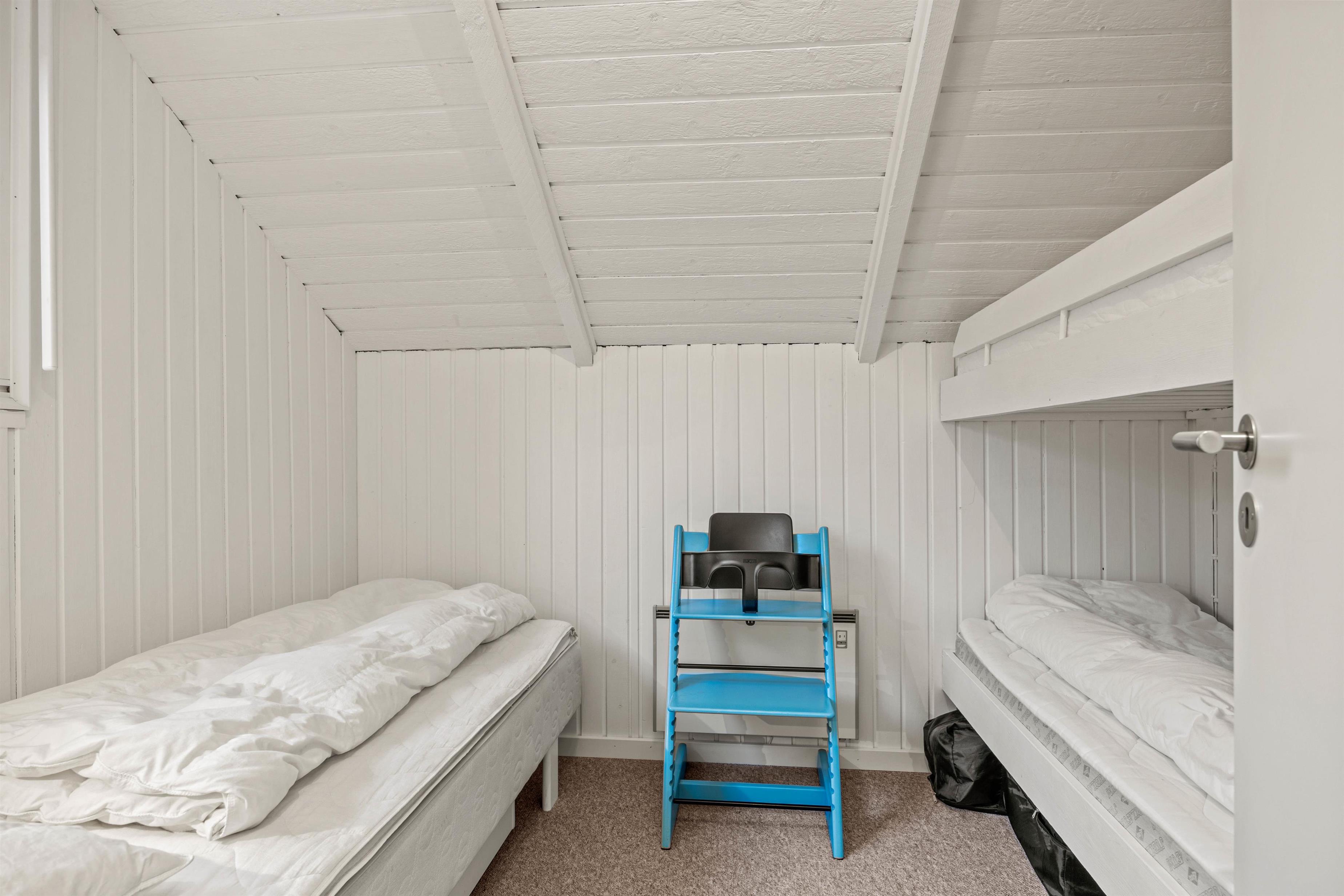 Det skønne træhus er familievenligt indrettet, og indeholder både vaskemaskine og tørretumbler, samt barnestol og barneseng til de mindste. Her er plads til 5 personer fordelt på 2 soverum med dobbeltseng, enkeltseng og køjesenge.