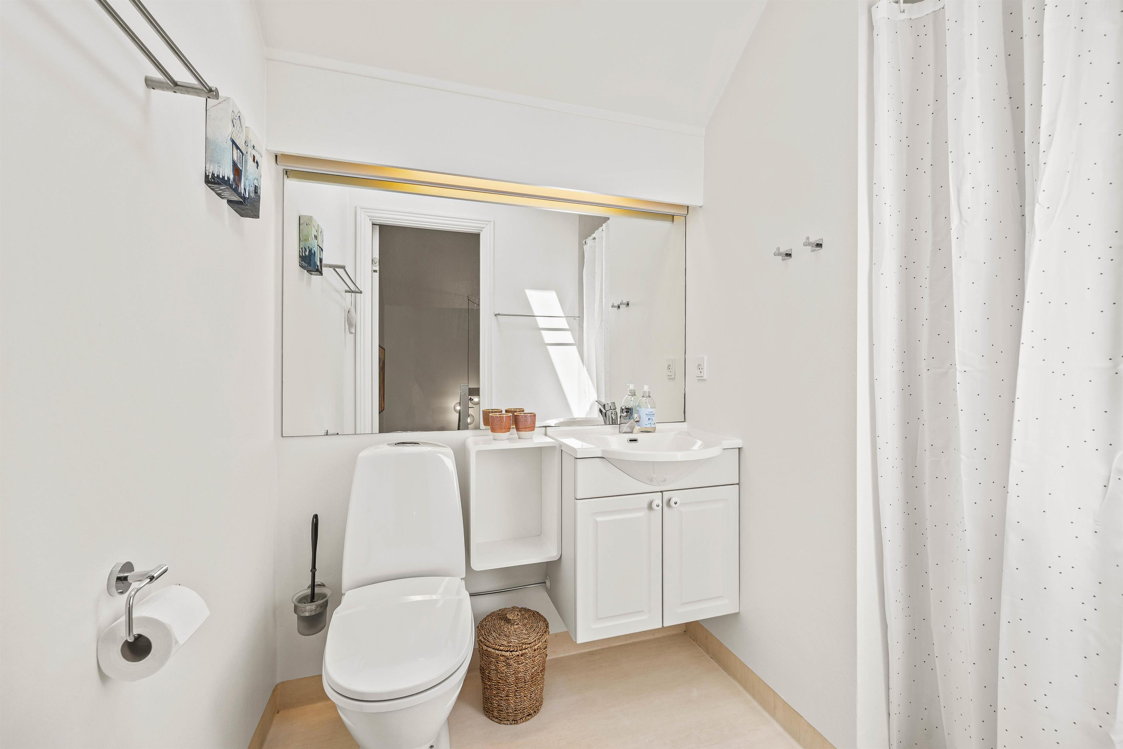 Det største af sommerhusets 2 badeværelser ligger i stueplan og er indrettet med både sauna og spabad, så I kan nyde lidt ekstra wellness og selvforkælelse på ferien - især skønt efter en lang gåtur langs vandkanten i den friske havluft eller på en sen ferieaften.