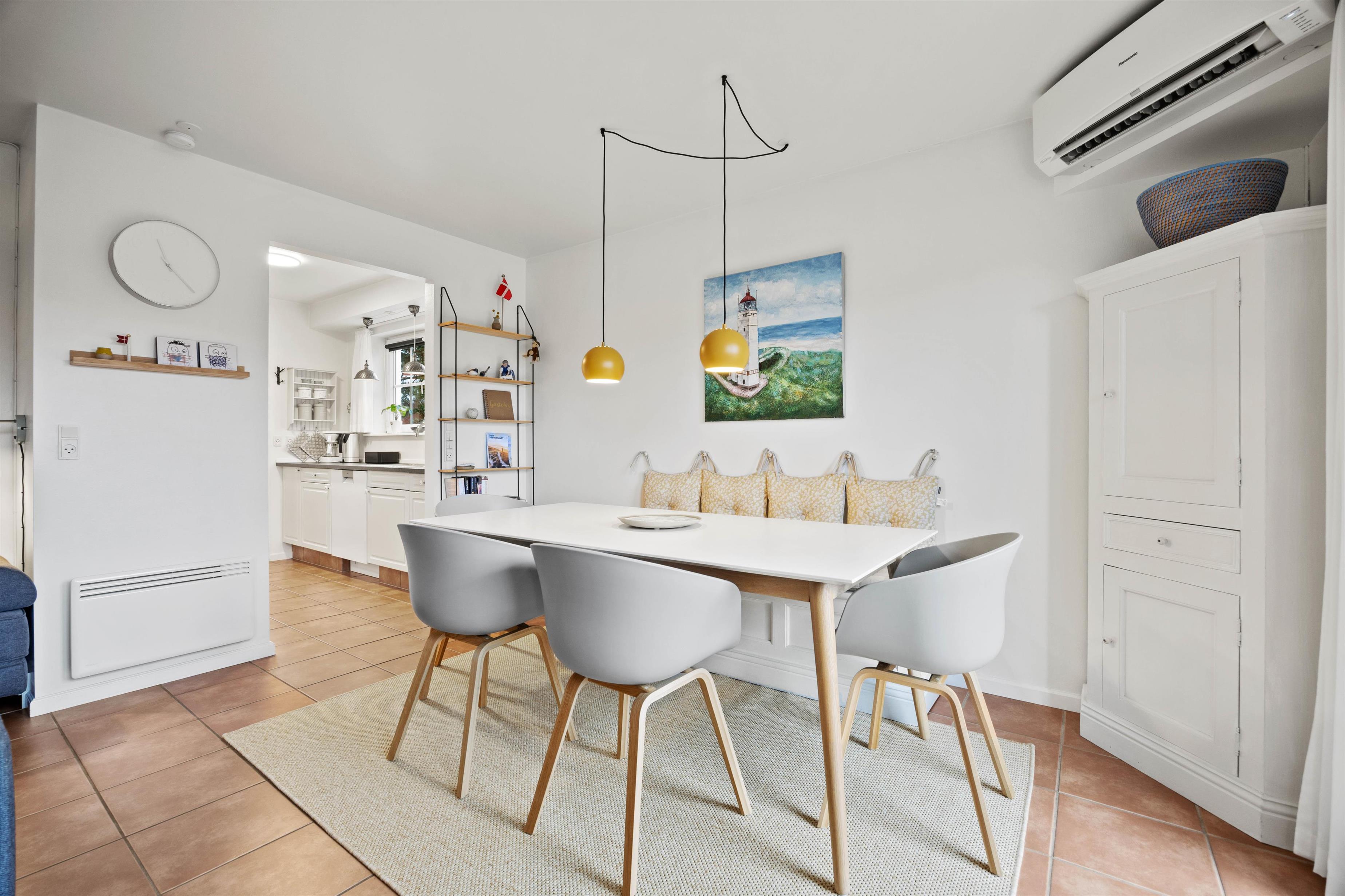Rækkehuset, som er opført i 2005, byder på i alt 92 kvadratmeter fordelt på 2 velindrettede etager og er et oplagt feriemål til den lille familie. Den gode indretning i de lyse rum byder jer velkommen allerede fra første dag, og de moderne og praktiske faciliteter som fx varmepumpen giver jer et godt udgangspunkt for ferien.