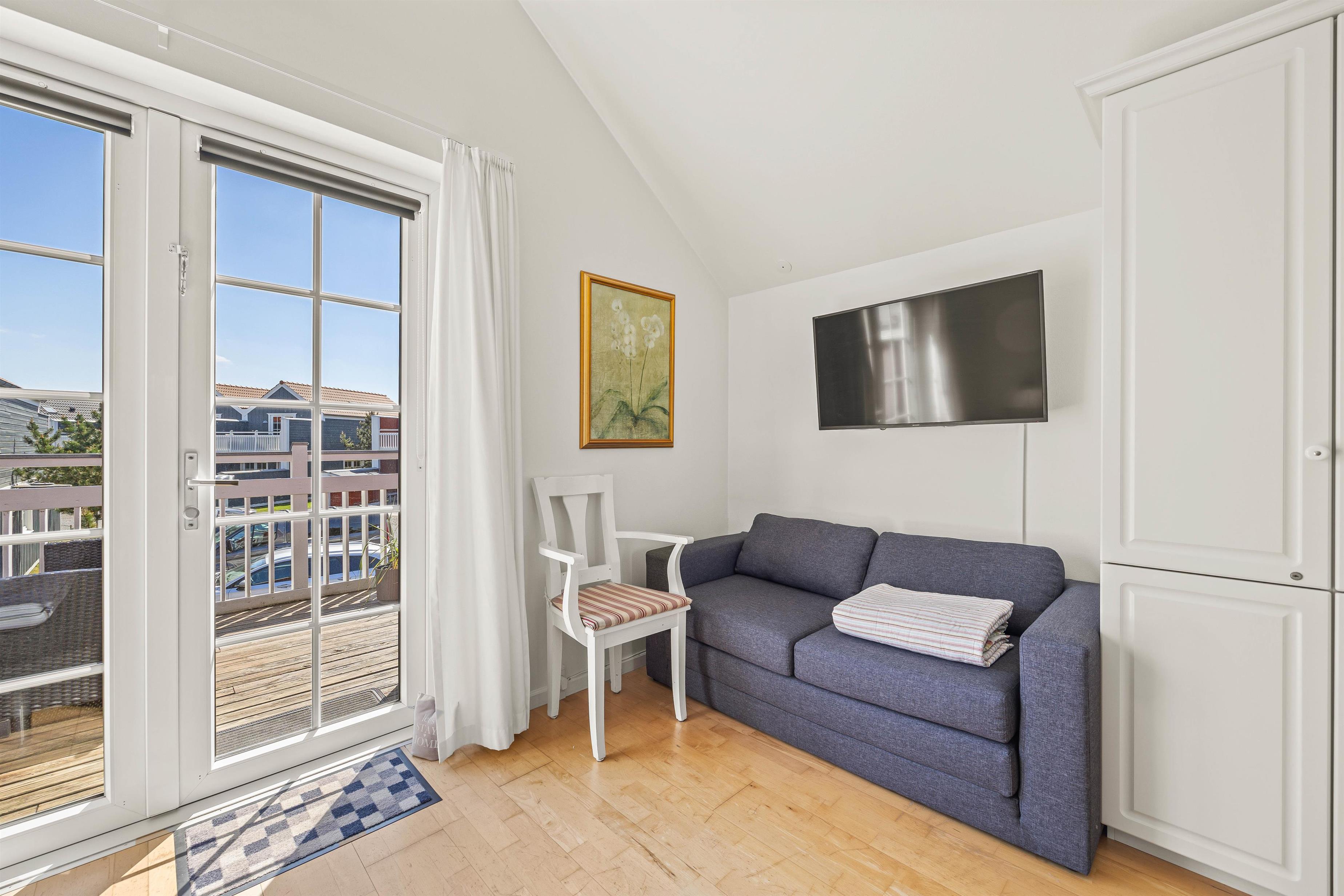 Yderligere 2 gæster kan eventuelt overnatte på sovesofaerne, som er placeret på hvert værelse.