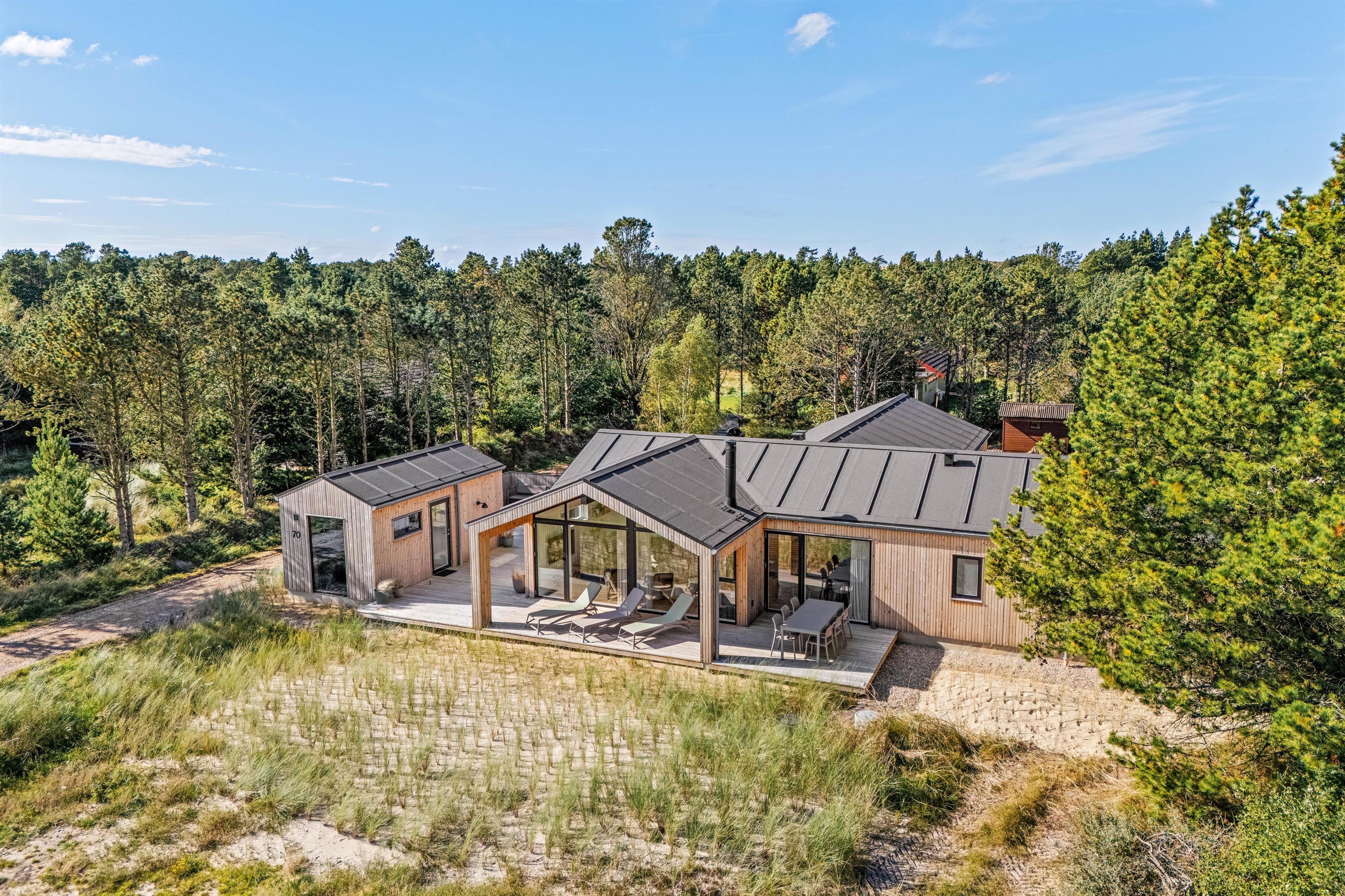 Hold ferie i unikke, naturskønne omgivelser i et helt nyopført feriehus på Gl. Mælkevej 70 Feriehuset på 160 kvadratmeter har plads til 8 personer og er opført i eksklusive materialer. Aktivitetsrummet bliver garanteret populært og der står også både en 5-personers udespa og en udesauna til jeres rådighed, ligesom der er opsat ladestander på grunden (husk ladekabel/adapter).
