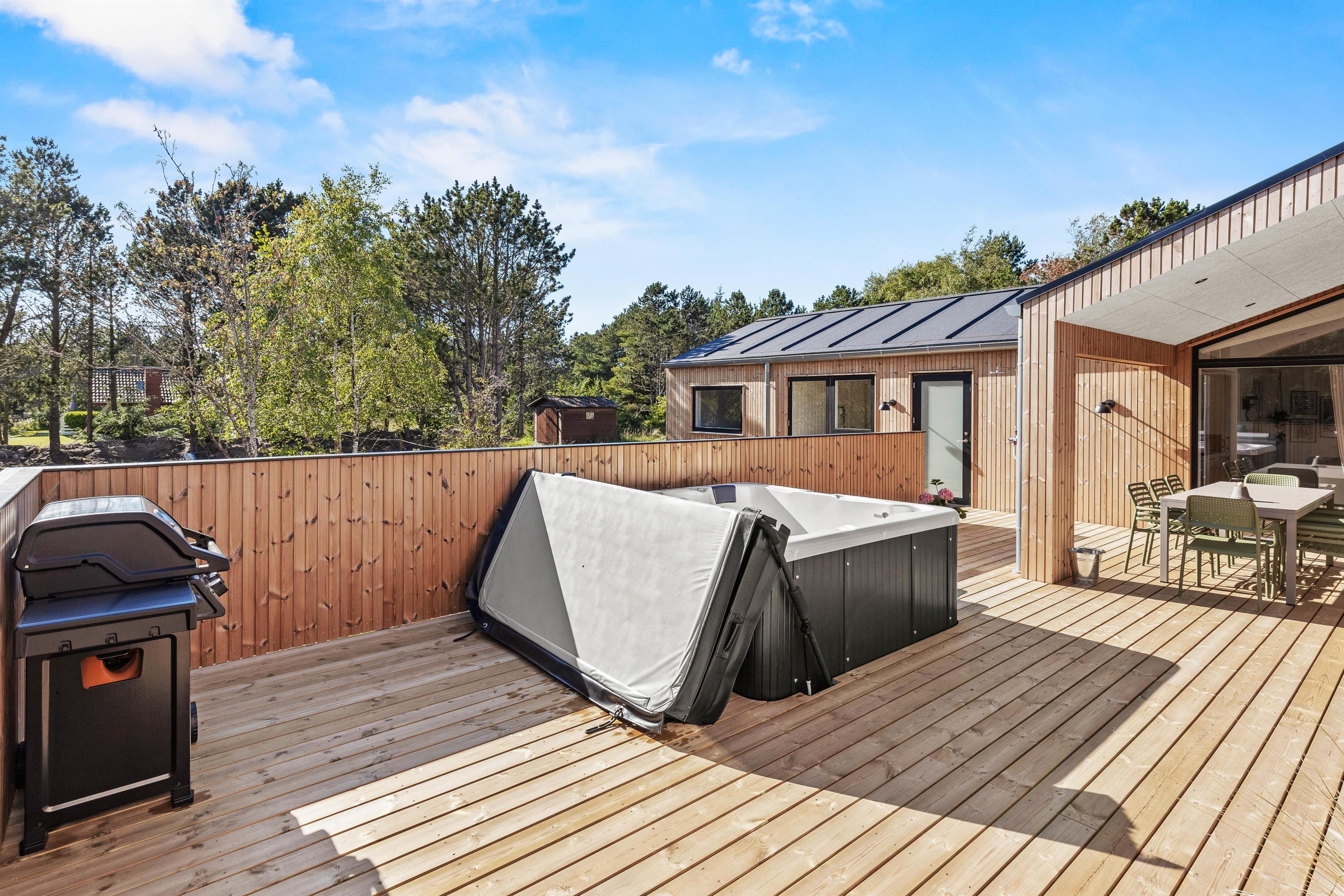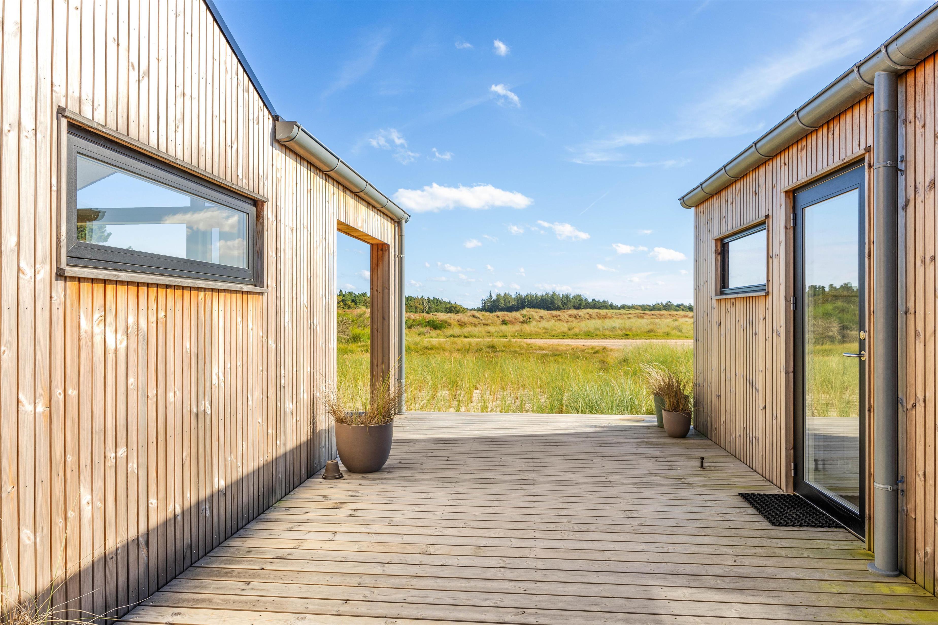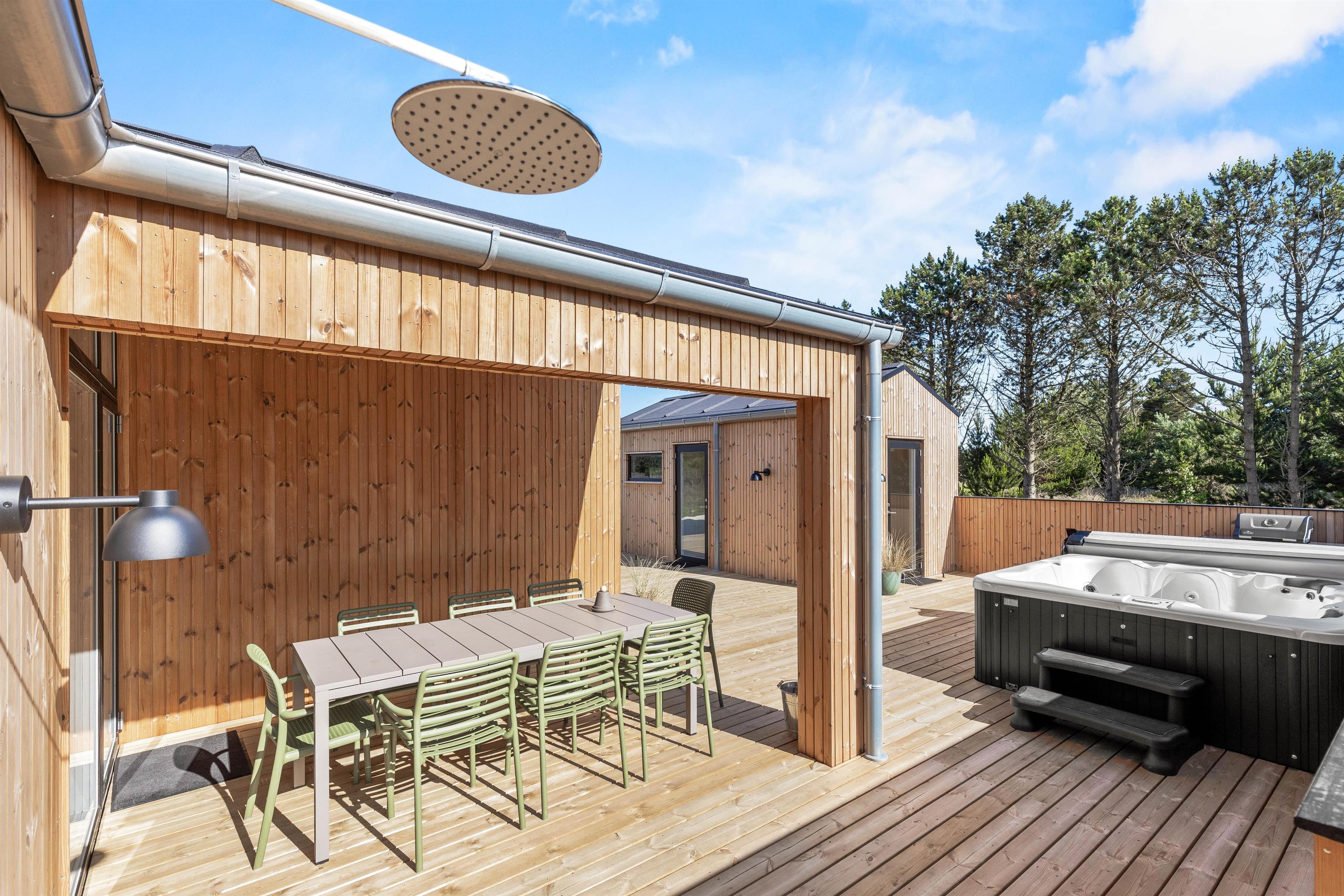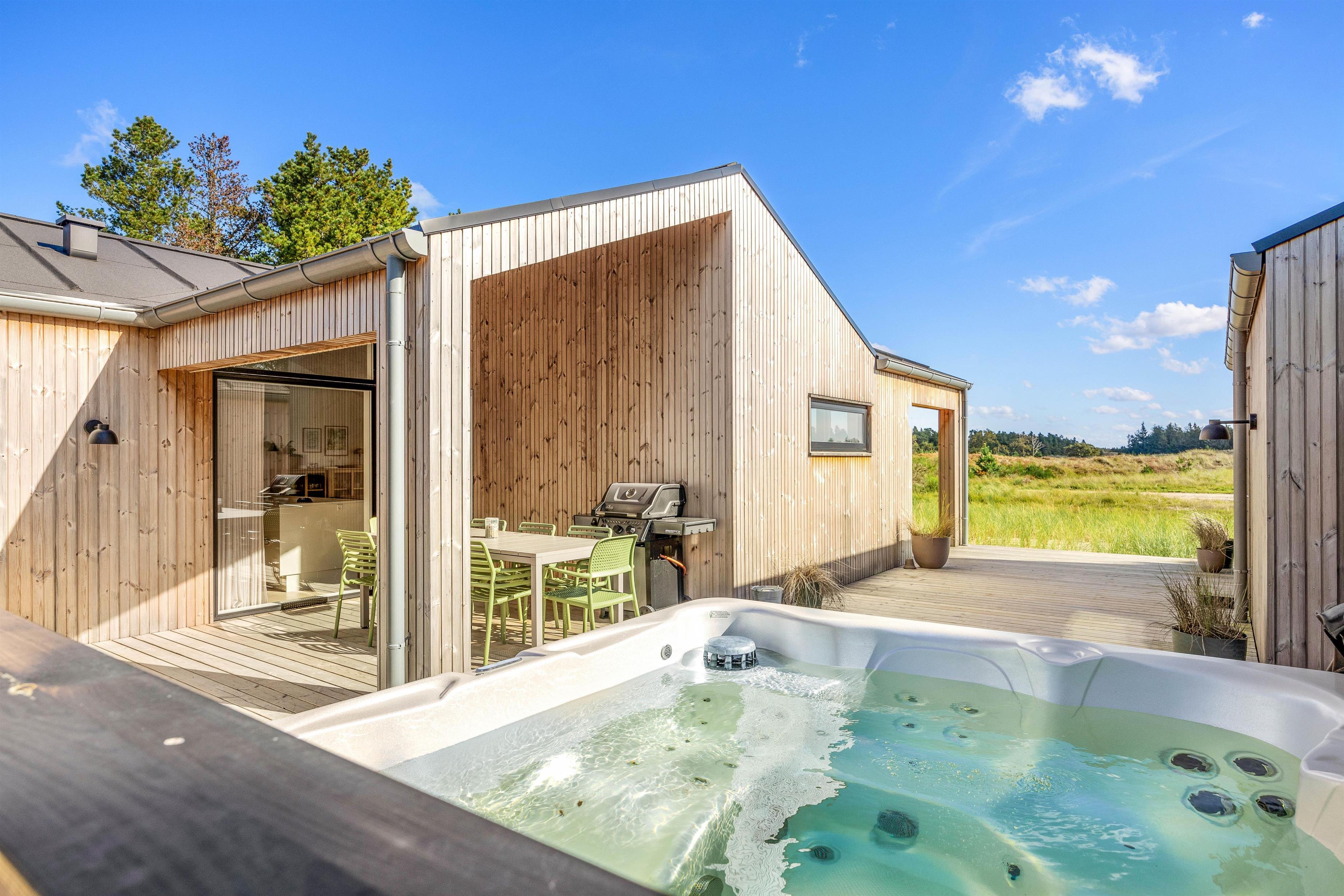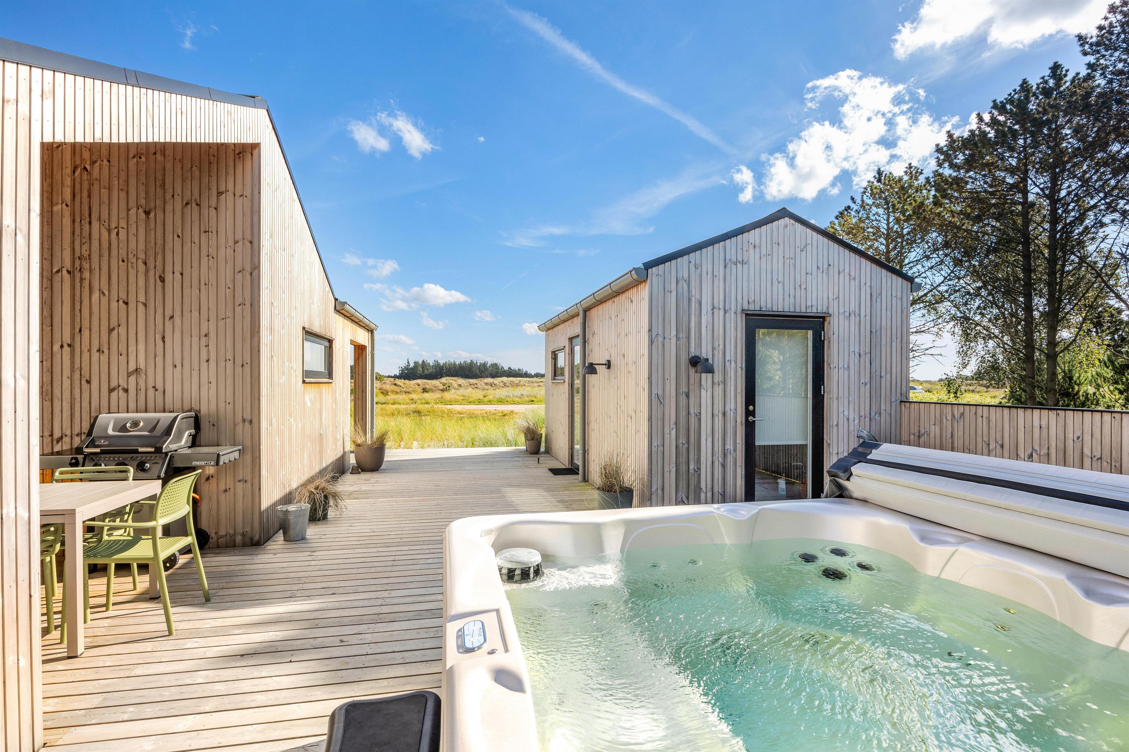 Herligheden er beliggende på en rolig, ugeneret naturgrund, hvor I kan lade jer omslutte af naturen fra husets omgivende terrassemiljøer eller nyde en gåtur i klitlandskaberne og ved Vesterhavet. Lad jer forkæle med wellness i den udendørs spa, hvorfra I har frit udsyn til Blåvands smukke hede- og klitlandskaber. Nyd også en tur i saunaen med panoramaudsigt til naturen og måske en afkøling i udebruseren, som kan bruges i sommermånederne.