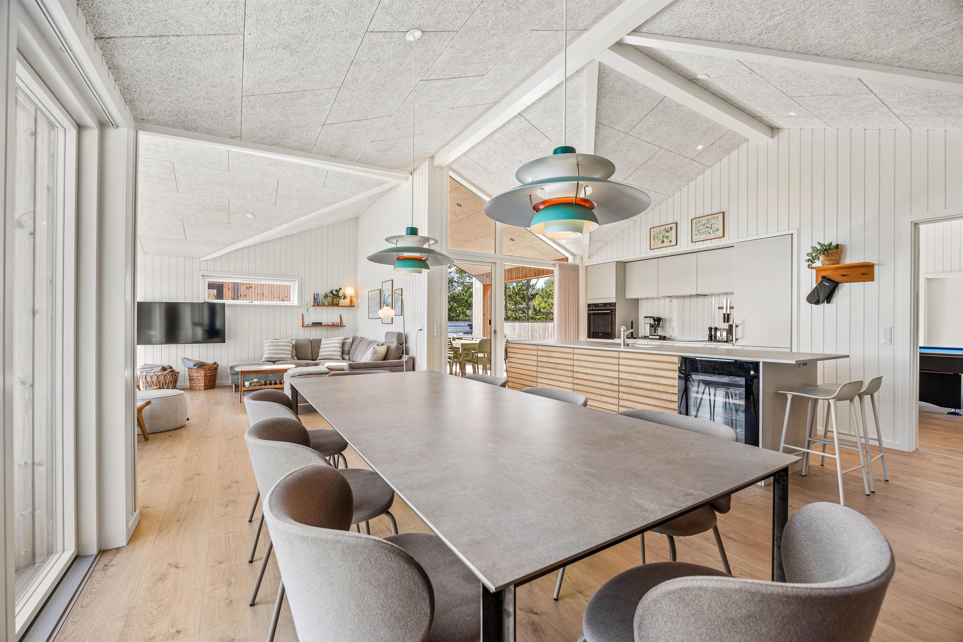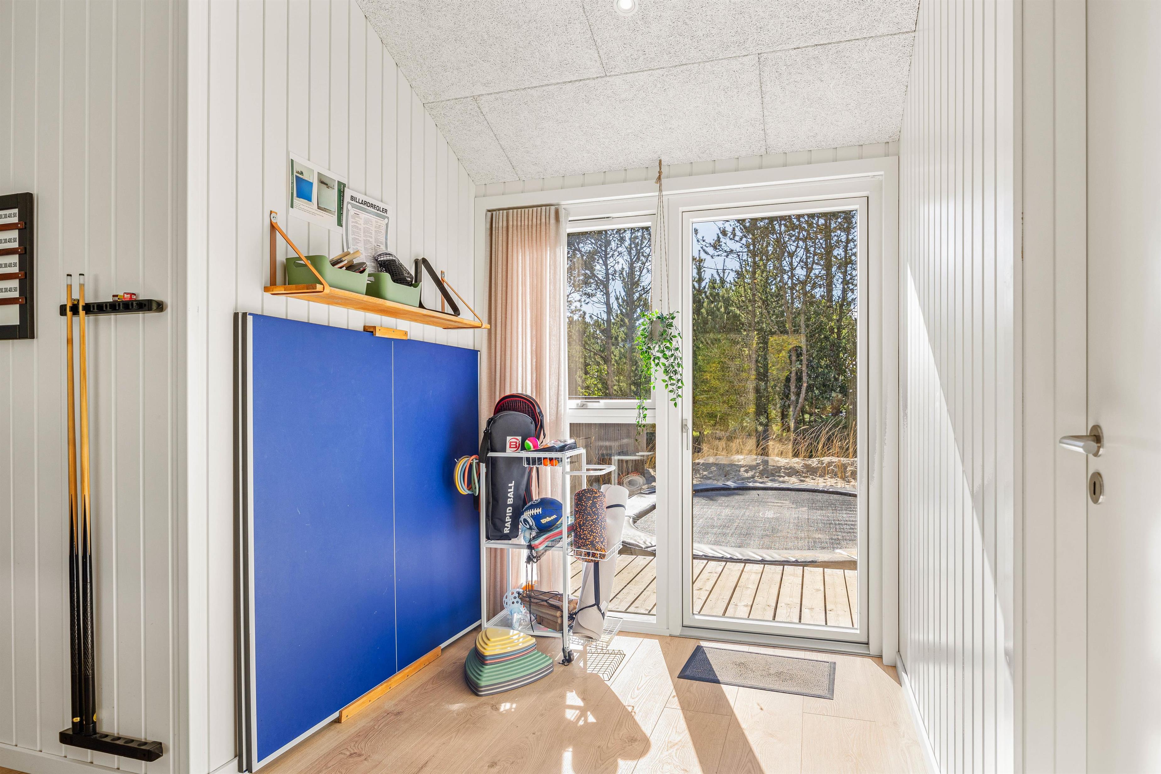 Der er lagt vægt på, at feriehuset både kan danne rammerne for afslapning og hyggelige aktiviteter for en hver smag. Der er med andre ord faciliteter indendørs og udendørs for hele familien eller for flere vennepar. Der er således både et rummeligt aktivitetsrum med bordtennis og pool, en dejlig opholdsstue med mulighed for afslapning i sofaen eller i wellness-området i tilknytning til de fantastiske terrassearealer og i haven er der opsat en trampolin, som børnene kan få mange timers sjov på.