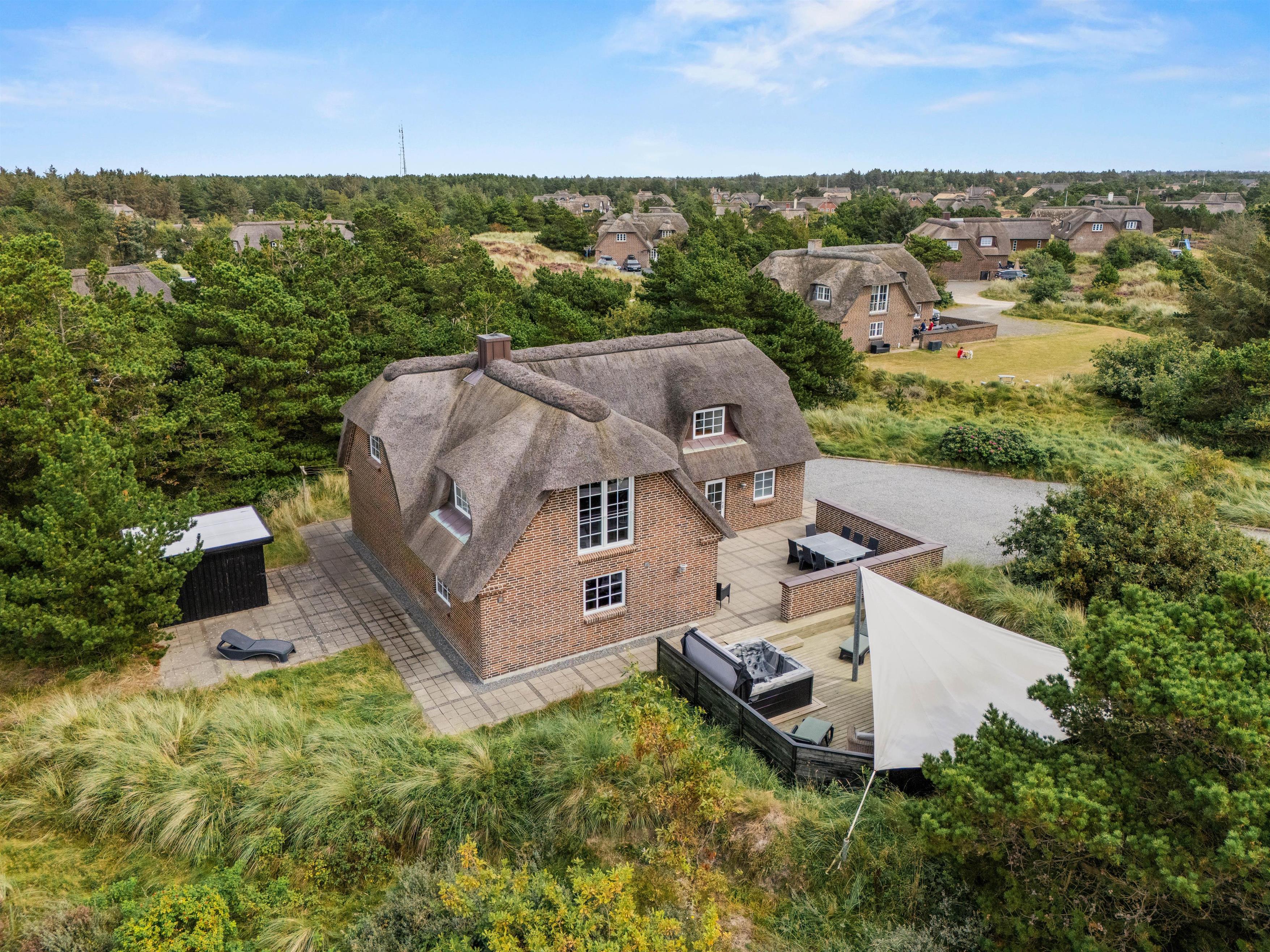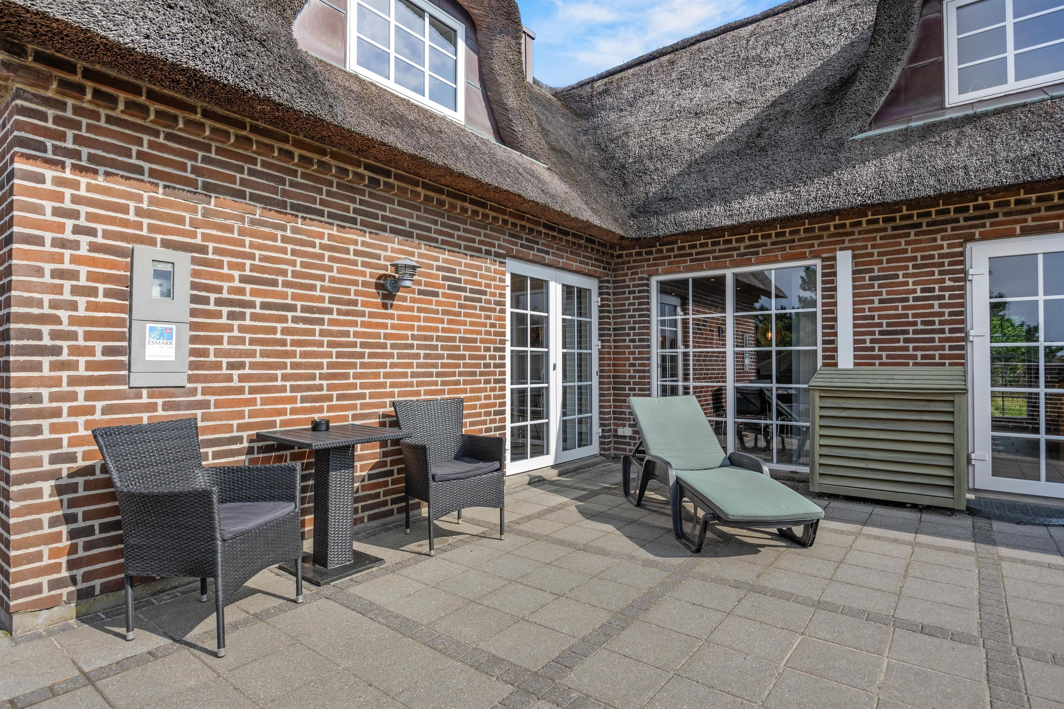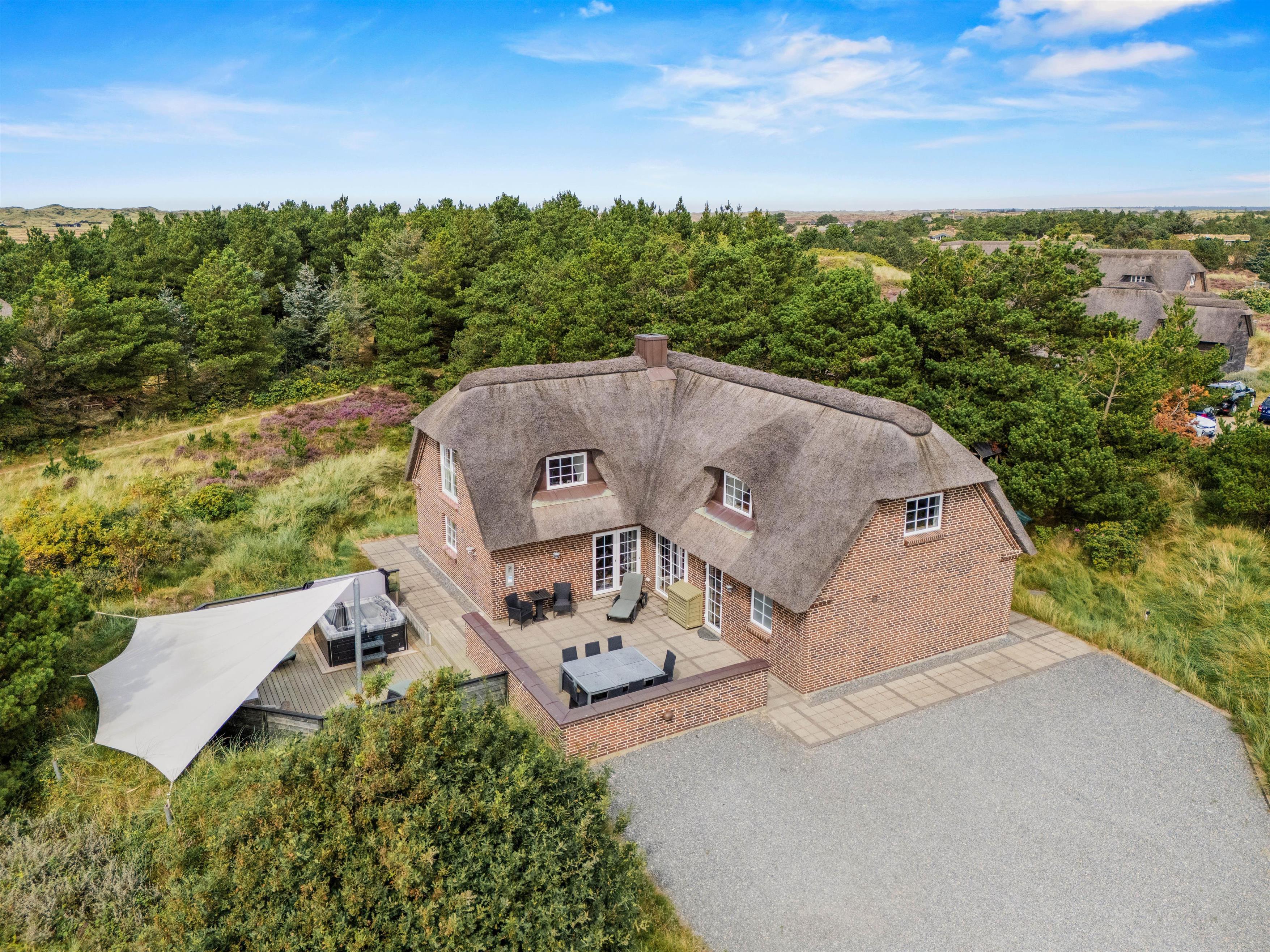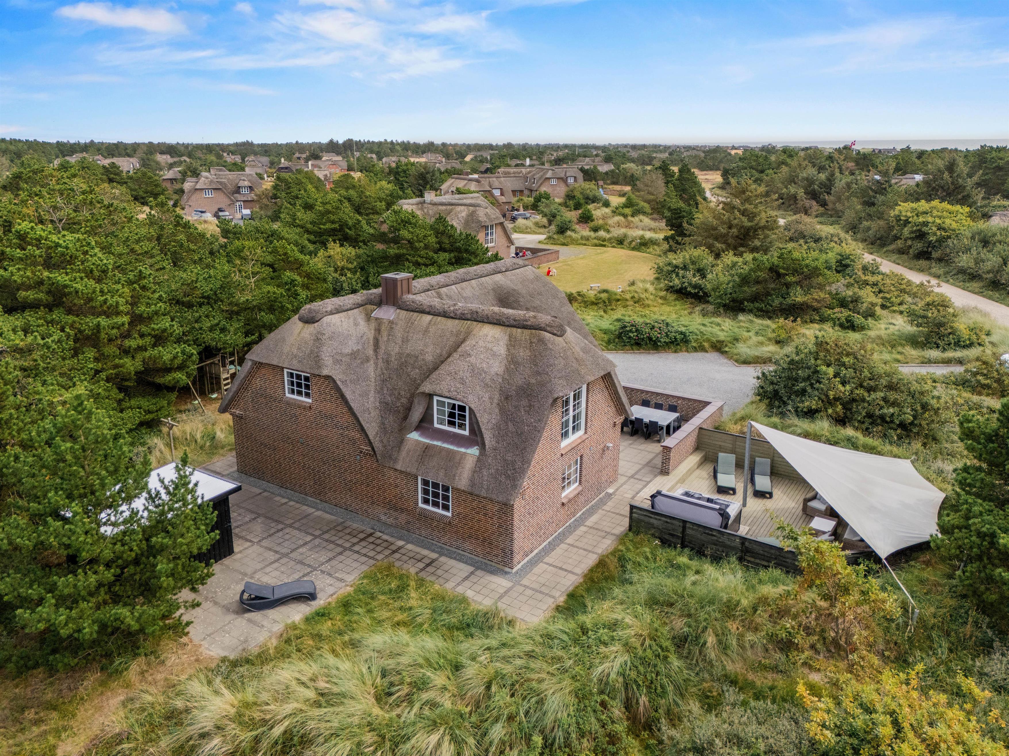 Det hyggelige murstenshus med stråtag er blevet renoveret i 2018, og det kan tydeligt ses på husets indretning, som er stilfuld og kvalitetsbevidst med flot møblement. De i alt 226 kvadratmeter fordeler sig på to etager, hvor I med op til 10 personer finder god plads - et oplagt valg til den næste familieferie.